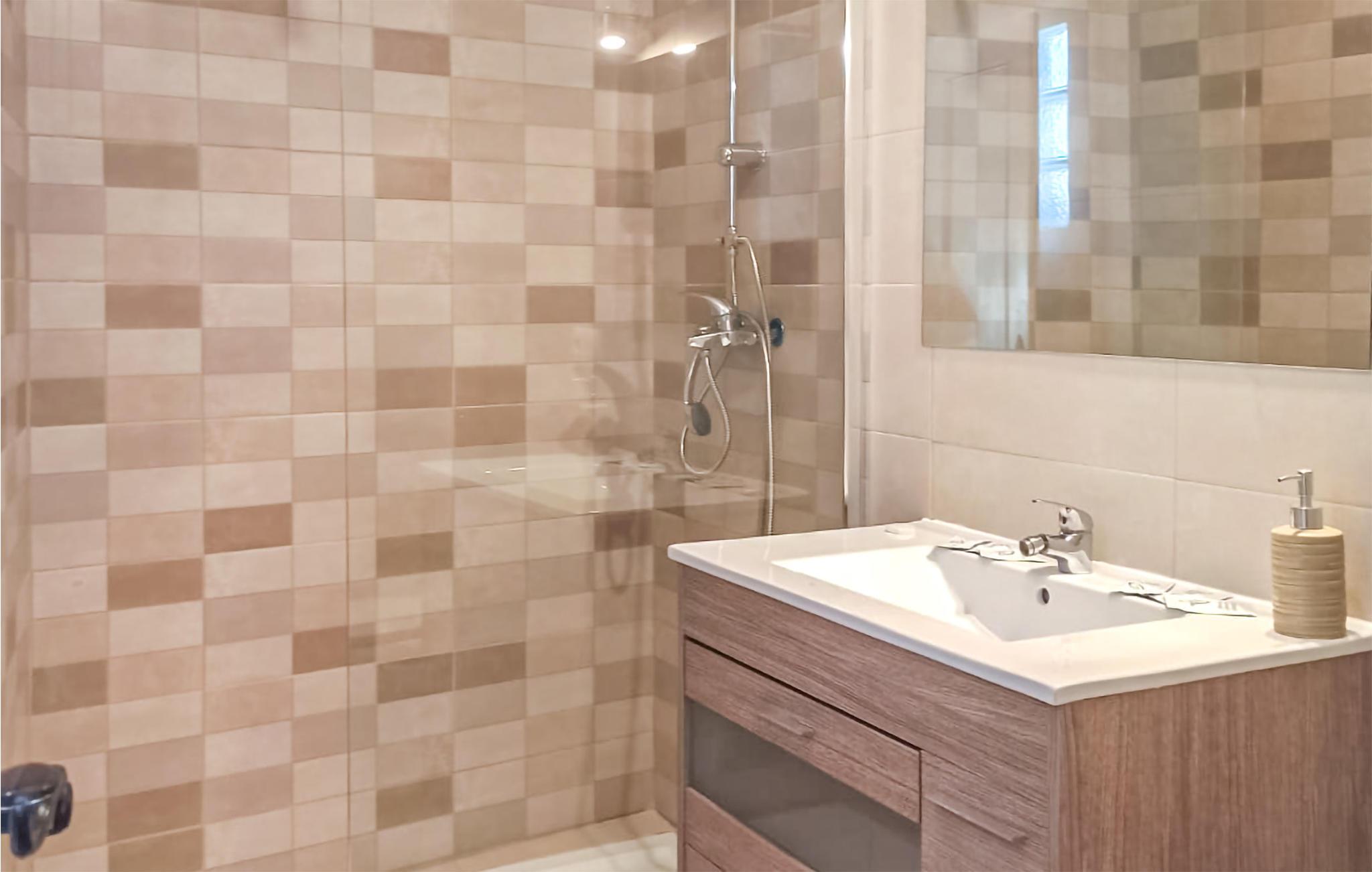 Das Badezimmer hat einen Zugang von außen