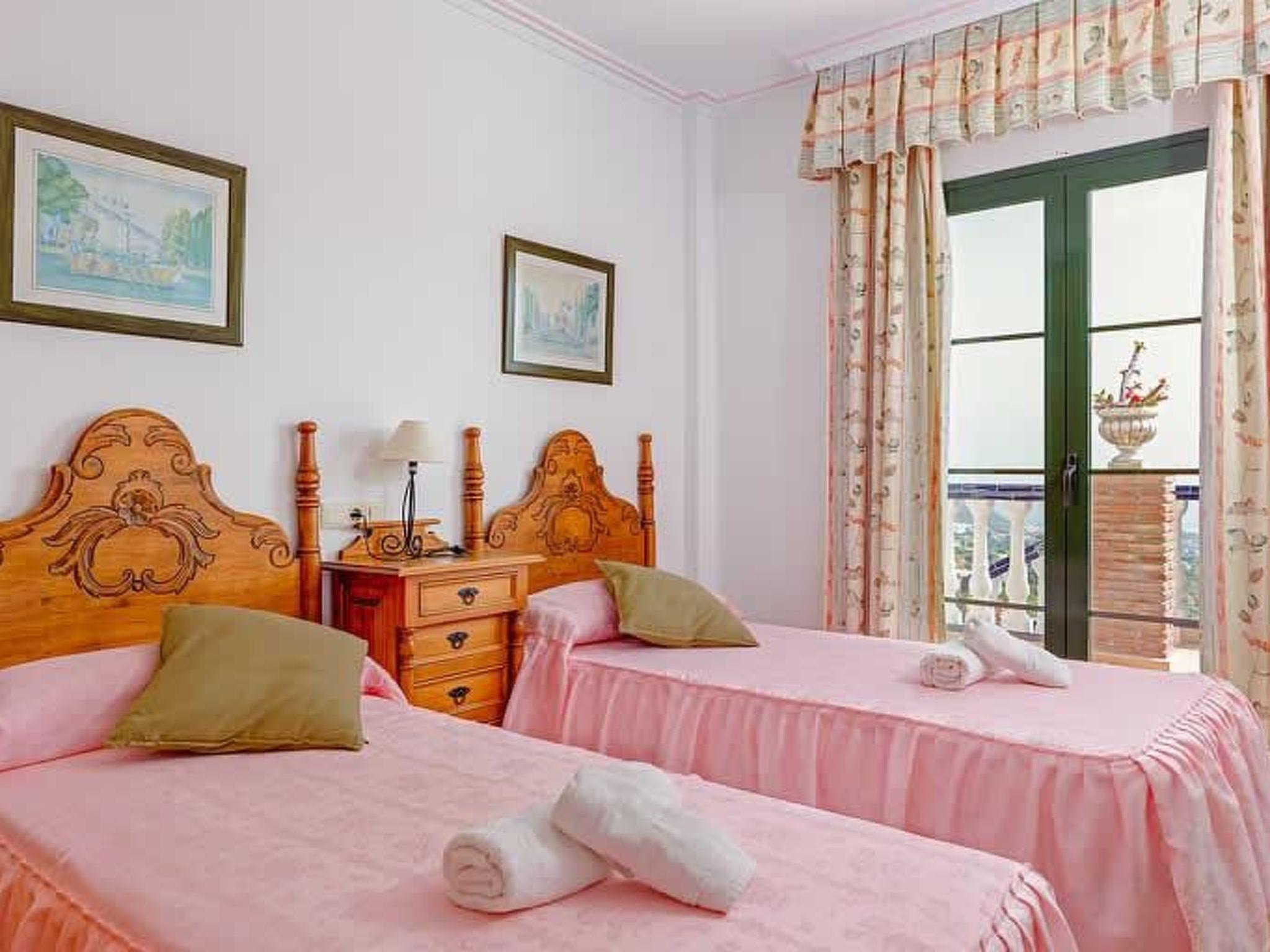 Dieses 120 m² große Ferienhaus liegt an einem Hang außerhalb des kleinen andalusischen Dorfes Frigiliana und bietet einen herrlichen Blick auf die umliegenden Berge. Der Zugang zum Haus erfolgt über eine Bergstraße.