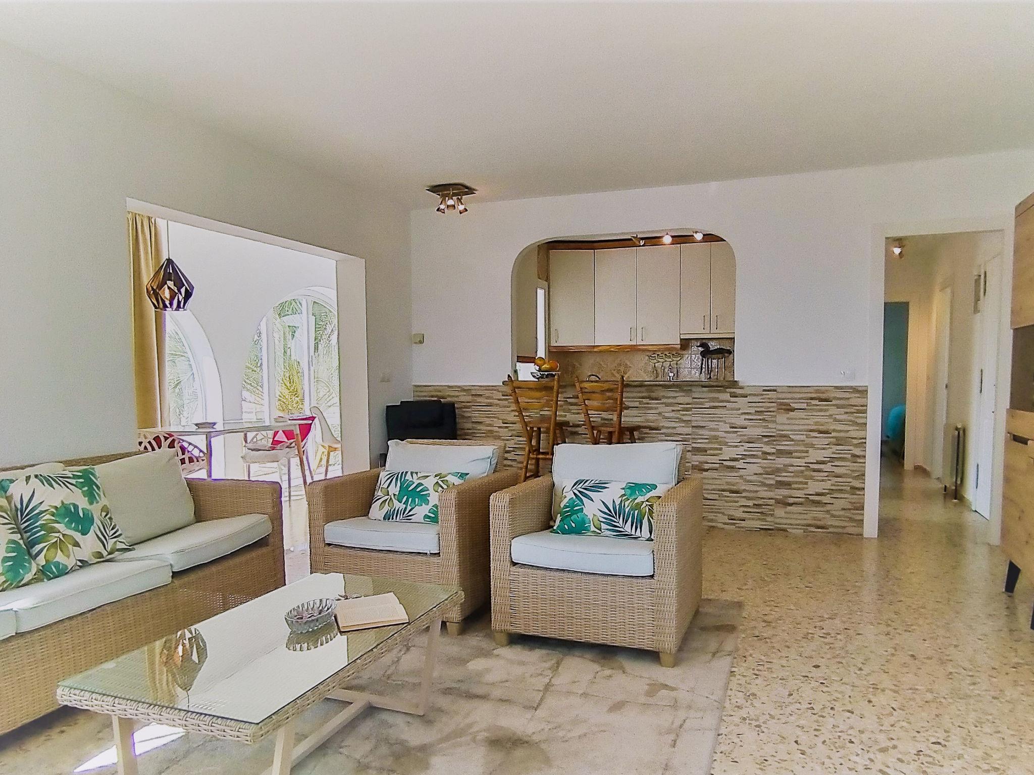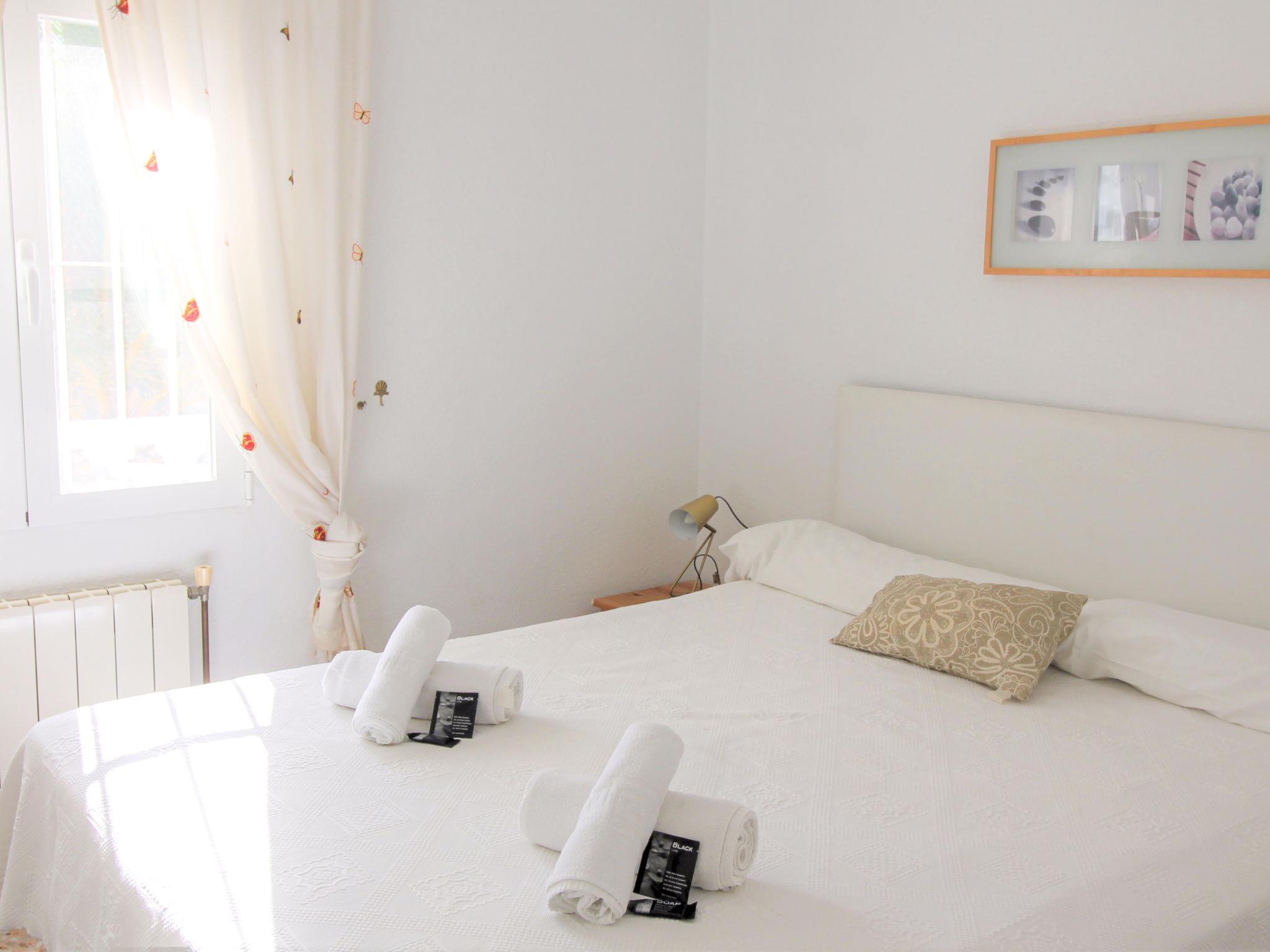 "Colombia 16", 3-Zimmer-Haus 75 m2, im Obergeschoss, Ostlage. Geräumig und hell, zweckmässig und komfortabel eingerichtet: Wohn-/Esszimmer mit Digital-TV, G-Heizung, Klimaanlage und Warmluftheizung. Ausgang zur Terrasse, zur Veranda. 1 Zimmer 15 m2 mit 1 franz. Bett (150 cm, Länge 200 cm), G-Heizung, Klimaanlage und Warmluftheizung. 1 Zimmer mit 1 Bett (135 cm, Länge 190 cm), G-Heizung, Klimaanlage und Warmluftheizung. Offene Küche (4 Kochplatten, Backofen, Geschirrspüler, Mikrowelle, Tiefkühler). Dusche/WC. Unteres Geschoss: Dusche/WC. Terrasse 35 m2, grosser Garten 100 m2, Laube. Terrassenmöbel, Gartengrill, Liegestühle (4). Fernsicht auf das Meer, das Schwimmbad, den Garten und die Landschaft. Zur Verfügung: Waschmaschine, Bügeleisen, Haartrockner. Internet (WLAN, gratis). Parkplatz (2 Autos). VT-439702-A // Reg. Nr.: ESFCTU00000305300037492000000000000000000VT-439702-A0