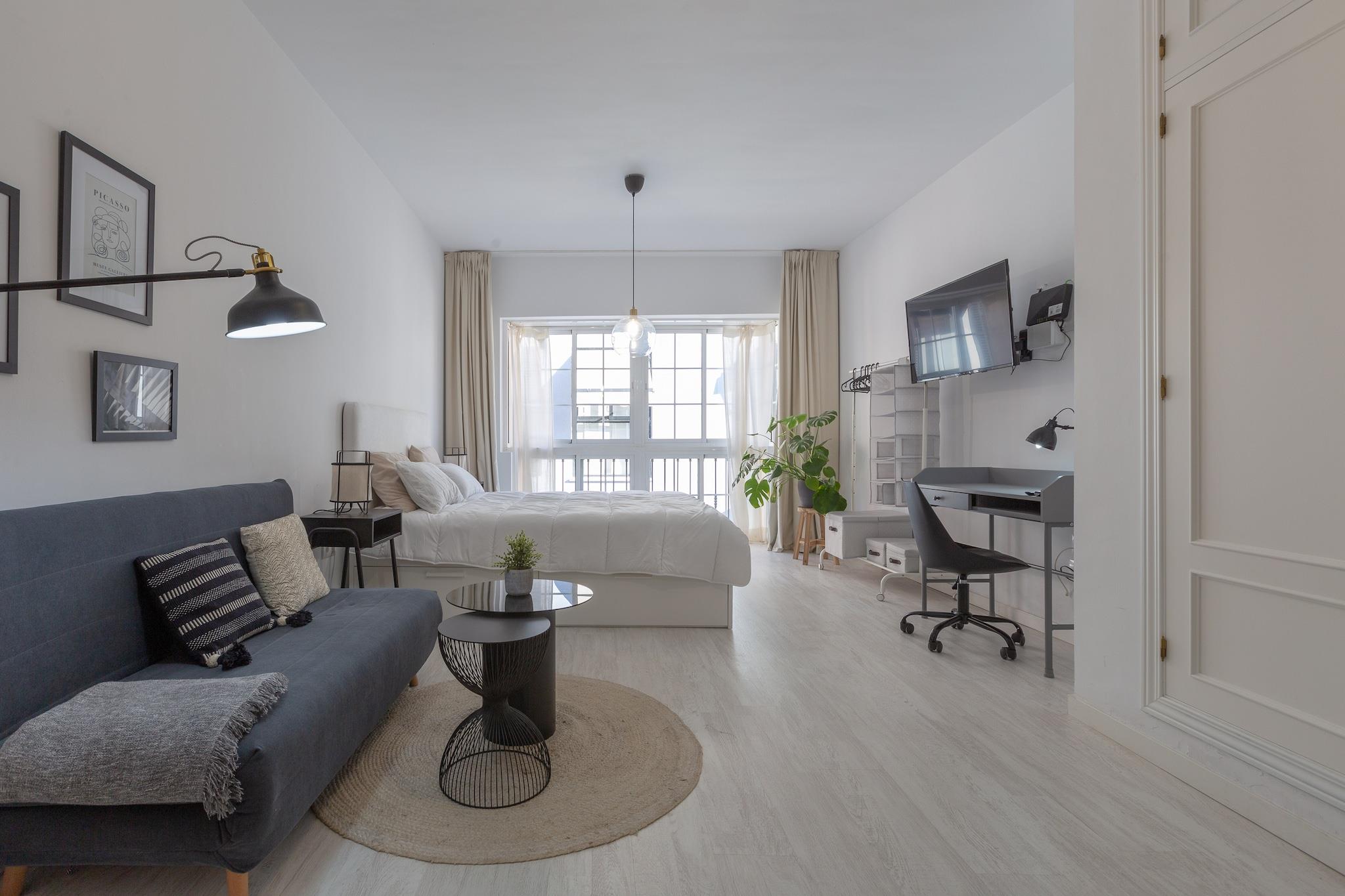 Wenn Sie Lust haben, den Süden Spaniens zu besuchen, ist dies die ideale Unterkunft für Sie. Die großen Fenster sorgen für viel Licht in den Räumen. Außerdem bieten sie einen Blick auf eine schöne und malerische Straße. Durch die Lage in einem Mehrfamilienhaus hat dieses Apartment direkte Nachbarn. Das Innere des Hauses ist so gestaltet, dass Sie die Ruhe finden, die Sie verdienen. In dem offenen und durchlässigen Raum finden Sie ein Wohn-Esszimmer mit Klimaanlage und Smart-TV, eine Küche mit Induktionsherd und allen notwendigen Utensilien, um bequem zu kochen und ein Doppelbett. Im Haus gibt es eine Waschmaschine, Bügeleisen und Bügelbrett. Das Schlafsofa bietet Platz für 1 Person. Ein Badezimmer mit Dusche vervollständigt das Appartement. Wenn Sie mit Ihrem Baby reisen, können wir Ihnen ein Kinderbett und einen Hochstuhl zur Verfügung stellen. Die Unterkunft befindet sich in Málaga, einer Küstenstadt am Mittelmeer. Wenn Sie Lust haben, schwimmen zu gehen, können Sie die vielen Strände besuchen, die ganz in der Nähe Ihrer Unterkunft liegen. Málaga ist für seine großartige Kultur und Geschichte bekannt. Es ist der Geburtsort von Pablo Picasso, ein Besuch im Picasso Museum ist auf jeden Fall empfehlenswert. Andere Sehenswürdigkeiten wie den Botanischen Garten oder den Alcazaba-Palast, mit seinem Panoramablick über die Stadt sollten Sie nicht auslassen. Auf jeden Fall sollten Sie den für Málaga typischen süßen Wein probieren und dazu köstliche Tapas essen. Eventuelle Nebenkosten müssen beim Anbieter nachgefragt werden. Haustiere sind verboten. Partys oder ähnliche Veranstaltungen sind nicht gestattet. Entfernungen Strand: 2.1 km - Playa de la Malagueta Flughafen: 12.5 km - Málaga - Costa del Sol Golfplatz: 20.3 km - Real Guadalhorce Club de Golf Ortsmitte: 0.65 km - Málaga Bahnhof: 1.5 km - Málaga Bushaltestelle: 0.35 km - Málaga Fähre: 1.3 km - Málaga Krankenhaus: 0.75 km - Hospital HM Gálvez Touristen Lizenz: VUT/MA/46875Einheitsregister: ESFCTU0000290270005030600000000000000000VFT/MA/468756