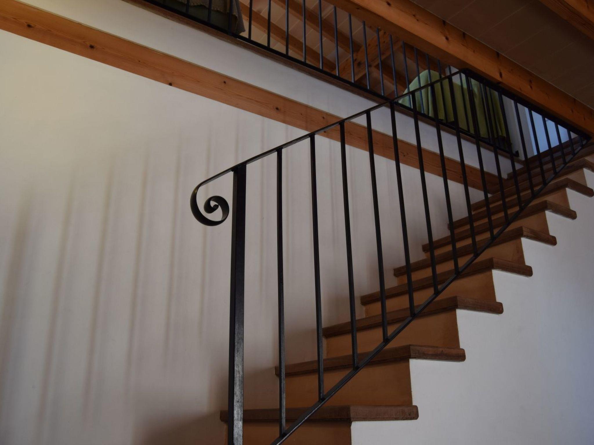 Das Wohnzimmer ist ein großer Raum mit 4 Fenstern, die den Blick über die Landschaft bis hin zu den Bergen und dem Meer in der Ferne freigeben. Es befindet sich im Obergeschoss und ist direkt über die Treppe zu erreichen, die vom Esszimmer nach oben führt. Hier gibt es einen Fernseher mit Astra-Satellitenempfang.