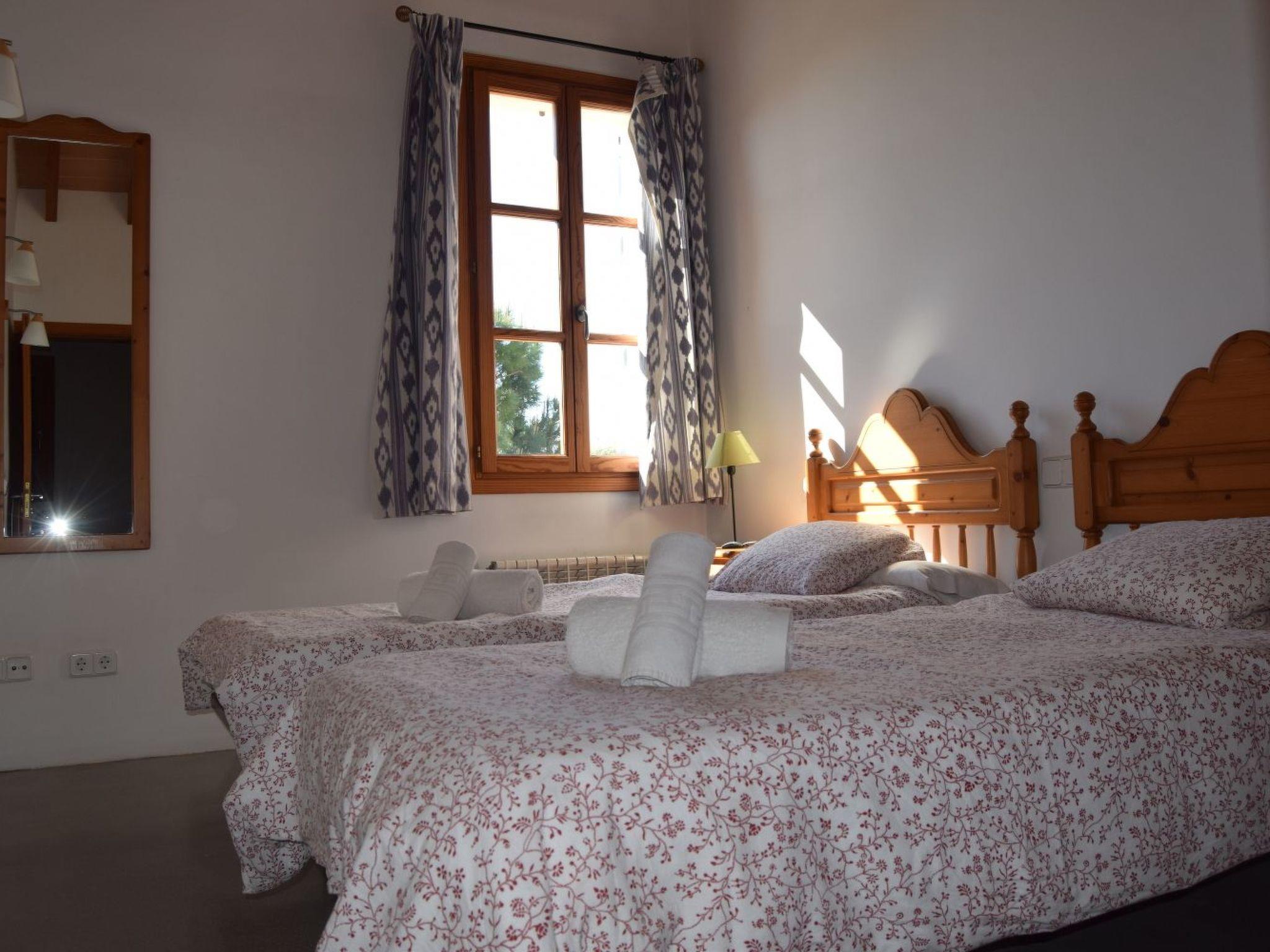 Der Haupteingang des Hauses führt direkt in den Speisesaal, von dem aus man die übrigen Räume erreichen kann. Es gibt zwei Eingänge, den Haupteingang und eine weitere Tür, die sich neben der Küche befindet und auf die Terrasse vor dem Schwimmbad führt. Dieser Innenhof wurde ursprünglich zum Trocknen der Feigen genutzt, die im Sommer von den zum Haus gehörenden Bäumen geerntet wurden.