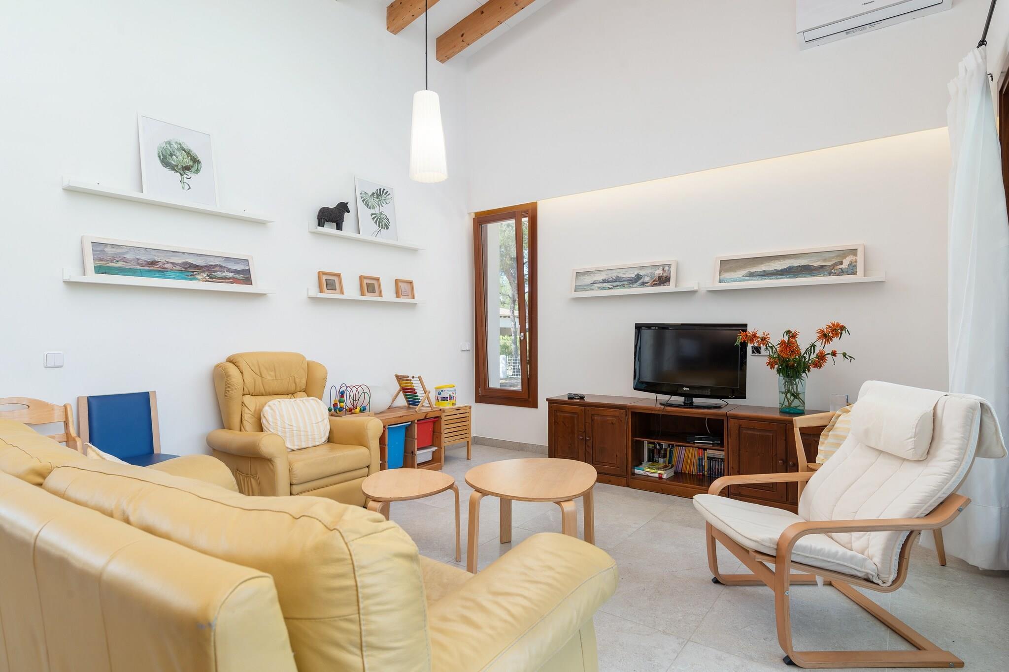 Auf der fantastischen Veranda können Sie die Mahlzeiten im Freien servieren, einen Grillabend veranstalten oder den unterhaltsamen Urlaubstag bei einem Glas Wein und anregenden Gesprächen, mit Freunden und Familie ausklingen lassen. Wenn Sie mal keine Lust haben, an den nur 450m entfernten Strand zu gehen, laden 5 Liegen im privaten Garten ein, sich von der Sonne verwöhnen zu lassen. Auf der großen Rasenfläche können Sie mit den Kindern spielen und toben. Das Grundstück ist eingezäunt und es gibt Nachbarn in der Nähe. Im Inneren befindet sich eine geräumige Wohnküche mit hohen Decken, großen Fenstern mit Zugang zum Garten, schöner Dekoration und Klimaanlage, in der Sie auf dem Gasherd leckere Rezepte zubereiten können, während Sie den Tisch decken oder sogar fernsehen können (mit Satellitenkanälen und Smart-TV). Anschließend lädt der Wohnbereich zu einer wohlverdienten Ruhepause ein. Im Küchenbereich gibt es eine Waschmaschine, Bügeleisen und Bügelbrett. Es gibt 3 Schlafzimmer, mit Kleiderschrank, Deckenventilator und Klimaanlage. Zwei davon haben zwei Einzelbetten und eines hat ein Doppelbett und ein eigenes Bad mit Dusche. Es gibt ein weiteres Badezimmer mit Dusche und Toilette. Ein Kinderbett und ein Hochstuhl sind vorhanden. Das charmante Haus liegt im Wohngebiet von Manresa, in der Gemeinde von Alcúdia, nur ca. 450m vom familiären Sandstrand Sant Joan entfernt. Im ca. 2,6km entfernten Ort Alcúdia, finden Sie alle Dienstleistungen die Sie für Ihren Urlaub in Eigenregie brauchen. Cafés, Bars und Restaurants mit typischer und internationaler Küche, neben Läden, Supermärkten und historischen Sehenswürdigkeiten wie die mittelalterliche Mauer oder das Museum warten darauf entdeckt zu werden. Golfer können Ihren Abschlag auf dem 7,7 km entfernten Glofpatz von Alcnada üben. Der Hafen ist ca. 5,8km entfernt. Eventuelle Nebenkosten müssen beim Anbieter nachgefragt werden. Haustiere sind verboten. Partys oder ähnliche Veranstaltungen sind nicht gestattet. Es gibt Freiluftparkplätze für 2 Autos. Entfernungen Strand: 0.45 km - Platja de Sant Joan Flughafen: 62.6 km - Son Sant Joan Golfplatz: 7.7 km - Golf d'Alcanada Ortsmitte: 2.6 km - Alcúdia Bahnhof: 18.6 km - Sa Pobla Bushaltestelle: 3 km - Alcúdia Fähre: 5.8 km - Puerto de Alcúdia Krankenhaus: 27.7 km - Hospital Comarcal d'Inca Touristen Lizenz: ETV/8581Einheitsregister: ESFCTU00000704300018850000000000000000000000ETV/85814Bei der Anreise muss die Ecotasa (Touristensteuer der Balearen) bar bezahlt werden. Der zu zahlende Betrag beträgt zwischen 0.55EURO pro Nacht und Gast in der Nebensaison und 2.2EURO pro Nacht und Gast in der Hochsaison. Ab dem 9. Tag reduziert sich die Steuer um die Hälfte. Personen unter 16 Jahren sind davon ausgenommen. Stromverbrauch (März - Dezember): 0.35 EUR/Kw (obligatorisch)