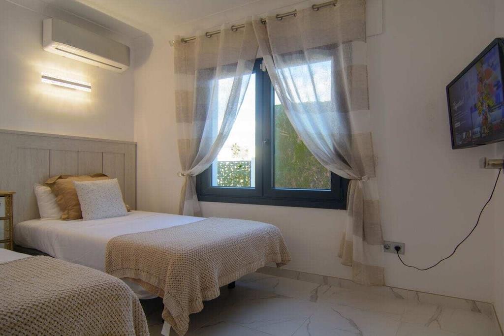 Sind Sie auf der Suche nach einem Urlaubsort, der die andalusische Tradition mit dem Bedürfnis nach modernem Design perfekt verbindet? Besuchen Sie unsere schöne Villa und alle Ihre Erwartungen werden erfüllt werden! Dieses nach Süden ausgerichtete Stadthaus mit 5 Schlafzimmern (300m2) befindet sich auf einem großzügigen Grundstück (1000m2), hat eine mediterrane Vegetation, einen besonderen L-förmigen Pool mit römischer Treppe (der Hauptteil ist 9mx4m, das Kinderbecken ist 3m x 3m), Sonnenliegen, Terrassen, Grillplatz, einen wunderschönen Blick auf das Meer und die Berge, ein gepflegtes und sorgfältig durchdachtes Design, moderne und doch sehr stilvolle Möbel und Dekorationen. ~ Innen Im Erdgeschoss befinden sich das Wohnzimmer, zwei Schlafzimmer, eine Küche und ein Familienbad. Das Wohnzimmer besteht aus zwei verschiedenen Bereichen: dem Sitz- und dem Essbereich. Die schönen Marmorböden und das gepflegte Design, die Holzbalken und die exquisite Dekoration machen Ihren Aufenthalt so angenehm wie möglich. In der Sitzecke steht ein bequemes Sofa vor einem Flachbildfernseher (iptv mit internationalen Kanälen). Der Kamin vervollständigt die heimelige Atmosphäre. Der Essbereich verfügt über einen eleganten Esstisch für sechs Personen mit bequemen gepolsterten Stühlen. Von hier aus können Sie durch eine Schiebetür auf die Hauptterrasse gelangen. Im Erdgeschoss befinden sich zwei Schlafzimmer, die sich ein Familienbad teilen. Eines der Schlafzimmer hat zwei Einzelbetten (2x90x200cm), geräumige Kleiderschränke, einen Flachbildfernseher (iptv mit internationalen Kanälen), zwei Wandlampen und einen Nachttisch. Das Familienbadezimmer hat eine begehbare Dusche, Waschbecken, Toilette und ein Fenster für natürliches Licht. Das zweite Schlafzimmer hat ein Doppelbett (160x200cm), zwei Nachttische, Wandlampen, große Schränke, einen Tisch, der ideal ist, wenn Sie an Ihrem Laptop arbeiten, und einen Flachbildfernseher (iptv mit internationalen Kanälen). Neben der kleinen Eingangshalle befindet sich die Küche, die sehr praktisch ist und über alle notwendigen Geräte verfügt: Ceranfeld, Backofen, Mikrowelle, Nabe, Kühlschrank, Toaster, Wasserkocher. Sie hat auch zwei Barhocker, die die moderne Atmosphäre vervollständigen. Im Obergeschoss befinden sich drei Schlafzimmer, ein Bad en suite, ein Familienbad und eine Terrasse, von der aus Sie den schönen Garten mit Pool, das Meer und die Berge bewundern können. Das Hauptschlafzimmer hat ein Doppelbett (180x200cm), zwei Nachttische, einen geräumigen Kleiderschrank, eine Kommode, zwei Hocker und einen Flachbildfernseher (iptv mit internationalen Kanälen). Das Badezimmer hat ein sehr ansprechendes Design und eine perfekte Ausstattung mit Wandlampen, zwei Spiegeln, einer begehbaren Dusche mit Regenkopf, Waschbecken und Toilette. Das zweite Schlafzimmer im Obergeschoss hat ein Doppelbett (160x200cm) mit Nachttisch, einen geräumigen Kleiderschrank und sichtbare Holzbalken. Das dritte Schlafzimmer im Obergeschoss verfügt über ein Doppelbett (140x200cm), einen geräumigen Kleiderschrank, einen Nachttisch, einen Tisch für den Laptop und einen Flachbildfernseher (iptv mit internationalen Kanälen). Diese beiden Schlafzimmer teilen sich ein Familienbadezimmer mit einer begehbaren Dusche mit Regendusche, Waschbecken, Toilette und Fenster. Alle Schlafzimmer sind klimatisiert. ~Terrassen und Garten Die schöne, geräumige Terrasse, die vom Wohnzimmer aus zugänglich ist, ist mit einem Rattan-Esstisch für sechs Personen ausgestattet und hat Zugang zu einem großen Kühlschrank. Von hier aus können Sie die schöne mediterrane Vegetation des großen Gartens (1000m2) und den Pool bewundern. Der gepflegte Garten, der den Pool umgibt, ist mit schönen Palmen bepflanzt und ein grüner Zaun verleiht diesem Raum Intimität. Ein kleiner Esstisch für vier Personen steht neben dem Pool, mit einem Sonnenschirm für die heißen Sommertage. Der Grillplatz ermöglicht es Ihnen, an kühlen Abenden besondere Mahlzeiten zuzubereiten. Wenn Sie keine Lust haben, zum Meer zu laufen, können Sie sich am Pool auf einer der sechs Sonnenliegen entspannen, die hier für Ihren Komfort aufgestellt sind. Das L-förmige Schwimmbad hat zwei verschiedene Bereiche: der Hauptteil ist 9mx4m, das Kinderbecken ist 3m x 3m groß, eine Schwimmbrücke trennt die beiden Bereiche und eine römische Treppe. Die obere Terrasse (12m2) im ersten Stock bietet einen schönen Blick auf das Meer, den Pool, den Garten, die Urbanisation und die Berge. Der kleine Rattan-Couchtisch ermöglicht es Ihnen, die perfekte Aussicht zu genießen, während Sie Ihren Morgenkaffee trinken. Dienstprogramme: TV (6), Zentralheizung, Kamin, Klimaanlage, Ventilatoren, Toaster, Bügeleisen, Geschirrspüler, Backofen, Mikrowelle, Kühlschrank, Gefrierschrank, Waschmaschine, Trockner, Kaffeemaschine, Wasserkocher, BBQ. Räume: 5 Schlafzimmer, 3 Bäder, Wohnzimmer mit Essbereich und Sitzecke, 1 Küche. Möblierung: Einzelbetten (2), Doppelbetten (4), Sofas, Außensofa und Sessel mit Sitzgelegenheiten (6), Sonnenliegen (4), Esstisch (4), Esstisch auf Terrasse (6), Esstisch auf Terrasse (4). Jedes Schlafzimmer hat einen Kleiderschrank. Sonstiges: Bettwäsche und Handtücher inklusive. Kostenloses Internet WIFI verfügbar. Draußen: Große Terrasse, privater Außenpool, privater Garten, Grillplatz.