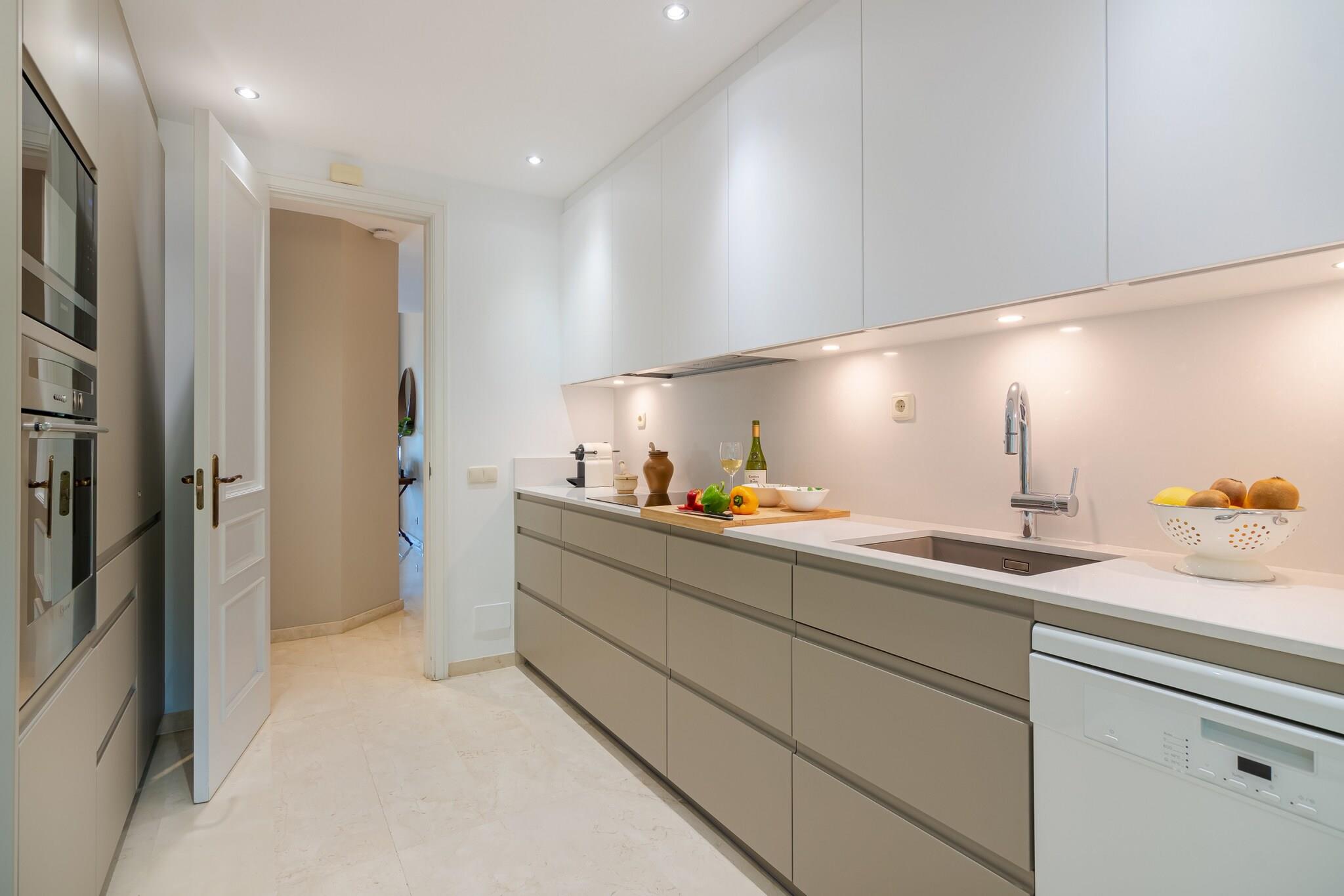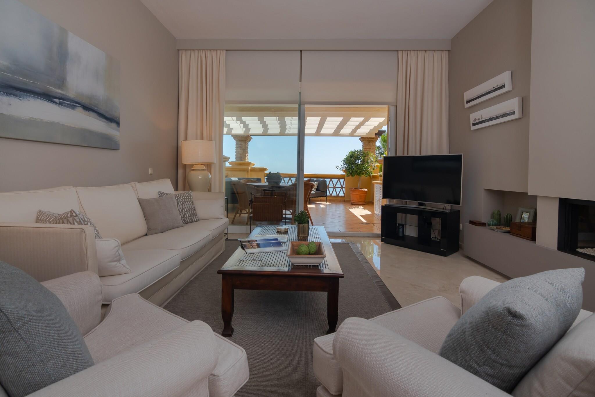 In einer der besten Lagen innerhalb einer exklusiven Wohnanlage am Meer in Marbellas Rio Real Playa gelegen, bietet dieses gehobene Apartment einen herrlichen Meerblick in erster Reihe und komfortable Unterkünfte für bis zu sechs Gäste. Mit drei geschmackvoll eingerichteten Schlafzimmern und drei Badezimmern ist es ideal für Familien oder kleine Gruppen, die einen stilvollen und entspannten Aufenthalt nur wenige Minuten von der Mittelmeerküste entfernt suchen. Im Inneren bietet der helle Wohn- und Essbereich reichlich Sitzgelegenheiten und einen Esstisch für gemeinsame Mahlzeiten, mit großen Schiebetüren, die auf eine private Terrasse mit Blick auf das glitzernde Meer führen. Die voll ausgestattete Küche verfügt über moderne Geräte wie Kühlschrank, Backofen, Geschirrspüler und Kaffeemaschine für müheloses Selbstversorgen. Eine Klimaanlage im gesamten Haus sorgt an warmen Sommertagen für Komfort, während kostenloses WLAN und TV Unterhaltung und Konnektivität bieten. Die drei Schlafzimmer sind für flexible Gruppenaufenthalte ausgelegt. Die Master-Suite verfügt über ein Doppelbett und ein eigenes Bad mit Badewanne und Dusche, während das zweite Schlafzimmer ebenfalls ein Doppelbett mit eigenem Duschbad bietet. Das dritte Schlafzimmer verfügt über zwei Einzelbetten und Zugang zu einem separaten Badezimmer mit Dusche – ideal für zusätzliche Gäste. Im Außenbereich genießen die Bewohner Zugang zu zwei Gemeinschaftspools, darunter ein beheizter Pool in den kühleren Monaten, sowie Kinderbecken und gepflegte Gärten. Ein abgeschlossener Gemeinschaftsparkplatz sorgt für eine stressfreie Ankunft. Nur einen kurzen Spaziergang von lebhaften Strandclubs und Restaurants wie der Trocadero Arena und nur wenige Autominuten von Puerto Banús entfernt, verbindet dieses Apartment am Strand Küstenluxus mit alltäglicher Bequemlichkeit an der Costa del Sol.