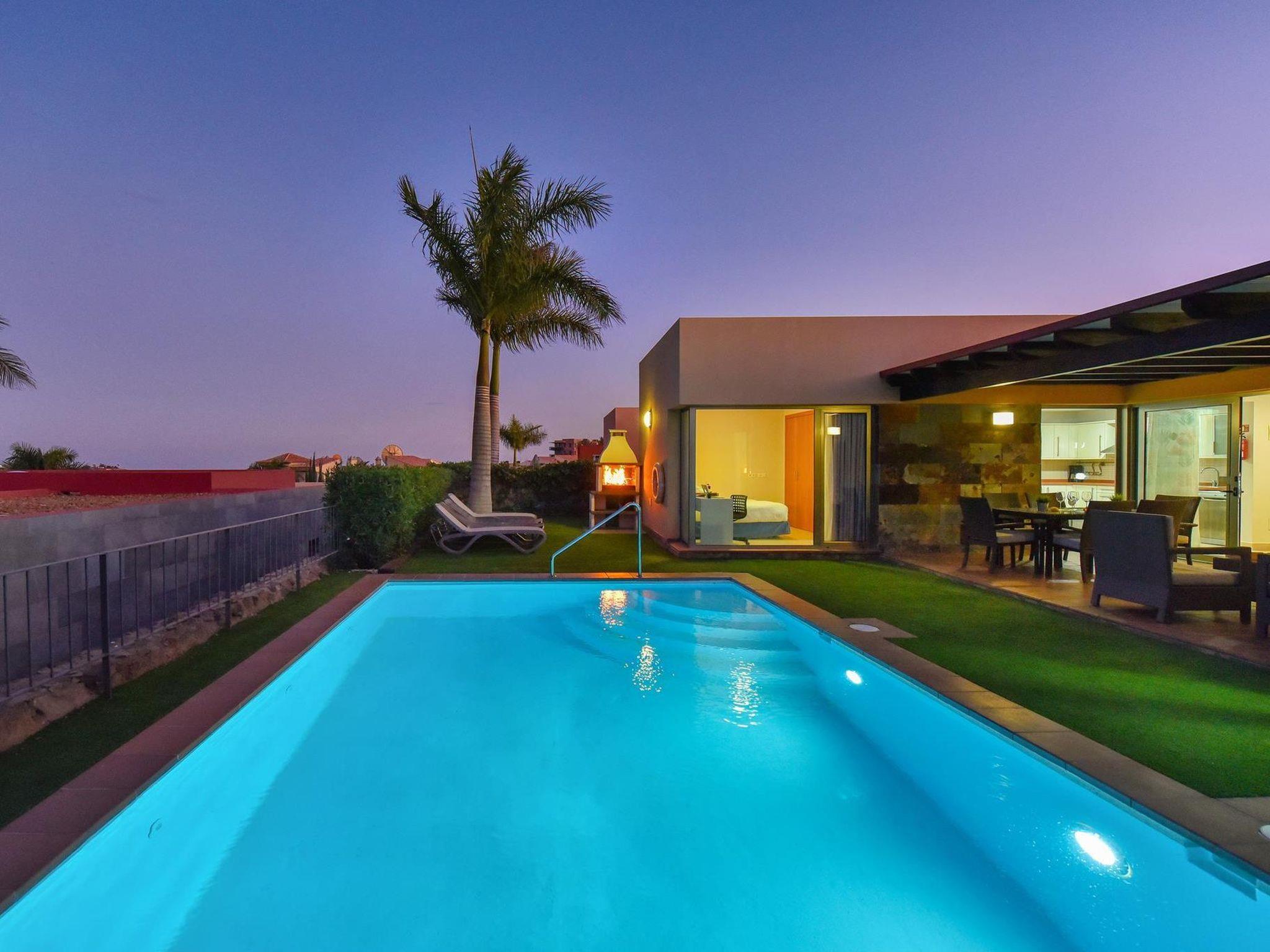 Moderne, komfortable Villa "Par4 Villa 2". Im Ortszentrum von Salobre Golf Resort, am Ortsrand Maspalomas 5 km, ausserhalb des Ortes Meloneras 7 km, ruhige, erhöhte Lage. Zur Alleinbenutzung: Garten 80 m2 (eingezäunt) mit Rasen, Schwimmbad eckig (8 x 4 m, 140 - 140 cm tief, saisonale Verfügbarkeit: 01.Jan. - 31.Dez.) mit Salzelektrolyse-Reinigungssystem. Grill, Parkplatz auf dem Grundstück, öffentliche Parkplätze auf der Strasse. Einkaufsgeschäft 4 km, Supermarkt 1 km, Restaurant 200 m, Bushaltestelle "Las Crucitas" 19 km, Sandstrand 3 km. Golfplatz (18 Loch) 500 m. Der Besitzer akzeptiert keine Jugendgruppen. Bitte beachten: Flugplatz 25 km vom Haus. Die Nachbarschaft ist sehr lärmempfindlich. Ruhe und gutes Benehmen wird erwartet.