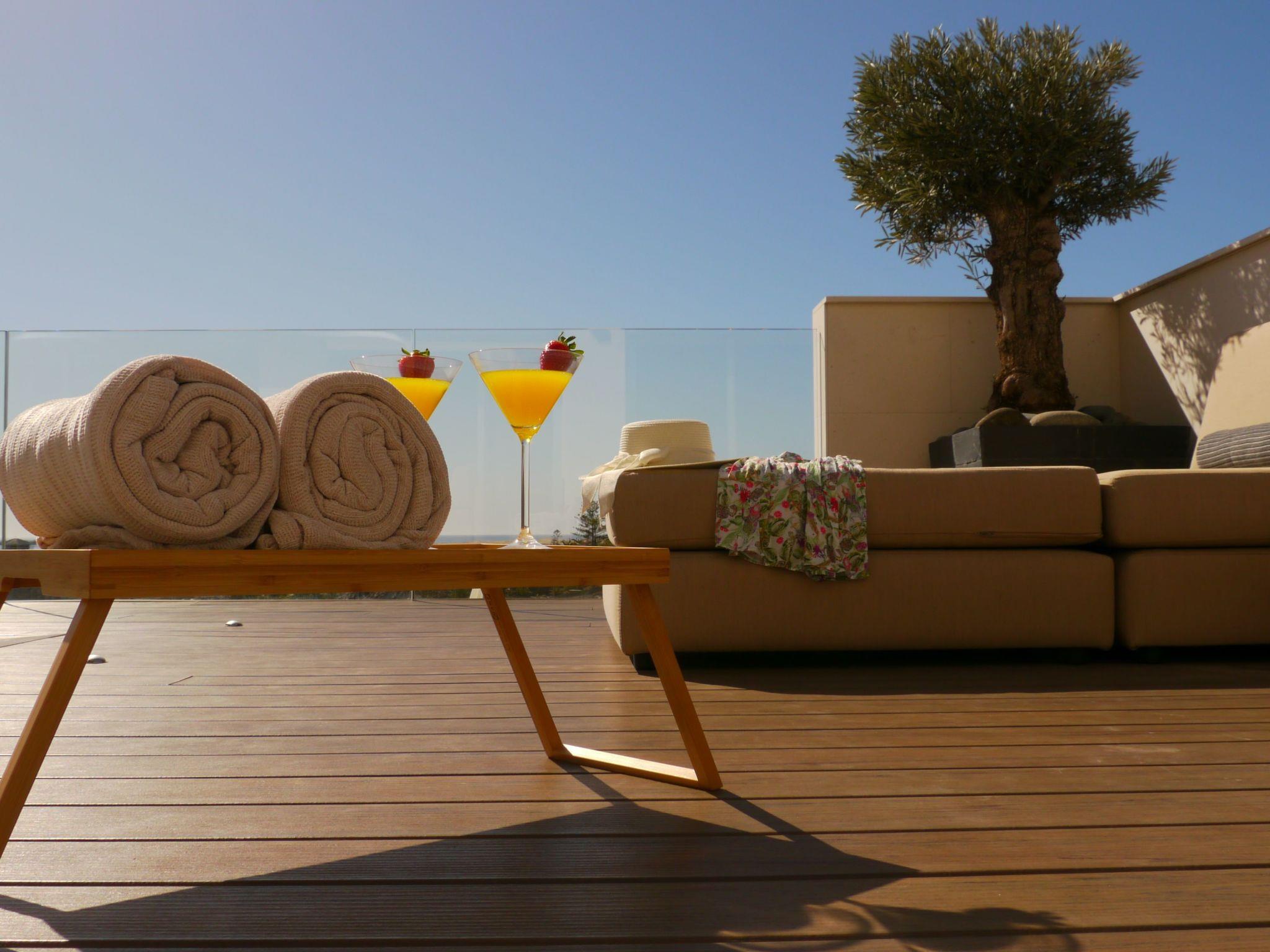 uneinsehbare Terrasse mit gemütlichen Sonnenliegen