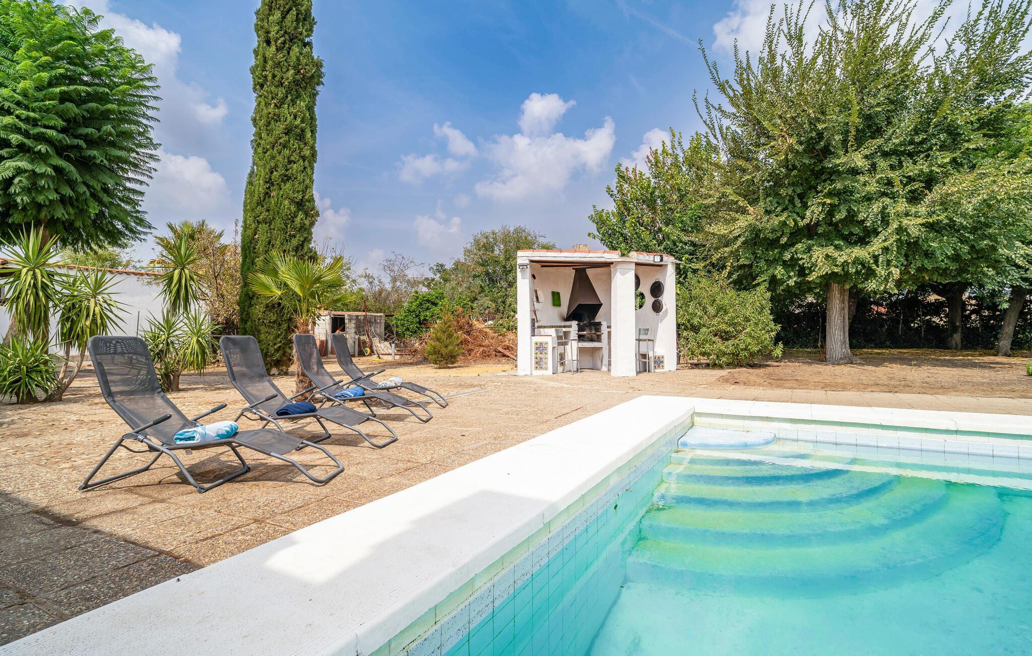 In ruhiger Lage gelegen, verfügt die Villa Virgen de Aranzazu in Moron de la Frontera über einen großzügigen Garten, der zum Verweilen im Freien einlädt. Entspannen Sie sich im Schatten der Bäume oder genießen Sie einen Tag voller Spiel und Spaß. Der private Pool, umgeben von einheimischen Pflanzen und bequemen Sonnenliegen, ist der ideale Ort, um sich abzukühlen und zu entspannen. Gleich daneben befindet sich ein gemütlicher Grillbereich, ideal für gesellige Grillabende mit Familie und Freunden unter dem funkelnden Sternenhimmel.
