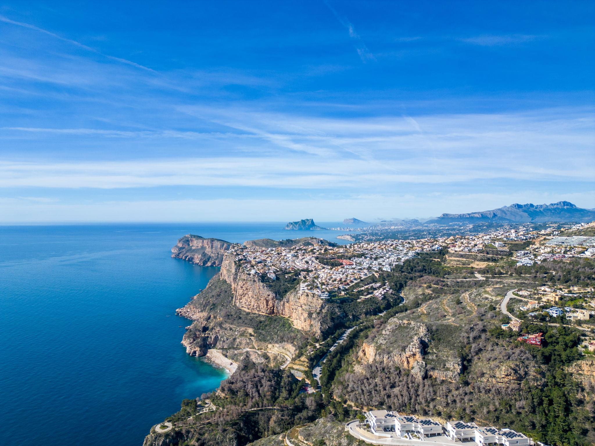 Cumbre del Sol: Grosse, schöne Feriensiedlung "Pueblo de la Paz". 8 km vom Zentrum von Moraira, im Bezirk Cumbre del Sol, ruhige, sonnige Lage in einem Wohnquartier, verkehrsberuhigte Zone, 1.8 km vom Meer, 1.8 km vom Strand. Zur Mitbenutzung: schöner, gepflegter Garten, Schwimmbad (60 x 16 m, saisonale Verfügbarkeit: 01.Apr. - 31.Okt.) mit Innentreppe. Kinderbecken, Aussendusche, Terrasse. Lebensmittelgeschäft, Supermarkt 500 m, Restaurant 600 m, Bushaltestelle 4 km, Sandstrand "Playa Arenal" 8 km, Felsstrand "Cala Moraig" 1.8 km. Sporthafen 9 km, Jacht-Hafen 9 km, Golfplatz 11 km. Nahe gelegene Sehenswürdigkeiten: Aqualandia, Mundomar, Terra Mítica, Terra Natura, Benidorm Palace (Benidorm), Les Fonts de l'Algar, Castillo de Guadalest. Der Besitzer akzeptiert keine Jugendgruppen.