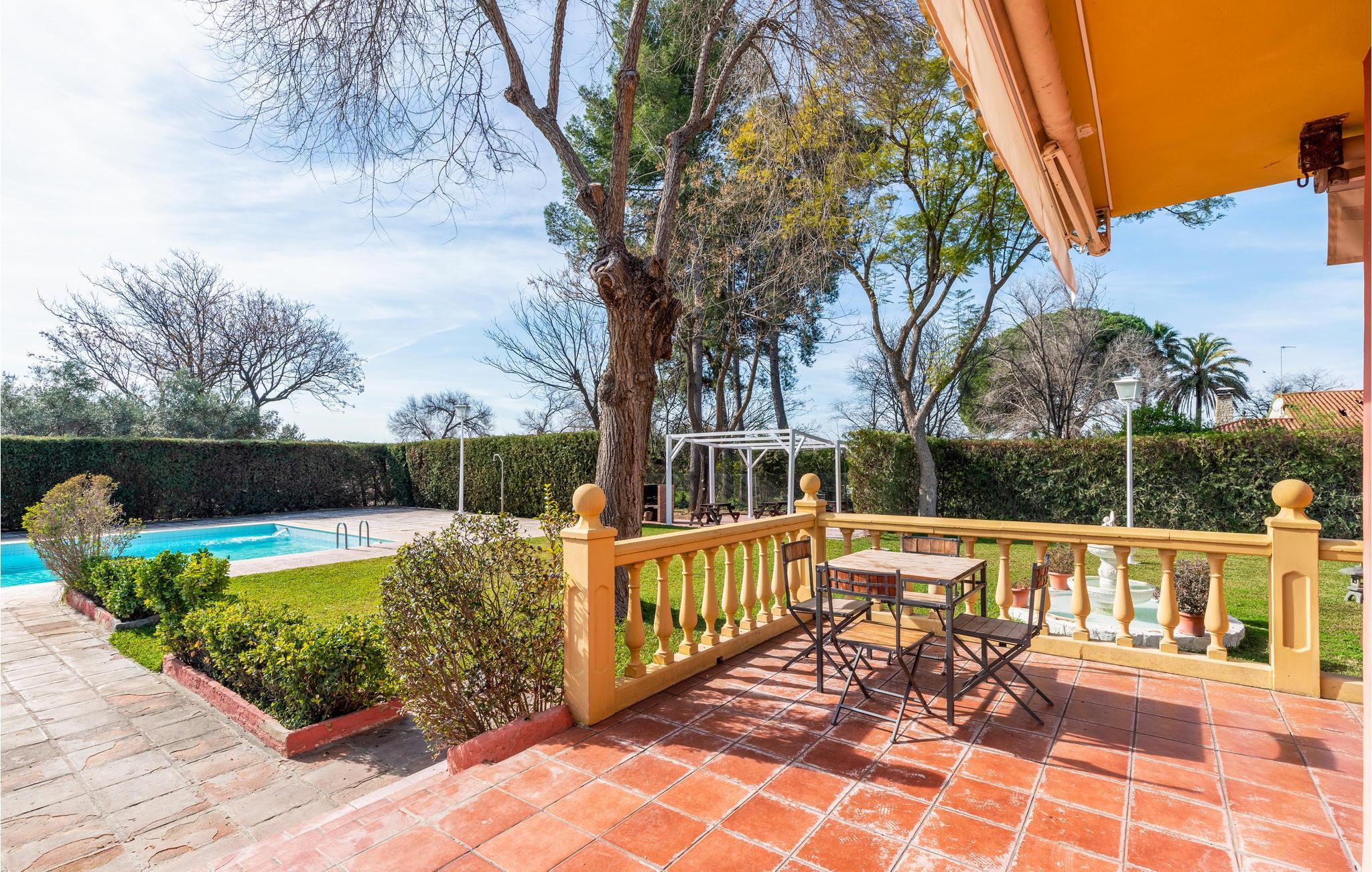 Auf einem riesigen Naturgrundstück, etwas nördlich von Morón de la Frontera, begrüßt Sie dieses großzügige, komfortable und charmante Haus, ideal für eine große Gruppe von Freunden oder ein Familientreffen. In den hellen Räumen mit mediterranen Farben und schönen Details werden Sie sich vom ersten Tag an wohlfühlen. Entspannen Sie sich auf gemütlichen Sofas vor dem Kamin und plaudern über Ihre Erlebnisse. Die vielen Sprossenfenster lassen viel Licht und die schöne Umgebung herein und schaffen eine einzigartige Atmosphäre. Springen Sie schon morgens in den Pool oder faulenzen auf den Sonnenliegen.