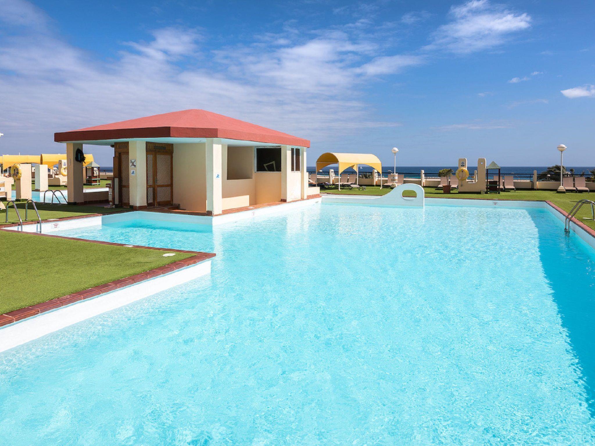 Die Anlage bietet eine private Terrasse mit Möbeln, von der aus Sie einen herrlichen Blick auf das Meer, den Strand, den Leuchtturm und die Sonne von Jandia genießen können. Zu den Gemeinschaftseinrichtungen gehören eine Waschmaschine, ein Wäschetrockner, Swimmingpools für Kinder und Erwachsene mit Blick auf den Strand, eine Sonnenterrasse mit Liegestühlen und Sonnenschirmen, eine Poolbar, ein preiswertes Restaurant, ein Spielzimmer und vieles mehr. Es ist der perfekte Ort, um sich zu entspannen und das gute Klima der Insel zu genießen.