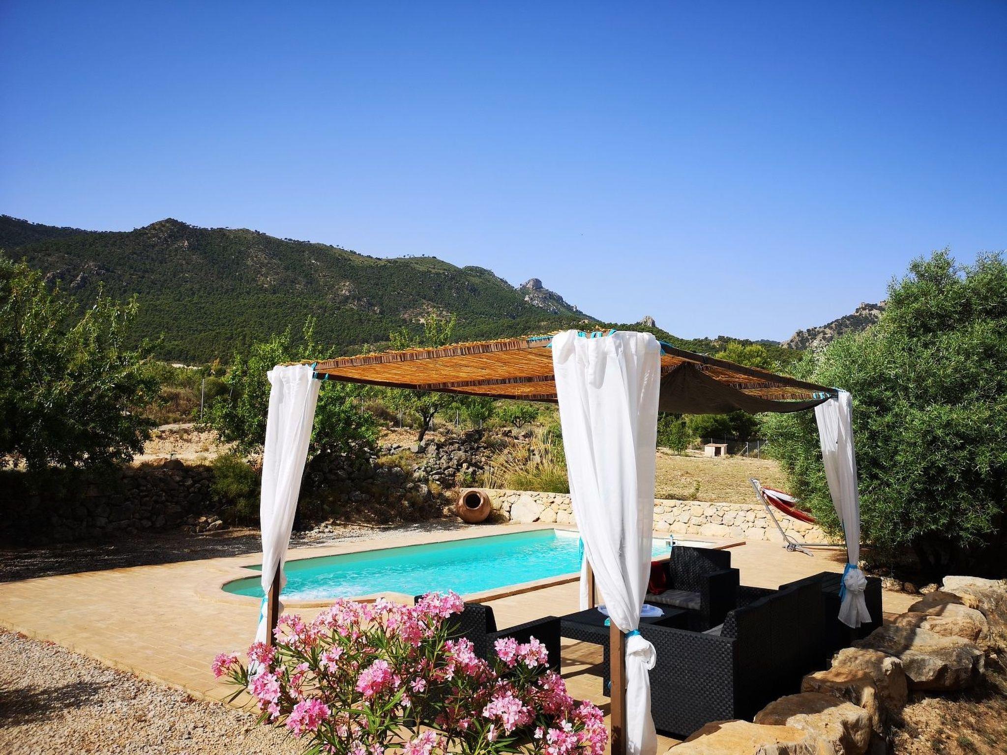 Die direkt von der Küche zugängliche Terrasse ist mit BBQ und Outdoor-Sitzgruppe der Garant für kurze Wege und Grillerlebnisse mit fantastischem Ausblick in die Berge. Insgesamt vier möblierte, teilweise überdachte Terrassen mit Blick in alle vier Himmelsrichtungen laden tagsüber zum Entspannen oder nachts zum Sternegucken und Mondbaden ein. Der herrlich in die Landschaft eingebettete Privatpool bietet für Sonnenhungrige Poolliegen, für den Plausch mit Familie und Freunden eine überdachte Lounge-Ecke und für Wasserfans natürlich Abkühlung und Vergnügen. In der Hängematte ist die Seele baumeln lassen angesagt. Das 9000 qm große, umzäunte Grundstück ist mit den auf dem Campo typischen Oliven- und Mandelbäumen, mit blühenden Oleanderbüschen sowie einer Vielfalt an Bäumen und Sträuchern bewachsen. Hunde sind herzlich willkommen – es gibt bei Bedarf sogar eine Hundehütte mit separatem Freilaufgelände. Die breite Einfahrt mit verschließbarem Tor grenzt zur wenig befahrenen, aber geteerten Straße, zahlreiche Parkplätze stehen auf dem Gelände zur Verfügung.