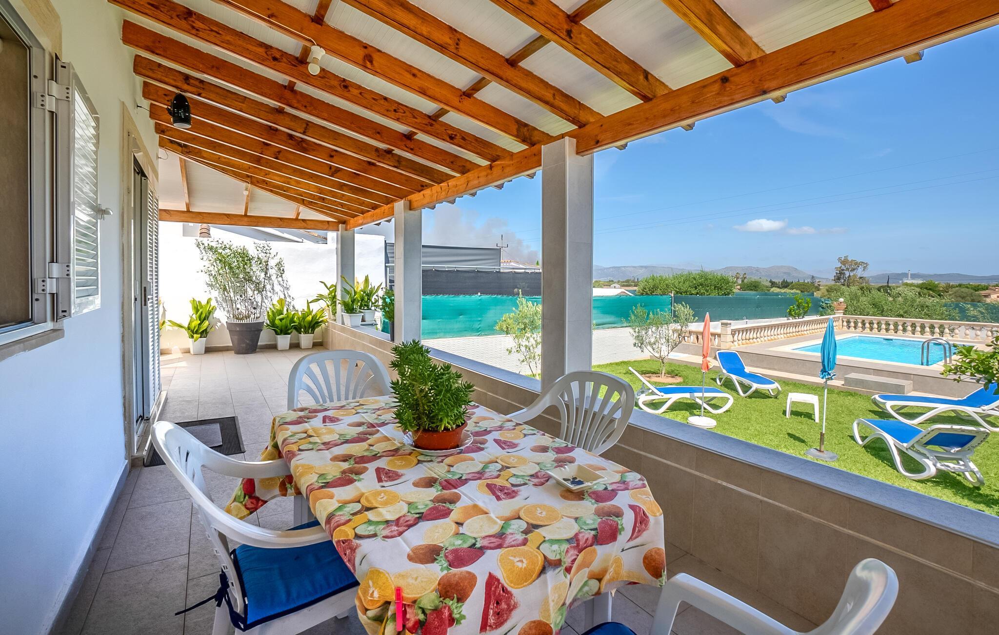 Dieses charmante, gepflegte Häuschen befindet sich nur 3 km von den schneeweißen Sandstränden der Playa de Muro entfernt. Durch die nahegelegenen Verbindungsstrasse ist die Bucht von Alcudia in kürzester Zeit zu erreichen. Hier erwartet Sie ein gepflegter Garten mit Rasenfläche und einem schönem Pool. Auf der überdachten Terrasse genießen Sie gemütliche Abende mit Leckereien von der beliebten Garten-Grillstelle.Über eine Außentreppe erreichen Sie die großzügige Sonnenterrasse, wo Sie sich ungestört bräunen und in der Sonne aalen können. Gruppen (ausgenommen Familien und Pärchen ü30) auf Anfrage und mit Spezialkaution. Lizenznummer: ETV/2324
