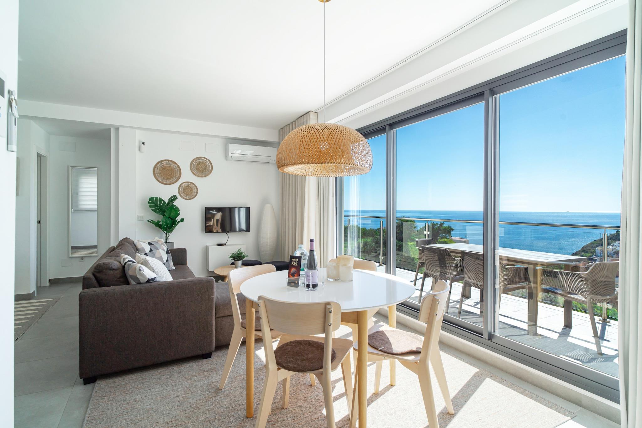 In der 2. Etage: (Küche(Wasserkocher, Toaster, Kaffeemaschine, Backofen, Mikrowelle, Spülmaschine, Kühl-/Gefrierkombination, ), Wohn/Esszimmer(TV(smart TV), Esstisch, Sitzecke), Schlafzimmer(Doppelbett), Schlafzimmer(Doppelbett), Badezimmer(Dusche, Waschbecken), Internet) , Garage, Waschmaschine, Balkon, Klimaanlage, Pool(Gemeinschaftliche Nutzung mit anderen Gästen), Bügeleisen, Luft-Luft-Wärmepumpe , Mountain view, Sea view, Wine glasses