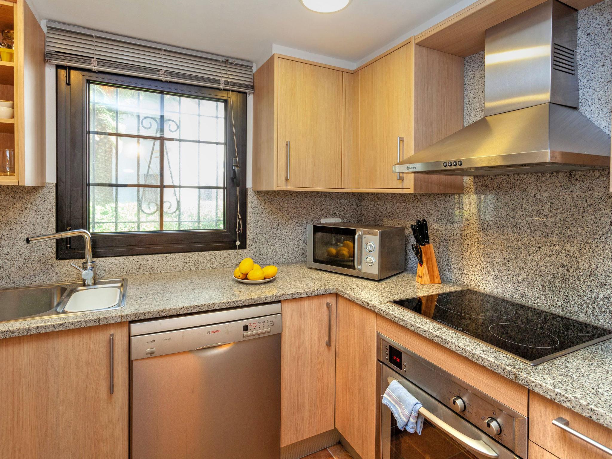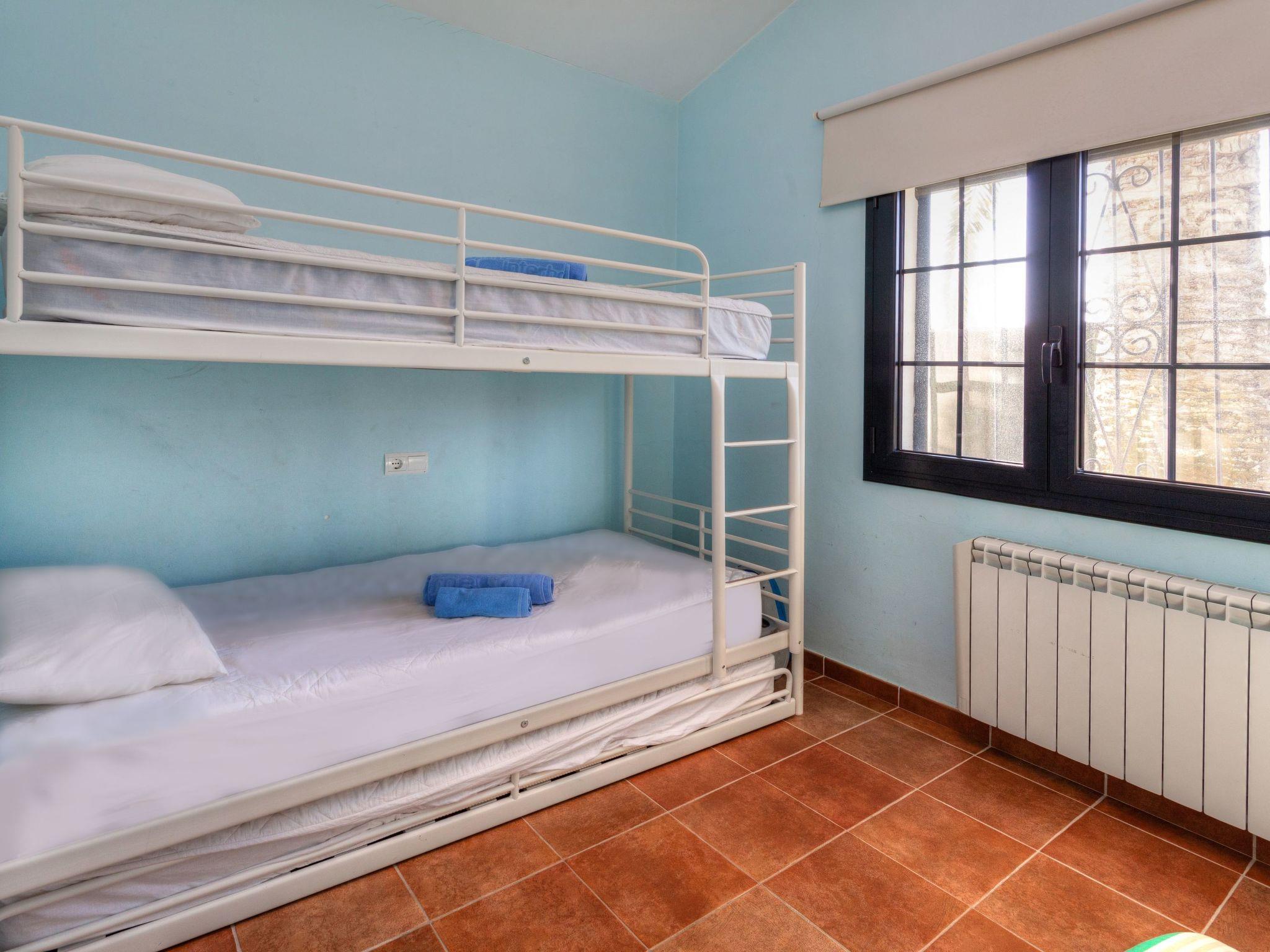 "Ducados Golf", 3-Zimmer-Villa 80 m2, im Erdgeschoss. Zweckmässig eingerichtet: Wohn-/Esszimmer mit Digital-TV und E-Heizung. Ausgang zum Gartensitzplatz. 1 Zimmer mit 1 franz. Bett (150 cm, Länge 190 cm), E-Heizung. 1 Zimmer mit 1 Bett (90 cm, Länge 190 cm), 1 x 2 Etagenbetten (90 cm, Länge 190 cm), E-Heizung. Küche (Backofen, Geschirrspüler, 3 Glaskeramikplatten, Toaster, Wasserkocher, Mikrowelle, Tiefkühler, elektrische Kaffeemaschine). Dusche/WC. E-Heizung. Gartensitzplatz 300 m2. Terrassenmöbel. Zur Verfügung: Waschmaschine, Bügeleisen, Kinderhochstuhl, Babybett bis 2 Jahre, Haartrockner. Internet (WLAN, gratis). Bitte beachten: TV nur ES. HUTG-053712 // Reg. Nr.: ESFCTU00001700700013710100000000000000000HUTG-0537129