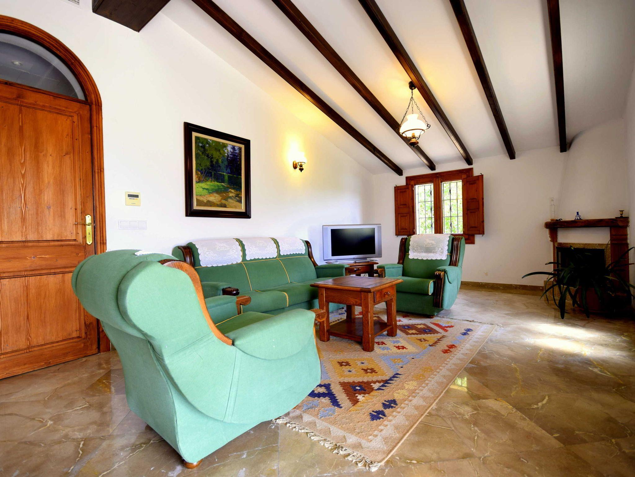 Das Wohnzimmer ist geräumig mit Klimaanlage und Kamin, sowie SAT-TV und WLAN natürlich.