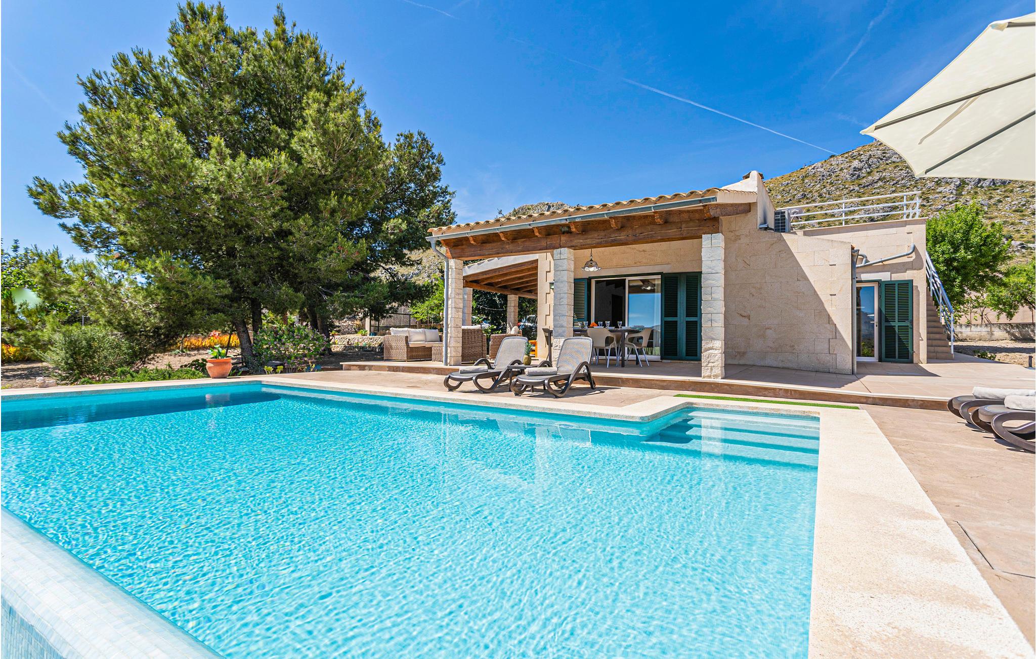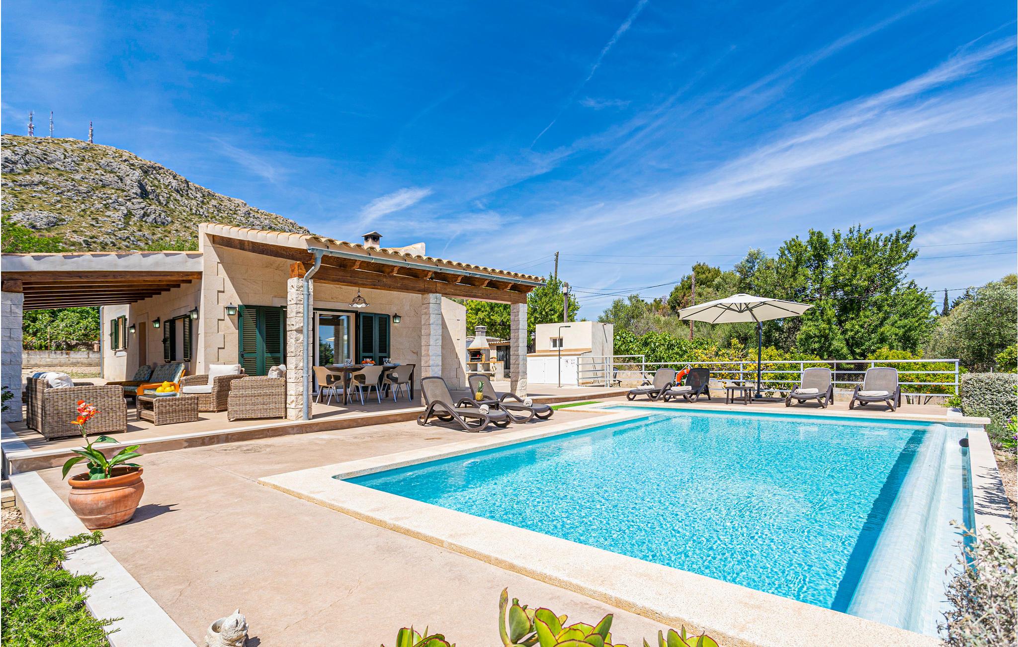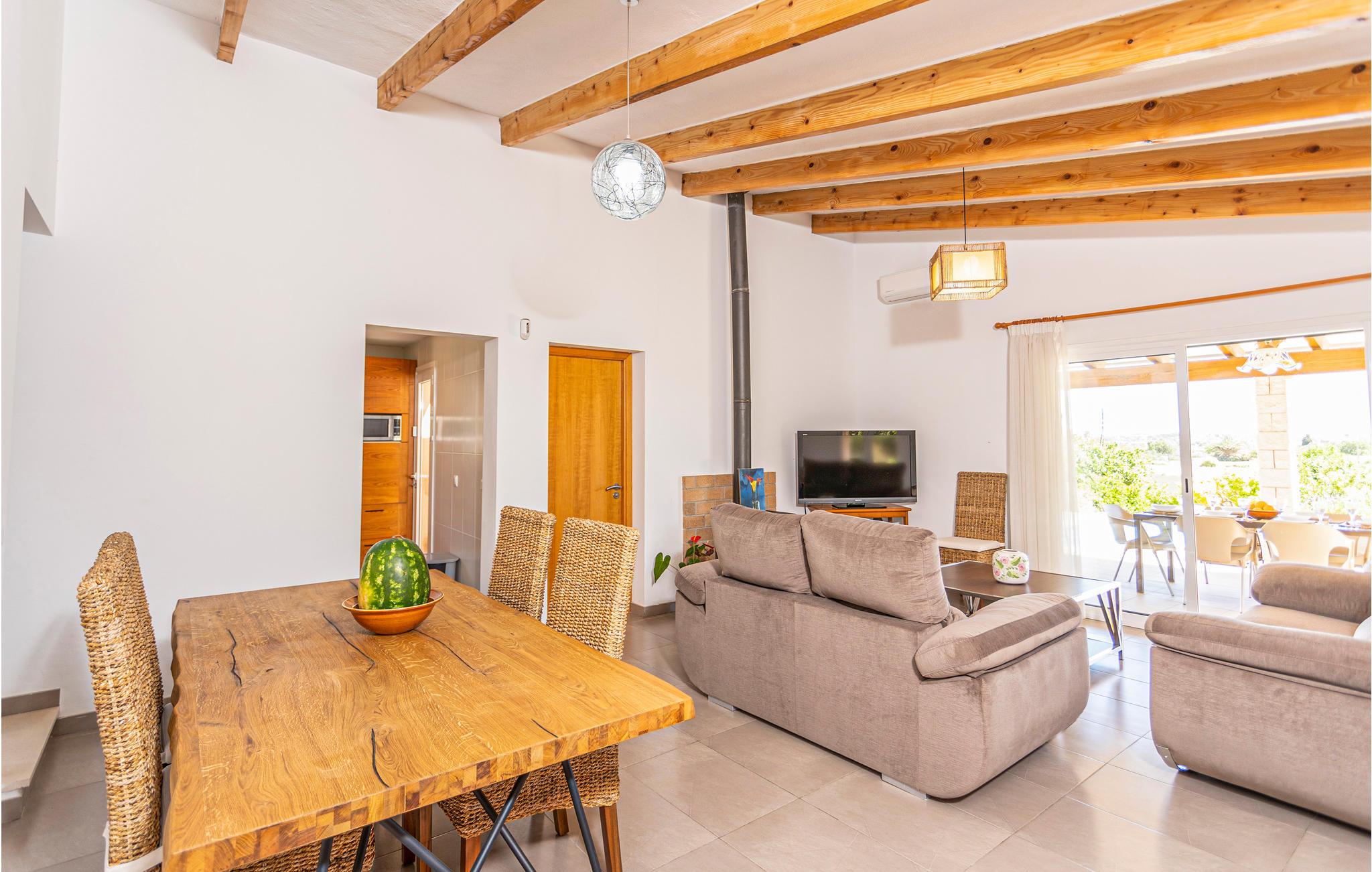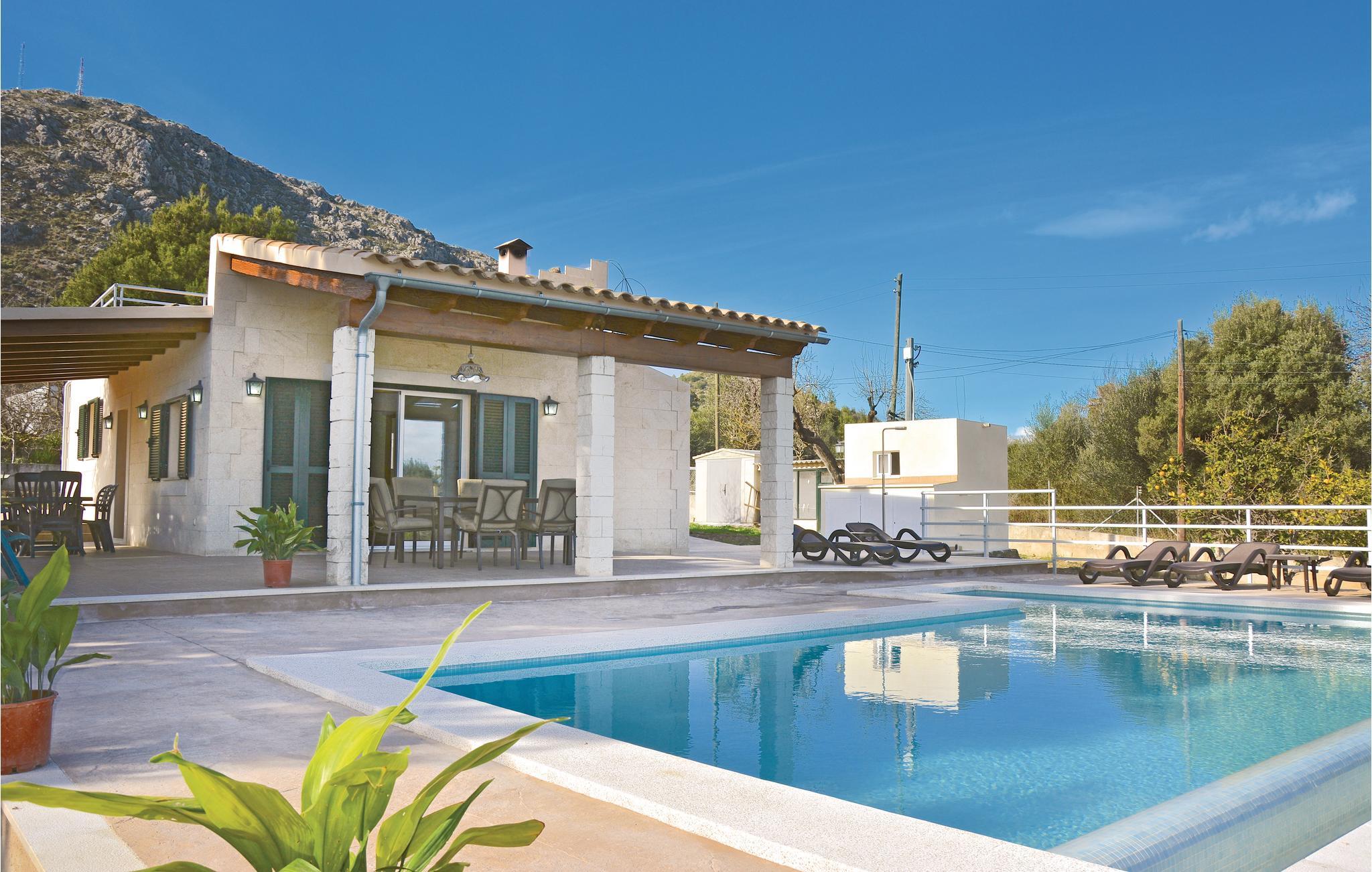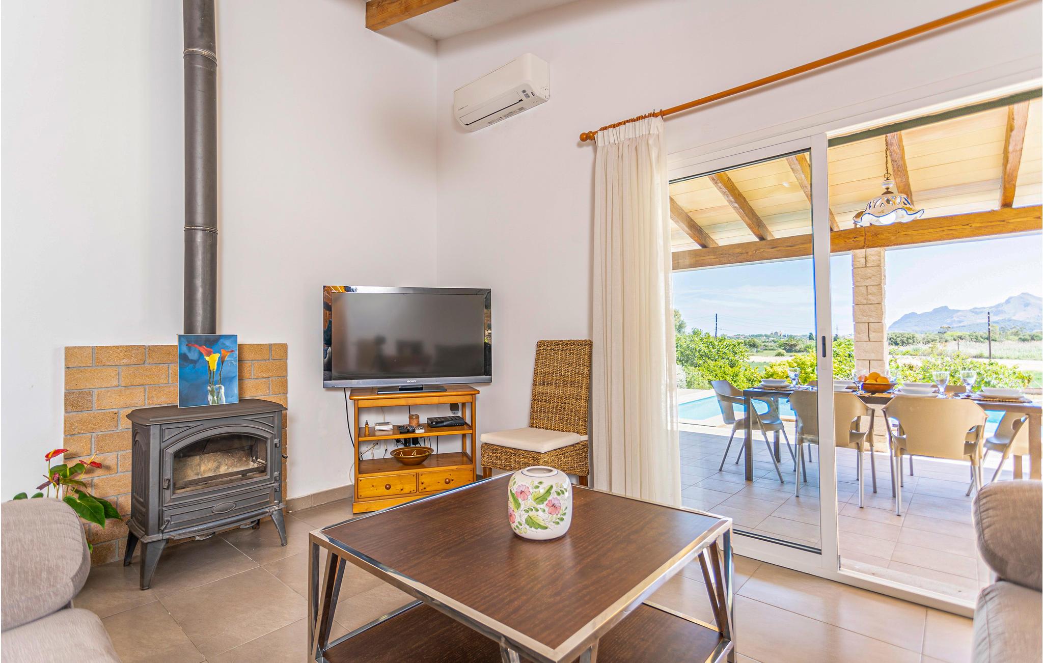 Eine praktische, ebenerdige Finca mit freier Sicht über die weiten Felder und auf die eindrucksvolle Bergkette der Tramuntana. Mit dieser schönen Weitsicht genießen Sie Ihre Mahlzeiten auf der gemütlichen Terrasse beim modernen Infinity-Pool. Dieser ist durch die schonende Osmose-Aufbereitung leicht salzhaltig und besonders hautfreundlich. Einer der längsten und schönsten Sandstrände der Insel liegt nur 2 km entfernt. Vorwiegend in der Hochsaison geht es dort recht quirlig zu und Sie finden viele Restaurants, Bars und Einkaufsmöglichkeiten. Der Eigentümer hält einige Hühner auf der Rückseite des Grundstücks. Gruppen (ausgenommen Familien und Pärchen ü30) auf Anfrage und mit Spezialkaution.