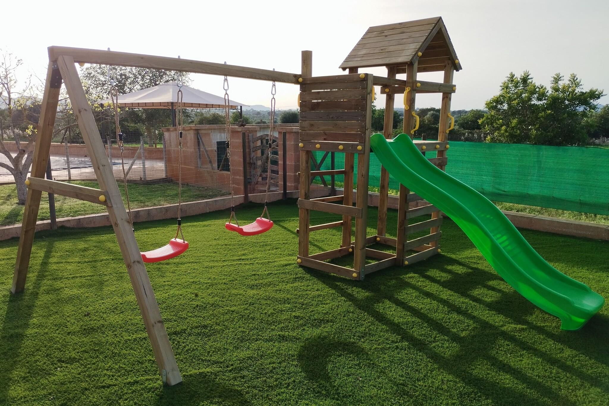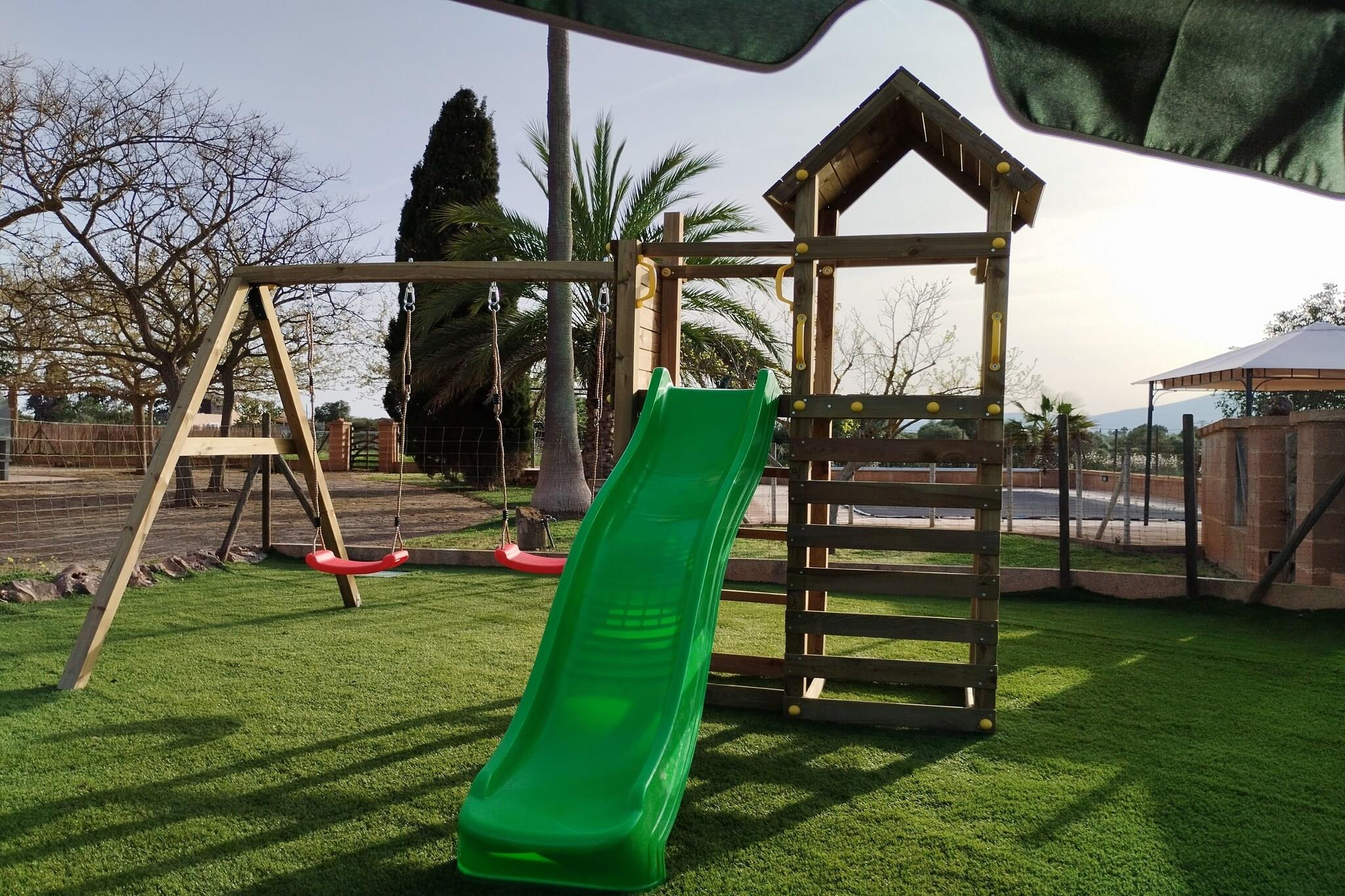 Außerhalb des Grundstücks befindet sich ein erfrischendes Salzwasserschwimmbad mit einer Größe von 8 x 4 Metern und einer Tiefe von 0,8 bis 1,9 Metern. Es ist auch eingezäunt, für die Sicherheit der kleinen Kinder. Außerdem gibt es eine Rasenfläche mit einem Fußballtor, ein Sofa, einen Spielplatz mit Schaukeln, einen Turm und eine Rutsche. Der Spielbereich für die Kleinen ist ebenfalls eingezäunt. Mehrere Veranden und Terrassen laden dazu ein, das gute mediterrane Klima zu genießen. Mit dem Grill können Sie leckeres gegrilltes Fleisch und Gemüse genießen. Das Grundstück ist eingezäunt und die Privatsphäre ist total. Innen ist das 2-stöckige Haus im traditionellen und gemütlichen Stil eingerichtet. Das große Wohn - Esszimmer ist mit SAT-TV, Klimaanlage mit Wärmepumpe, und einem großen Tisch für 6 Personen ausgestattet. Die separate Küche verfügt über einen Gasherd und Backofen. Im Erdgeschoss befindet sich ein Badezimmer mit Badewanne und elektrischem Heizkörper, wo sich auch die Waschmaschine, Bügeleisen und ein Bügelbrett befinden. Die 3 Schlafzimmer mit Klimaanlage mit Wärmepumpe, befinden sich im Dachgeschoss. Eines hat ein Doppelbett und ein eigenes Badezimmer mit Badewanne und elektrischem Heizkörper und die anderen 2 haben zwei Einzelbetten. Wir können Ihnen auch zwei Kinderbetten und zwei Hochstühle zur Verfügung stellen, wenn Sie mit Ihren Babys reisen. Schließlich finden Sie in der Unterkunft einen Wickeltisch, ein Bettschutzgitter für Kinder, 2 tragbare Ventilatoren, 1 elektrische Heizgeräte, Sonnenschirme für den Strand und Poolaufblasartikel. Das Objekt befindet sich am Stadtrand von Porto Cristo, neben der Straße, die diese Stadt mit Porto Cristo Novo sowie Cala Magrana und Cala Mandía verbindet, beides kleine Strände mit goldenem Sand und wunderschönem türkisfarbenem Wasser. In Porto Cristo finden Sie alle notwendigen Dienstleistungen für einen unabhängigen Aufenthalt sowie Geschäfte, Bars und Restaurants. Eine weitere Attraktion in der Umgebung sind die Drac-Höhlen, welche Sie unbedingt besuchen müssen. Der Kamin ist nur dekorativ. Eventuelle Nebenkosten müssen beim Anbieter nachgefragt werden. Haustiere sind verboten. Partys oder ähnliche Veranstaltungen sind nicht gestattet. Es gibt Freiluftparkplätze für 4 Autos. Entfernungen Strand: 1.1 km - Cala Anguila Flughafen: 60.8 km - Palma de Mallorca Golfplatz: 16.5 km - Club de Golf de Son Servera Ortsmitte: 2.0 km - Porto Cristo Bahnhof: 14.2 km - Manacor Bushaltestelle: 1.2 km - Porto Cristo Fähre: 68.6 km - Palma de Mallorca Krankenhaus: 2.9 km - Hospital de LLevant Die Gäste werden freundlich gebeten, sämtlichen Müll zu entsorgen und sicherzustellen, dass die Unterkunft vor der Abreise ordnungsgemäß aufgeräumt ist. Andernfalls werden 90 EURO von der Kaution einbehalten. Touristen Lizenz: ETV/3299Einheitsregister: ESFCTU00000702300101592000000000000000000000ETV/32997Auf den Balearen gibt es eine Touristensteuer, die Ecotasa genannt wird. Diese Steuer muss vom Gast bezahlt werden. Der zu zahlende Betrag beträgt zwischen 0.55EURO pro Nacht und Gast in der Nebensaison und 2.2EURO pro Nacht und Gast in der Hochsaison. Ab dem 9. Tag reduziert sich die Steuer um die Hälfte. Personen unter 16 Jahren sind davon ausgenommenHomerti - Central de Reservas CR/33