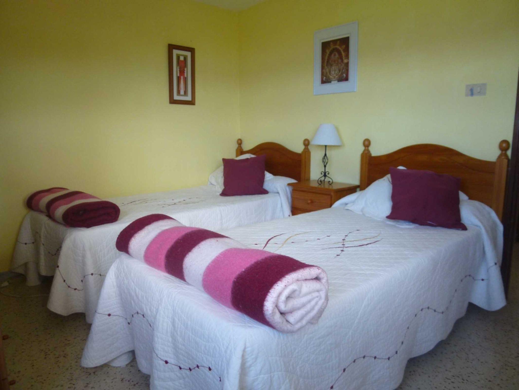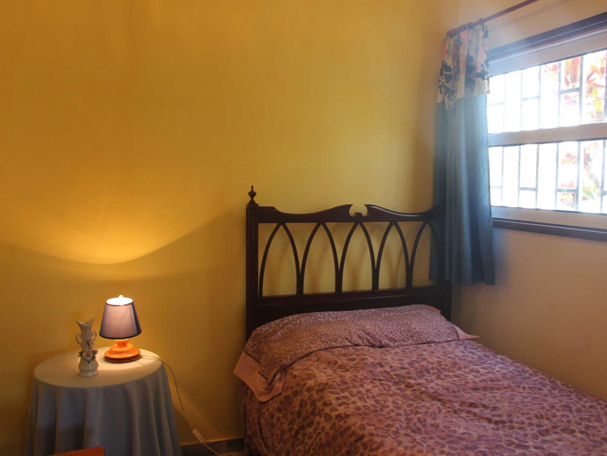 Direkt am Eingang des Hauses mit Blick in den Garten befindet sich ein kleines Schlafzimmer mit einem Einzelbett. Das Doppelschlafzimmer verfügt über 2 Einzelbetten und hat Meerblick.