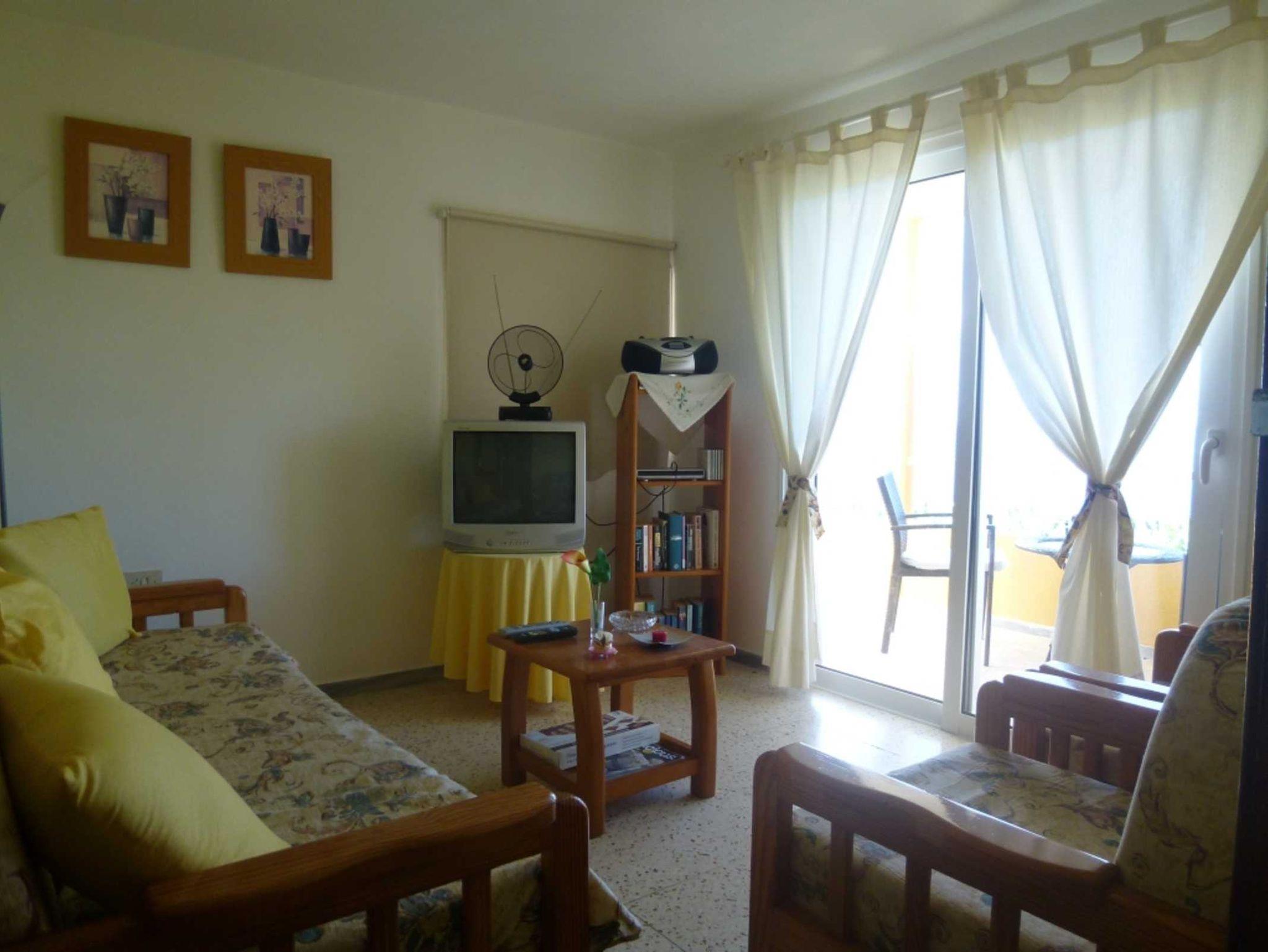 Das separate Wohnzimmer ist mit einem Sofa und 2 Sesseln sowie einem Fernseher (Sat TV ) und einer kleinen Musikanlage ausgestattet. Durch eine Schiebetür gelangt man direkt auf die überdachte Terrasse.