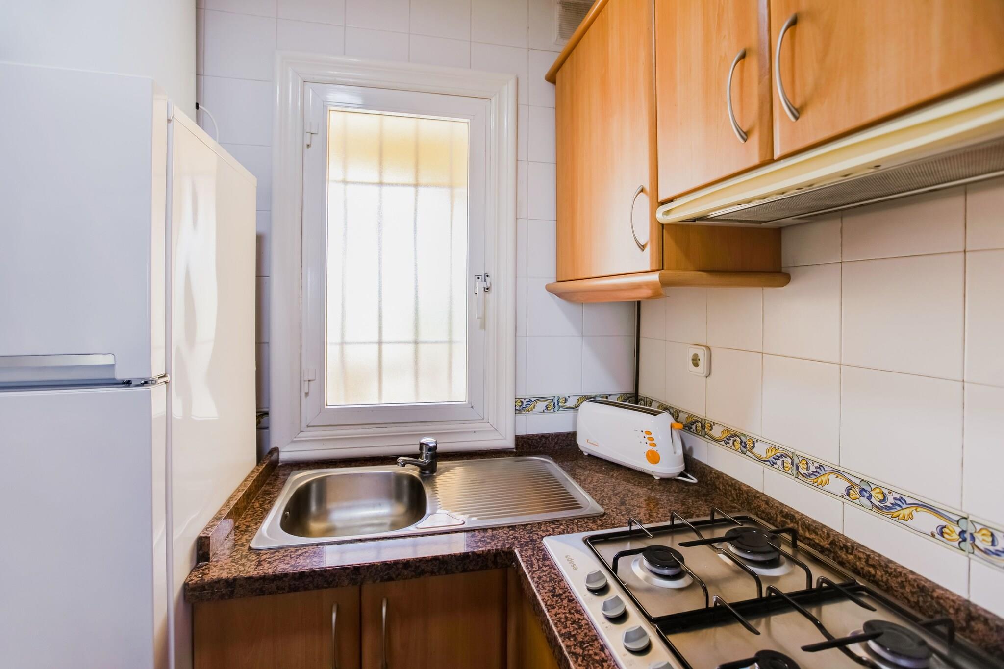 Dieses komfortable Erdgeschossapartment in Roquetas de Mar ist ideal für eine kleine Gruppe oder Familie mit bis zu vier Gästen. Nur 400 Meter vom Strand entfernt bietet es einfachen Zugang zu Sonne, Sand und Meer – perfekt für einen erholsamen Urlaub am Mittelmeer. Im Innenbereich finden Sie eine offene Küche, die komplett mit Herd, Toaster, Kaffeemaschine, Mikrowelle, Kühl-Gefrierkombination und Saftpresse ausgestattet ist – so wird die Zubereitung von Mahlzeiten zum Kinderspiel. Der Wohn- und Essbereich verfügt über eine Klimaanlage, ein Doppelschlafsofa und einen Esstisch für vier Personen. Das Schlafzimmer hat zwei Einzelbetten, während das Badezimmer über eine Badewanne oder Dusche, ein Waschbecken und eine Toilette verfügt. Im Außenbereich genießen Sie Ihre private Terrasse und Zugang zu gemeinschaftlich genutzten Gartenbereichen, einem Swimmingpool und einem Tennisplatz. Parkplätze stehen vor Ort zur Verfügung. Nur 30 km vom Flughafen Almería entfernt bietet dieses Apartment Komfort und Bequemlichkeit für Ihren Küstenurlaub.