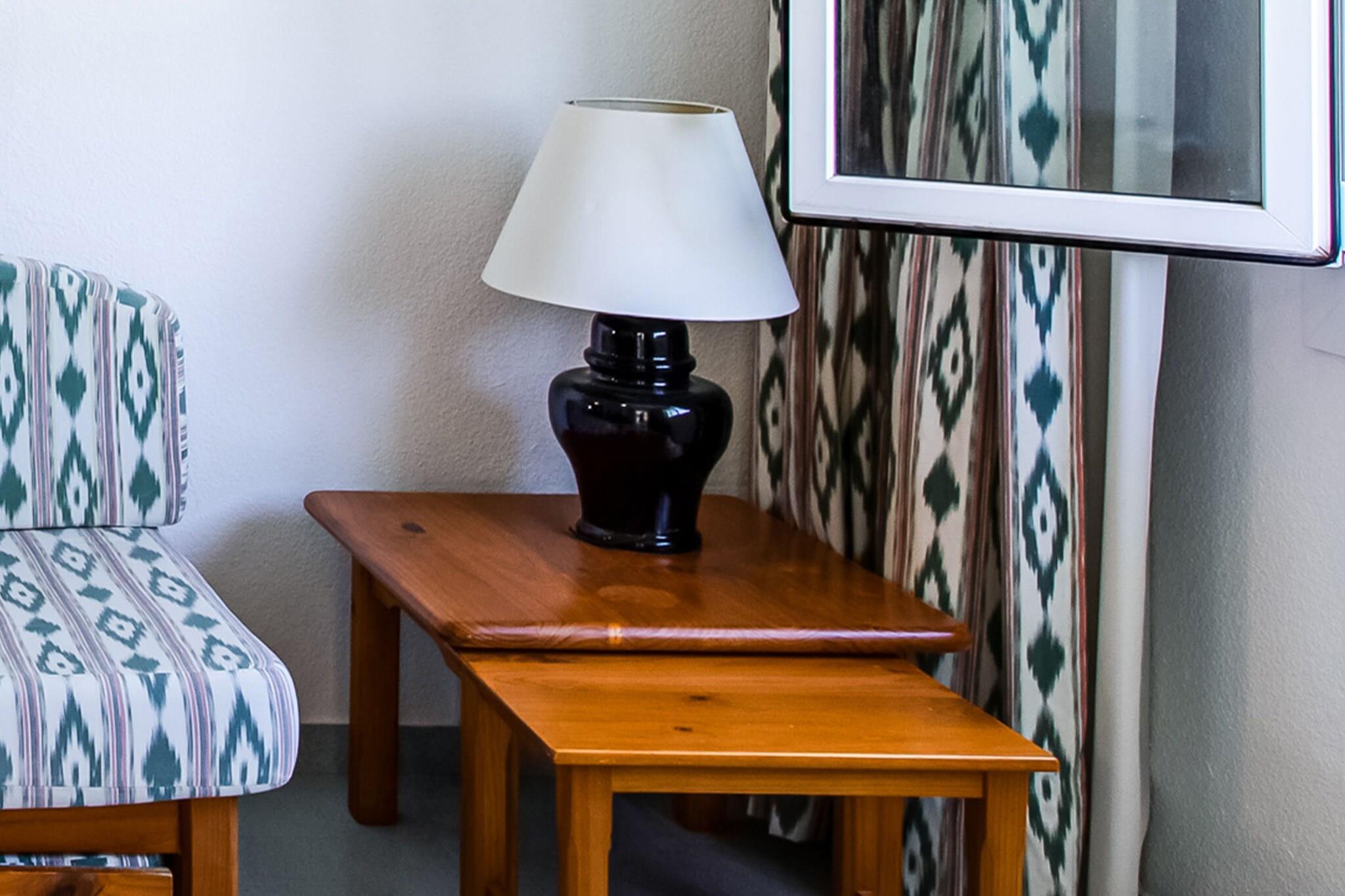 Parterre: (offene Küche(Kochplatte, Toaster, Kaffeemaschine, Mikrowelle, Kühl-/Gefrierkombination, Waschbecken, Zitruspresse), Wohn/Esszimmer(Doppelschlafcouch, Esstisch(4 Personen), Klimaanlage), Schlafzimmer(Einzelbett, Einzelbett), Badezimmer(Badewanne oder Dusche, Waschbecken, Toilette)) Terrasse(alleinige Nutzung), Garten(Gemeinschaftliche Nutzung mit anderen Gästen), Parkplatz, Pool(Gemeinschaftliche Nutzung mit anderen Gästen), Tennisplatz(Gemeinschaftliche Nutzung mit anderen Gästen)