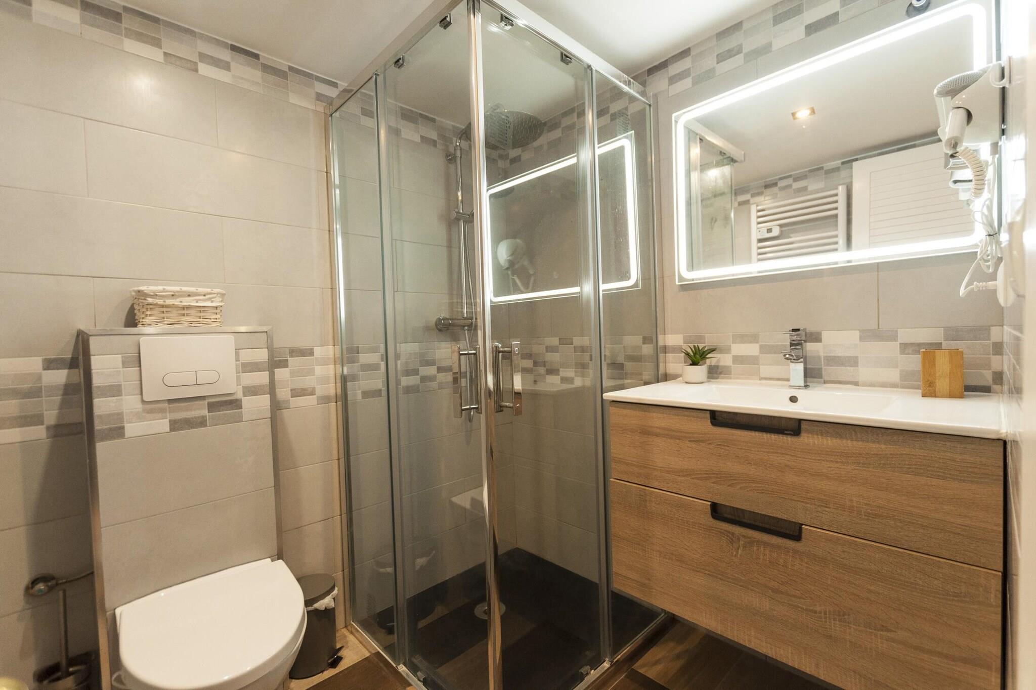 Willkommen in diesem gemütlichen und voll ausgestatteten 64 m² großen Apartment in Roses, das durchdacht für bis zu vier Gäste konzipiert ist. Dank der idealen Lage, nur 1 Meter vom Stadtzentrum entfernt, bietet diese Unterkunft bequemen Zugang zu lokalen Annehmlichkeiten und Sehenswürdigkeiten. Ein Supermarkt befindet sich nur 150 Meter entfernt, mehrere Restaurants erreichen Sie nach 250 Metern. Der wunderschöne Sandstrand Playa de la Punta ist nur 500 Meter entfernt und lädt zum Entspannen ein. Der Busbahnhof befindet sich ebenfalls nur 500 Meter vom Apartment entfernt und bietet so bequeme Transportmöglichkeiten. Familienspaß pur bietet der nur 3 km entfernte Wasserpark AQUABRAVA. Naturliebhaber kommen im nahegelegenen Naturpark Aiguamolls de L'Empordà, der 9 km vom Apartment entfernt liegt, voll auf ihre Kosten. Das Apartment verfügt über eine schöne, 14 m² große Terrasse, die zum Entspannen und Essen im Freien einlädt. Im Inneren genießen Sie ganzjährigen Komfort mit Klimaanlage und Wärmepumpenheizung sowie zwei Ventilatoren für warme Sommertage. Zur weiteren Ausstattung gehören eine Waschmaschine, ein Grill zum Kochen im Freien und WLAN, um immer in Verbindung zu bleiben. Entspannen Sie sich auf dem Fernseher mit Satellitenkanälen in Spanisch, Englisch, Deutsch und Französisch. Die gut ausgestattete Küchenzeile verfügt über ein Cerankochfeld, einen Kühlschrank, eine Mikrowelle, einen Backofen, einen Gefrierschrank und alle wichtigen Küchenutensilien. Kaffeemaschine, Toaster, Wasserkocher und Entsafter machen die Zubereitung Ihrer Mahlzeiten zum Kinderspiel. In einem lebhaften Viertel mit hervorragender Anbindung gelegen, ist dieses Apartment die ideale Wahl für Familien oder kleine Gruppen, die das charmante Städtchen Roses erkunden und gleichzeitig modernen Komfort genießen möchten. Ihr perfekter Kurzurlaub erwartet Sie!