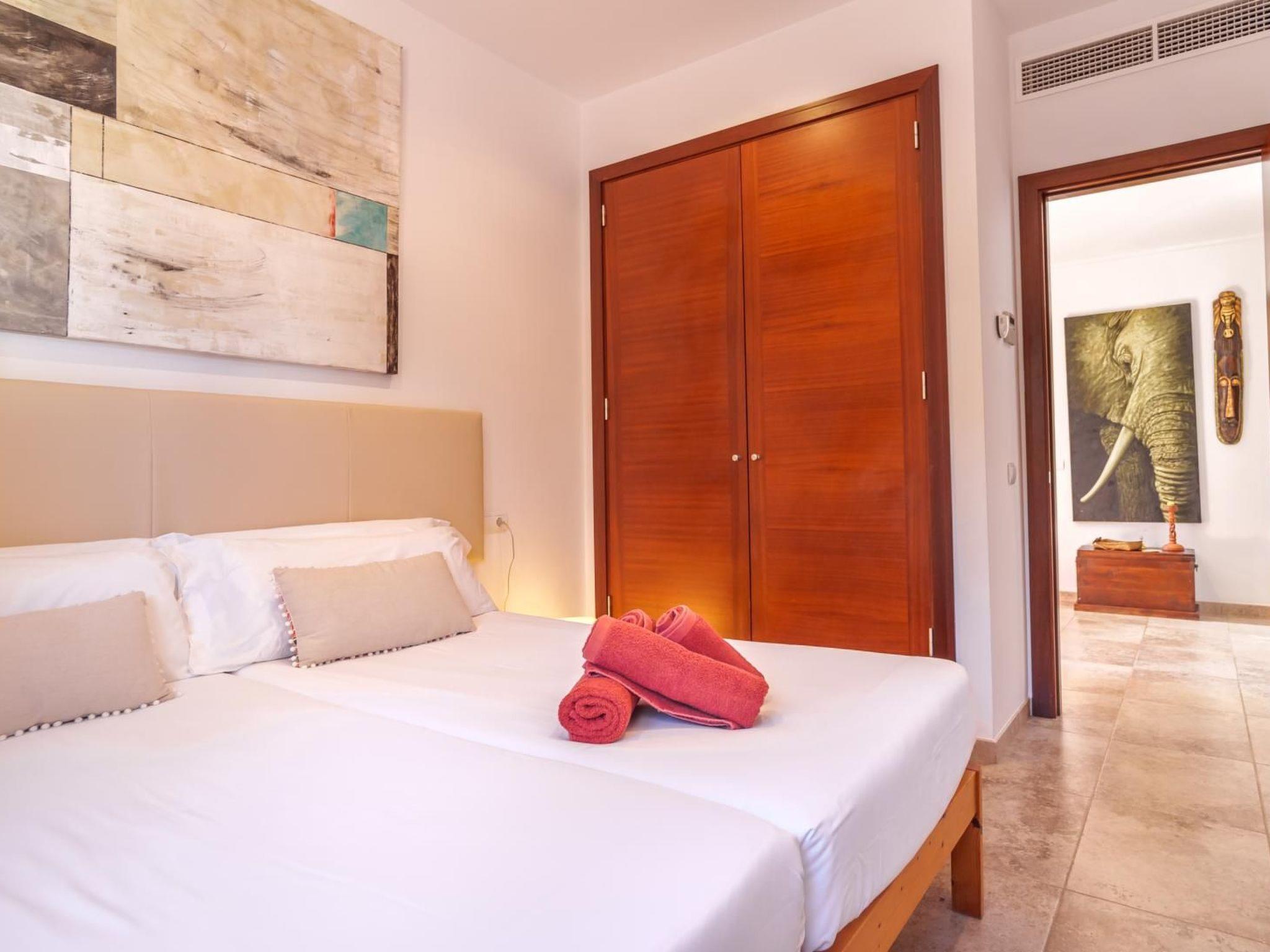 Die Villa bietet auf etwa 213 m² Wohnfläche auf zwei Etagen ein Wohnzimmer mit SAT-TV und Essbereich, eine voll ausgestattete Küche mit Geschirrspüler, 4 Schlafzimmer ( 2x Doppelbett, 2x Einzelbetten ) und 2 Bäder und somit genügend Platz für bis zu 8 Gäste. Zur Ausstattung gehören außerdem Wifi-Internet, eine zentrale Klimaanlage, eine Waschmaschine, ein Trockner sowie ein Babybett und Hochstuhl.