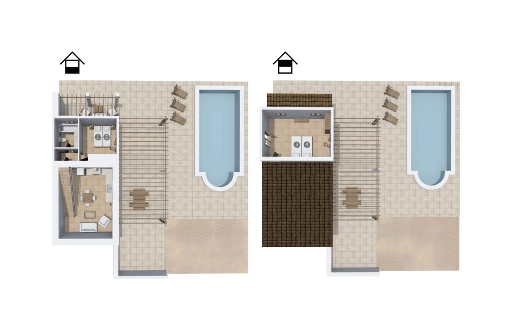 Auch das Innere des Hauses präsentiert ein einladendes Ambiente. Ein hohes und lichtdurchflutetes Wohn-/Esszimmer, gestaltet mit hellen und fröhlichen Farben und Möbeln, mit integrierter Küche bilden den Hauptwohnbereich. Besonders die erfrischende Farbe Grün präsentiert sich an verschiedenen Stellen als wiederkehrendes Element und verleiht dem ohnehin schon gemütlichen Flair eine zusätzliche harmonische Note. Hier finden Sie eine gemütliche Sofaecke, einen kleinen Esstisch für Mahlzeiten im Innenbereich sowie eine komplett ausgestattete, L-förmige Küche vor, die mit Toaster, Filterkaffeemaschine und Wasserkocher alles bietet, was Sie für den täglichen Bedarf benötigen. Was für ein Morgenglück: Eine aromatische Tasse Kaffee zubereiten, einfach aus der Tür treten und unter dem offenen, tiefblauen Himmel stehen. Eine attraktive Treppe führt in die erste Etage des Hauses und bietet zwei bezaubernde, romantische und moderne Schlafzimmer. Äußerst originelle Designelemente an den Kopfenden der Betten verleihen den Zimmern einen ganz individuellen und sehr stilvollen Charakter. Das zeitgenössische Design setzt sich konsequent im Badezimmer fort und bietet Tageslicht und eine hochwertige Ausstattung. Ein Bügeleisen und ein Haartrockner sind praktischerweise vorhanden und müssen nicht im Gepäck mitgeführt werden.
