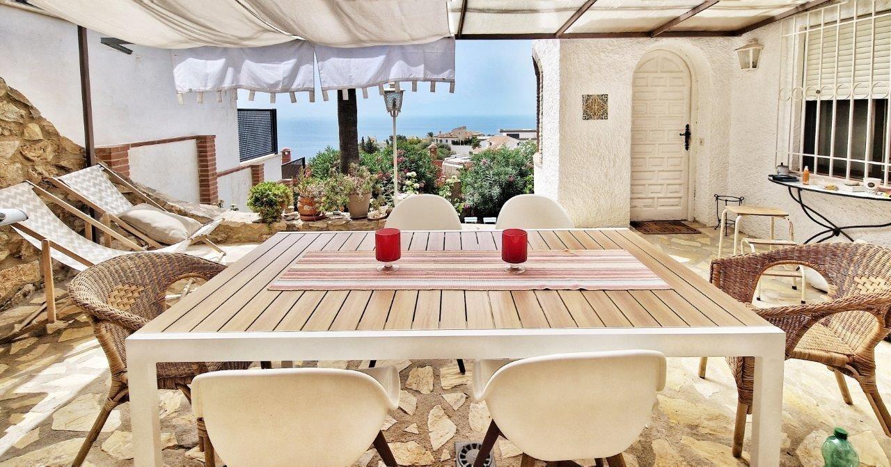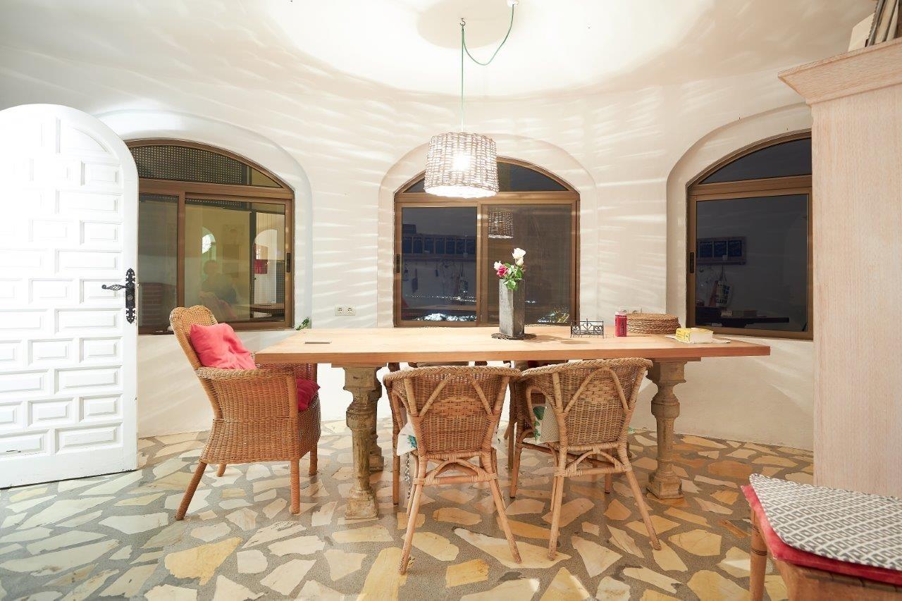 Im oberen Stockwerk befinden sich ein Esszimmer mit Meerblick und Sicht auf die Burg von Salobrena. Der Sonnenauf- und untergang begeistert uns von diesem Platz aus jeden Tag aufs Neue. Dem Gast steht im gesamten Haus kostenloses W-Lan zur Verfügung. Die offene Küche ist zwar klein, dafür aber modern und sehr individuell. Es gibt alle Geräte, die man in einer Küche erwartet. Der Salon mit offenem Kamin und Blick aufs Meer ist am Abend unser Fernsehzimmer. Das obere Bad bietet eine individuelle Badewanne, Dusche und WC, ebenfalls sehr originell . Wir nutzen eigentlich ganzjährig die Außendusche mit Meerblick und die Außentoilette. Außerdem gibt es oben ein Schlafzimmer mit Doppelbett 2x2m und ein weiteres Schlafzimmer mit 2 Einzelbetten je 0,90x2m