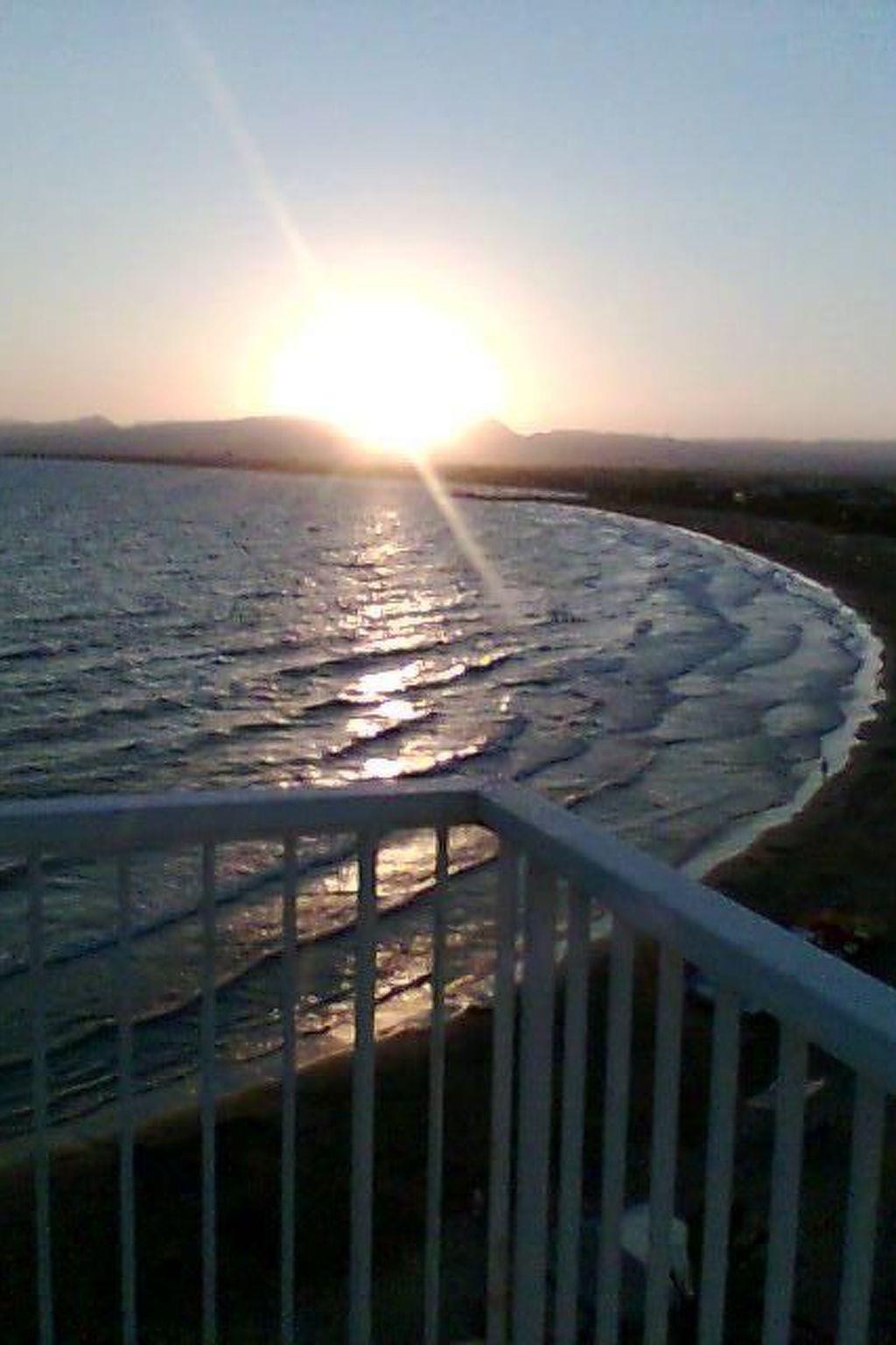 Im Außenbereich gibt es eine große Terrasse mit einer Fläche von 12 m² und tollem Blick auf das Meer. Dieser ist bei Sonnenuntergang besonders schön. Es gibt Gartenmöbel, Sonnenschutz und auch zwei Sonnenliegen. Durch den tollen Blick und die leichte Brise ist die Terrasse besonders angenehm.