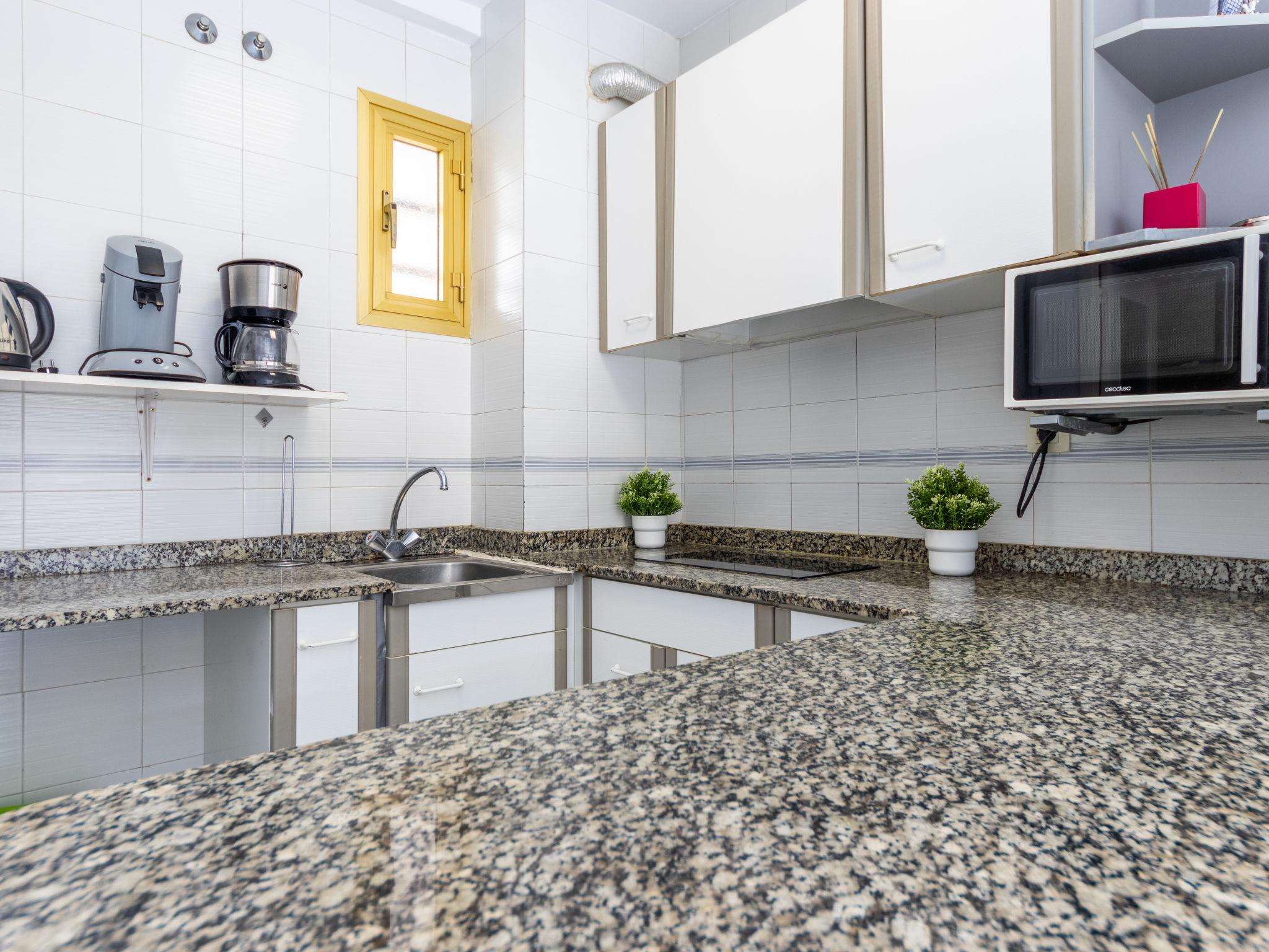 "Miramar Nautic", 2-Zimmer-Wohnung 45 m2 im 3. Stock. Hell, zweckmässig eingerichtet: Wohn-/Esszimmer mit 1 Doppeldiwanbett, Sat-TV, Klimaanlage und Warmluftheizung. Ausgang zum Balkon. 1 Zimmer mit 1 franz. Bett (140 cm, Länge 190 cm). Offene Küche (3 Glaskeramikplatten, Toaster, Mikrowelle, elektrische Kaffeemaschine). Dusche/WC. Heizung, Klimaanlage. Heizung nicht in allen Räumen. Balkonmöbel. Sicht auf das Meer. Zur Verfügung: Waschmaschine, Bügeleisen, Haartrockner. Internet (WLAN). Parkplatz Nr. 11 (extra), Höhe 180 cm, Breite 170 cm. HUTT-011866 // Reg. Nr.: ESFCTU00004302400035789100000000000000000000000118664