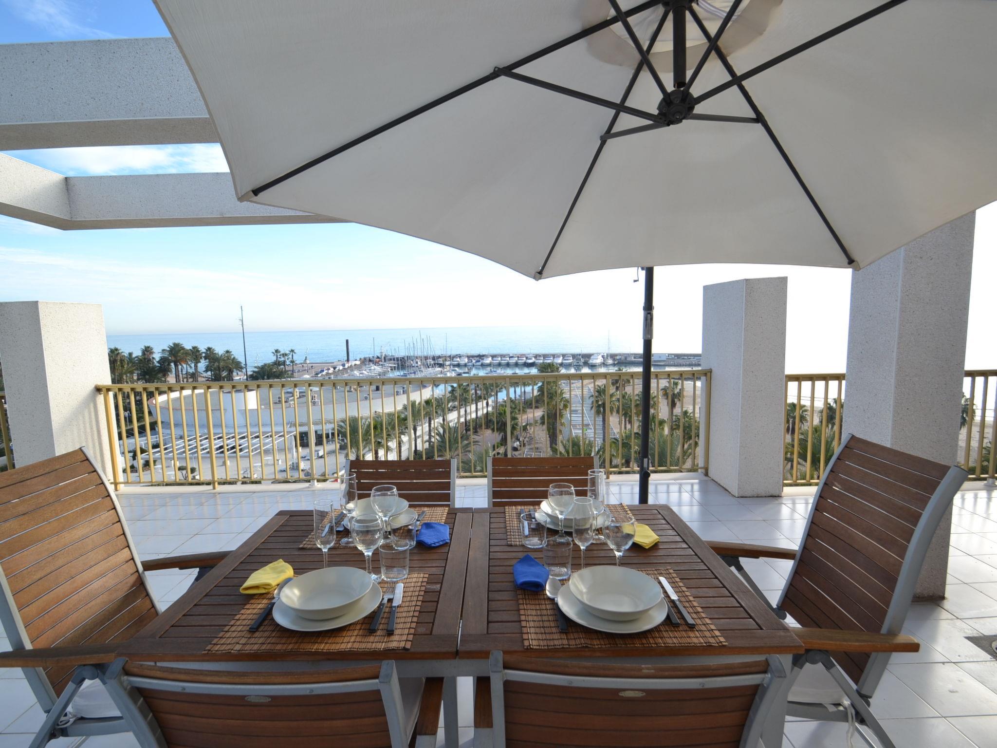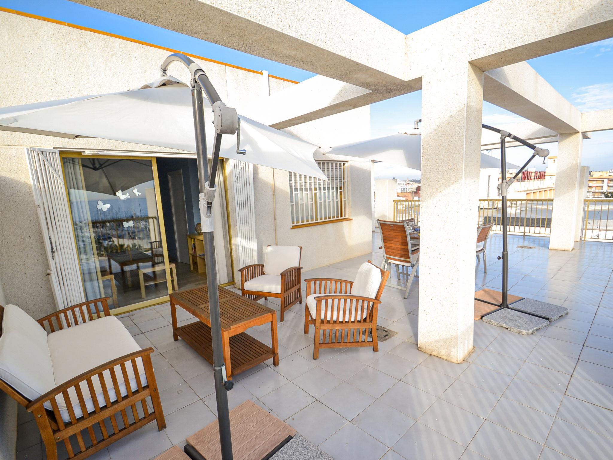 "Atico Miramar", 4-Zimmer-Attikawohnung 60 m2 im 6. Stock. Geräumig und hell, komfortabel und geschmackvoll eingerichtet: Wohn-/Esszimmer mit Esstisch, Digital-TV, Klimaanlage und Warmluftheizung. Ausgang zur Terrasse. 1 Zimmer mit 2 Betten (90 cm). 1 Zimmer mit 2 Betten (90 cm). 1 Zimmer mit 1 franz. Bett (150 cm, Länge 190 cm). Grosse Küche (Backofen, Geschirrspüler, 4 Glaskeramikplatten, Toaster, Wasserkocher, Mikrowelle, elektrische Kaffeemaschine, Kapseln für die Kaffeemaschine (Nespresso) extra). Ausgang zur Terrasse. 2 Bäder/WC. Heizung nicht in allen Räumen. Grosse Terrasse 130 m2. Terrassenmöbel, Gartengrill, Liegestühle. Schöne Sicht auf das Meer. Zur Verfügung: Waschmaschine, Bügeleisen, Haartrockner. Internet (WLAN, gratis). Garage Nr. 29, Höhe 185 cm, Breite 220 cm. Bitte beachten: Nichtraucher-Unterkunft, Parkplatz nur für kleine Wagen. HUTT-007190 // Reg. Nr.: ESFCTU00004302400035843000000000000000000HUTT-0071901