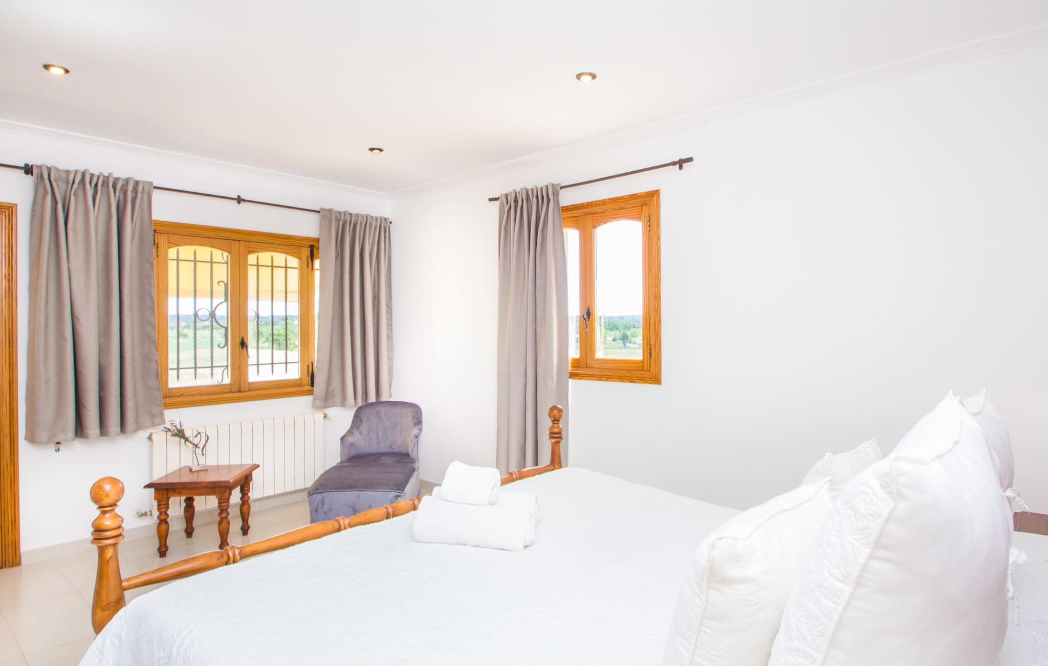 All diese Superlative gelten auch für das charmante Städtchen Campos, das 3,5 km entfernt liegt und die erste Anlaufstelle für Ihre täglichen Einkäufe ist. In beschaulichen Straßencafés können Sie sich Mandelkuchen und einen Cortado gönnen – und anschließend einen Ausflug nach Colònia de Sant Jordi unternehmen. Das ehemalige Fischerdorf liegt direkt neben dem kilometerlangen Strand Es Trenc, der mit seinem weißen Sand malerische Strandtage bietet. Ob Sie die pulsierende Inselhauptstadt Palma besuchen, um das vielfältige Kulturangebot zu nutzen, oder mit dem Mietwagen die attraktive Ostküste erkunden, die einfach nur so wimmelt von Highlights wie den eine halbe Stunde entfernten Buchten von Cales de Mallorca – rein Abends können Sie mit den Erinnerungen an Ihre fantastischen Erlebnisse in Ihre herrlich ruhige Villa zurückkehren.