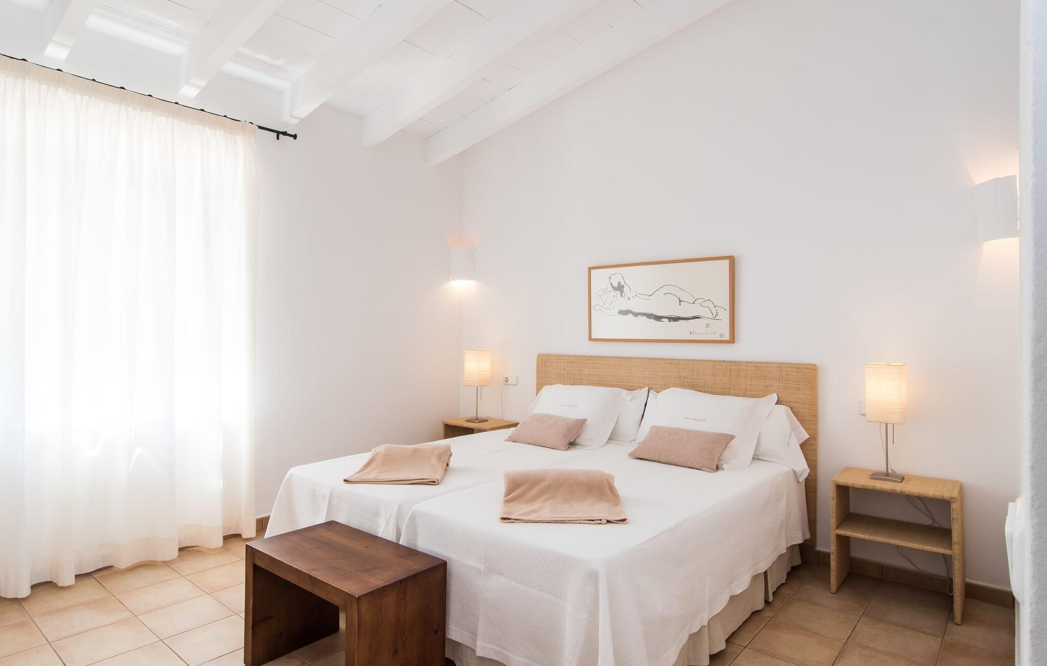 So viel Charme! Wenn die Bougainvilleen blühen, scheint das über 200 Jahre alte Haupthaus von „Son Cappelot“ im wahrsten Sinne des Wortes zu leuchten. Dieses renovierte Landgut verfügt über mehr als 200.000 m² Land und fünf Ferienwohnungen mit jeweils ein bis zwei Schlafzimmern – es ist das perfekte Urlaubsziel im Agrartourismus für pure Ruhe und Entspannung! Wenn Sie zwischen den duftenden Apfel-, Zitronen-, Oliven- und Mandelbäumen spazieren gehen und die in der Nähe grasenden Schafherden beobachten, neigen Sie natürlich dazu, einen Gang zurückzuschalten und neue Energie zu tanken. Ein herrlicher 16 m langer Pool – geschützt durch ein Kinderschutztor – liegt wie ein eigenes kleines Meer direkt vor der Haustür, Liegen unter Sonnenschirmen stehen allen Gästen kostenlos zur Verfügung. Tische und Stühle auf der teilweise überdachten Gemeinschaftsterrasse, mit Blumen geschmückte Nischen und Ecken sowie die Lounge im Inneren mit angeschlossenem Frühstücksraum (für kühle Tage) bieten reichlich Gelegenheit, mit anderen Gästen ins Gespräch zu kommen, sich auszuruhen usw Ziehen Sie sich mit einem guten Buch oder Ihrer Yogamatte in die Natur zurück. Und wenn Sie Ihren Mietwagen auf dem Anwesen stehen lassen möchten, sind es nur 10 Minuten mit dem Fahrrad oder ein halbstündiger Spaziergang in die Stadt, wo Sie mehrere nette Cafés zum Besuchen finden.