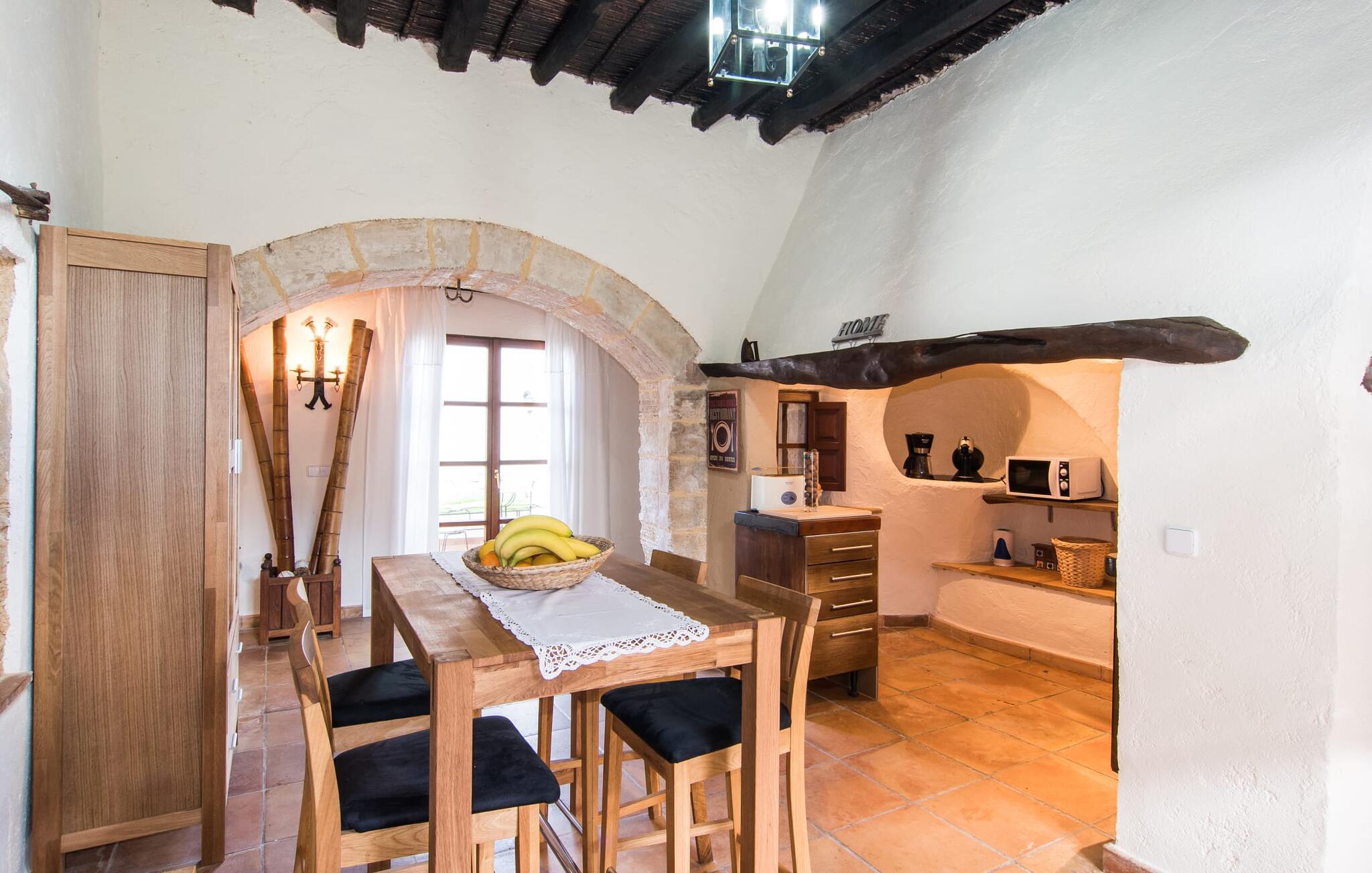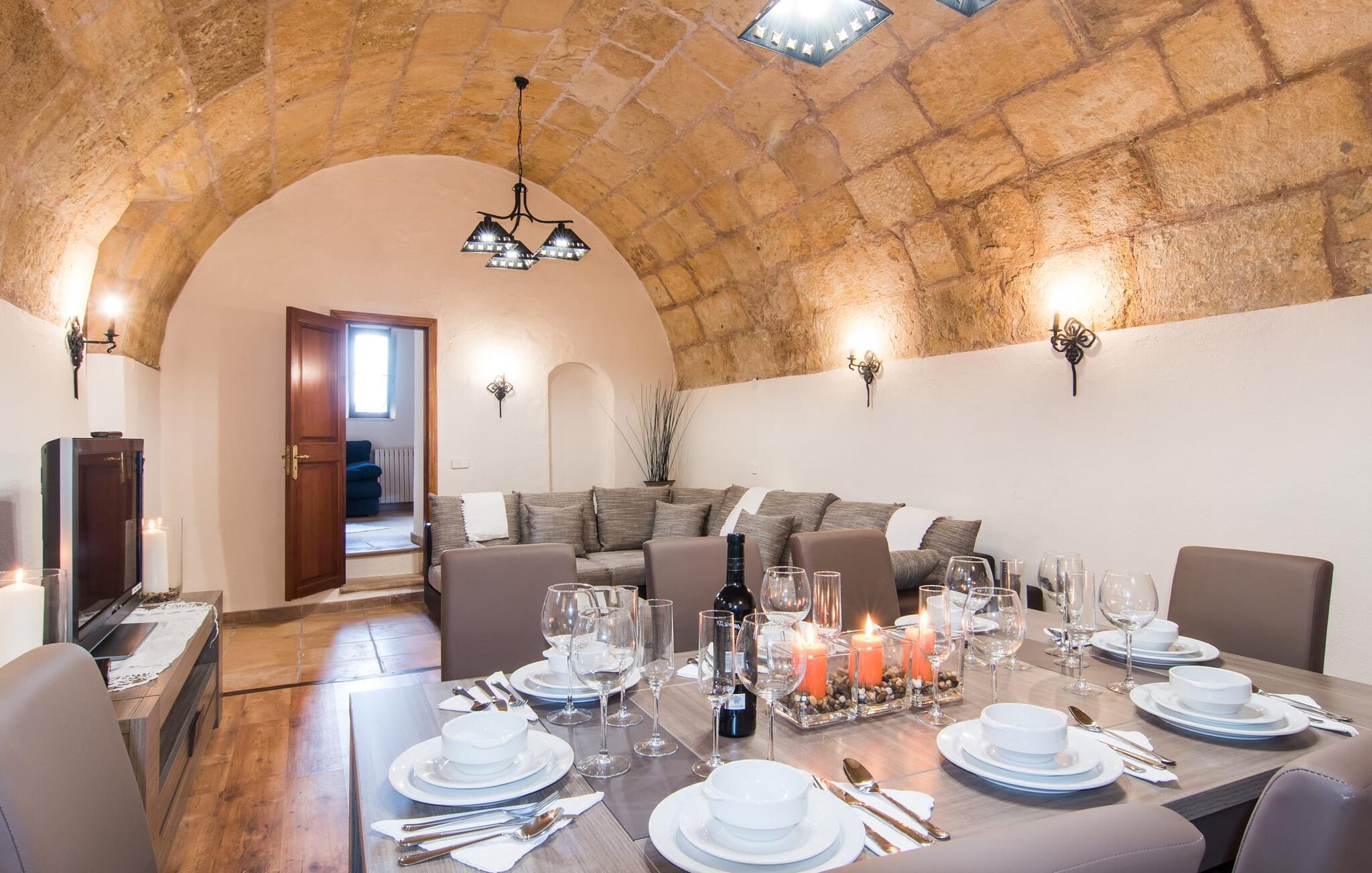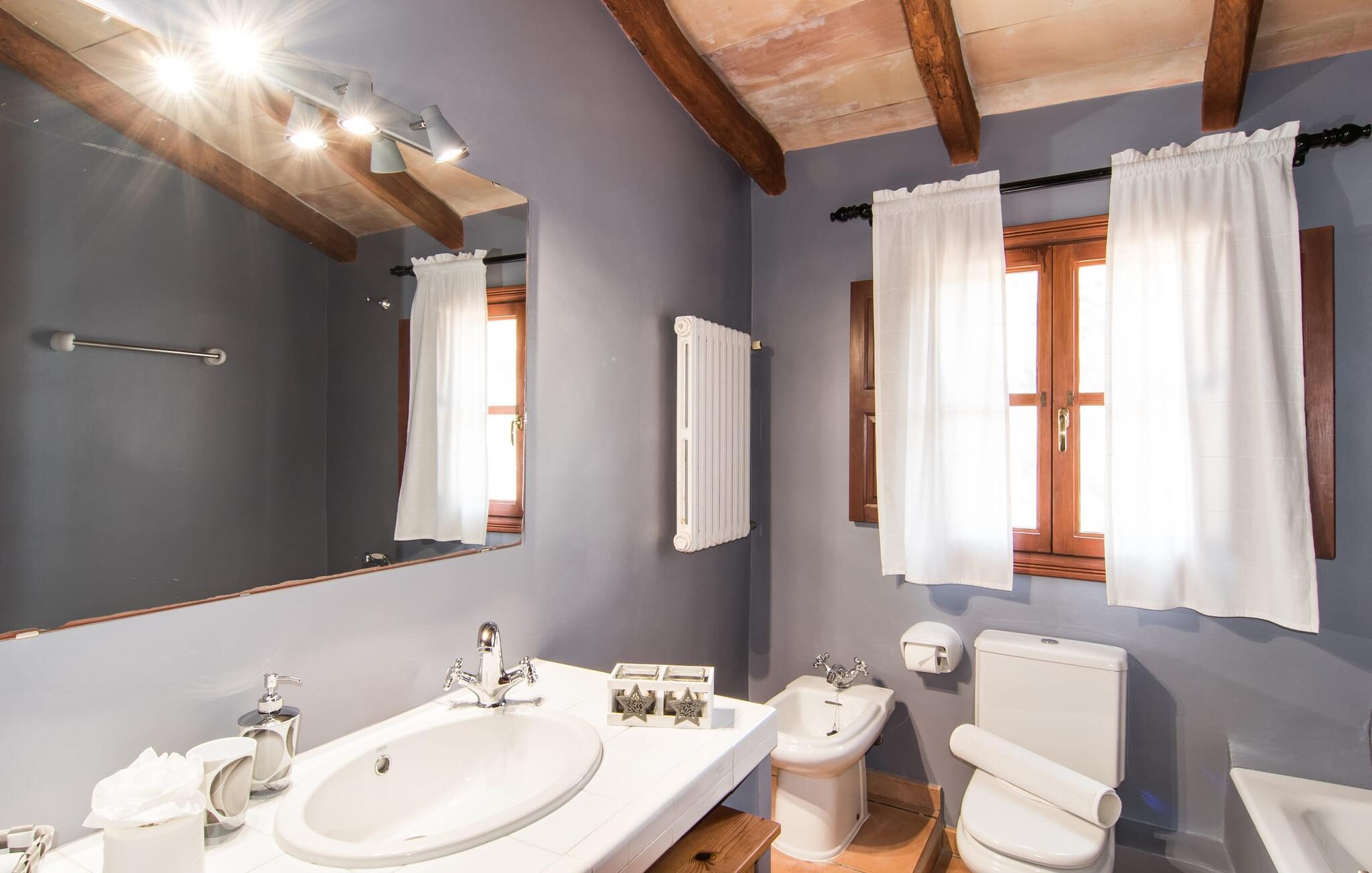 Allerdings sollte es nicht nur der Einbruch der Dunkelheit sein, der Sie in das fantastische Haus lockt. Auch wenn die authentischen Wände einen Hauch von antikem Charme versprühen, ist das Innere der Villa voller moderner Details, die gekonnt mit der rustikalen Atmosphäre der Räume interagieren. Sichtbares Mauerwerk, weiß getünchte Wände, dunkle Dachbalken, gewölbte Decken, Split-Levels, offene Galerien mit gemütlichen Sitzecken und kleine Nischen warten nur darauf, entdeckt zu werden. Alles in diesem Haus ist auf Komfort ausgerichtet und bietet gleichzeitig moderne Einrichtungen im schönen Wohn- und Esszimmer. Die Küche wurde der architektonischen Situation angepasst und in hübschen kleinen Nischen untergebracht. Die moderne, voll ausgestattete, elegante Küche im angesagten Landhausstil überzeugt ebenso wie die moderne Sitzecke, in der Hocker zum Entspannen einladen, während Sie Ihren Morgenkaffee schlürfen und den Tag langsam beginnen lassen. Vielleicht sogar, während Ihre Mitreisenden noch eine erholsame Nacht in einem der romantischen Schlafzimmer genießen, die bis zu zehn Urlaubern viel Platz in gemütlichen Zimmern bieten, die entweder mit einem Doppelbett oder zwei Einzelbetten ausgestattet sind (Bettgrößen variieren zwischen 1,80, 1,50 und ...). je 2 x 0,90 m). Da das Haus außerdem über fünf farbenfrohe Dusch- und Badezimmer, davon drei en-suite, sowie zwei zusätzliche Gäste-WCs verfügt, ist Ihnen absolute Unabhängigkeit garantiert. Sie allein entscheiden, wann Sie Ihren Tag beginnen – ob gemeinsam oder zu unterschiedlichen Zeiten. Langschläfer finden hier ebenso viel Ruhe wie Frühaufsteher, die vielleicht den Vormittag damit verbringen möchten, die Umgebung von Capdepera zu erkunden.
