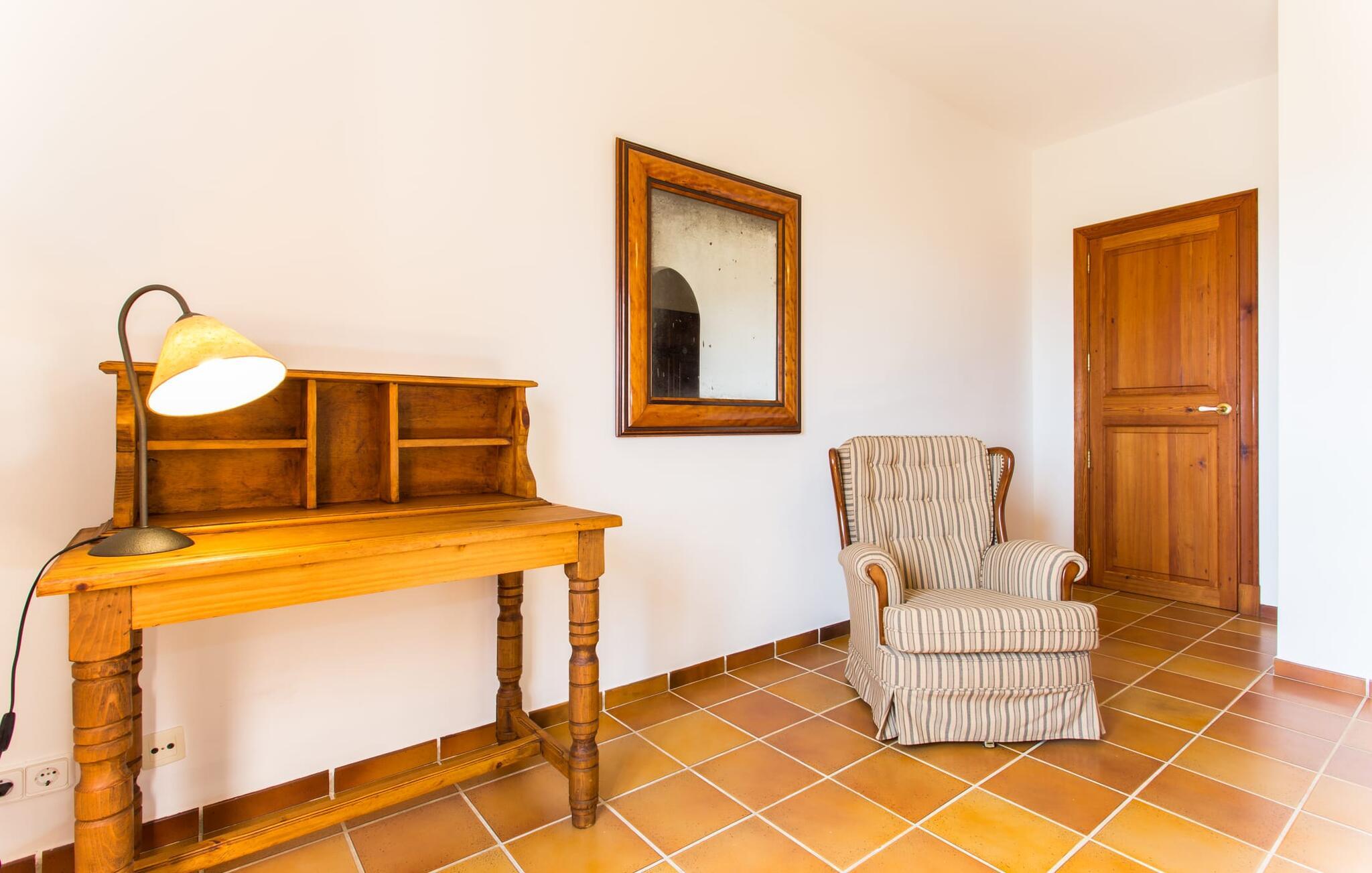 Das zweigeschossige Haus bietet auf einer Fläche von 180 m² viel Platz für individuelle Bedürfnisse und umfassenden Genuss. Hübsche Gemälde und traditionelle Stickereien kombiniert mit klassischen Möbeln schaffen ein persönliches und gemütliches Ambiente. Im Erdgeschoss des Hauses befinden sich der große massive Wohn-/Essbereich und die geräumige Küche. Von allen Fenstern des Wohnraumes aus können Sie bis zum Meer blicken! Ebenso verlockend ist es, sich in einen der bequemen Sessel oder auf das Sofa zurückzuziehen, um ein spannendes Buch zu lesen, einen unterhaltsamen Film anzusehen oder an kühlen Abenden die Beine vor dem wohlig warmen Kaminofen zu vertreten. Die typisch mallorquinische Küche verfügt über alle Annehmlichkeiten, die Sie für einen entspannten Selbstversorgerurlaub benötigen, darunter ein 5-Flammen-Gasherd, Backofen, Geschirrspüler, eine große Kühl-/Kühlkombination, Doppelspüle, Mikrowelle, Kaffeemaschine, Wasserkocher und Toaster. Sollten Sie Lust haben, für eine große Gruppe von Gästen zu kochen, bietet die zweite Küche die perfekten Voraussetzungen dafür. Vielleicht können Sie daraus einen Kochwettbewerb oder eine Kochveranstaltung machen? Ebenfalls auf dieser Etage befindet sich das praktische Gästebad mit eingemauertem Waschbecken. Im Obergeschoss befinden sich die drei großen Schlafzimmer mit Meerblick (zwei mit Doppelbetten, eines mit Einzelbetten) und das Badezimmer mit Doppelwaschtisch, Bidet und ebenerdiger Dusche. Sessel und Schaukelstühle bieten zusätzliche Orte, an denen Sie die Atmosphäre des Hauses genießen können.