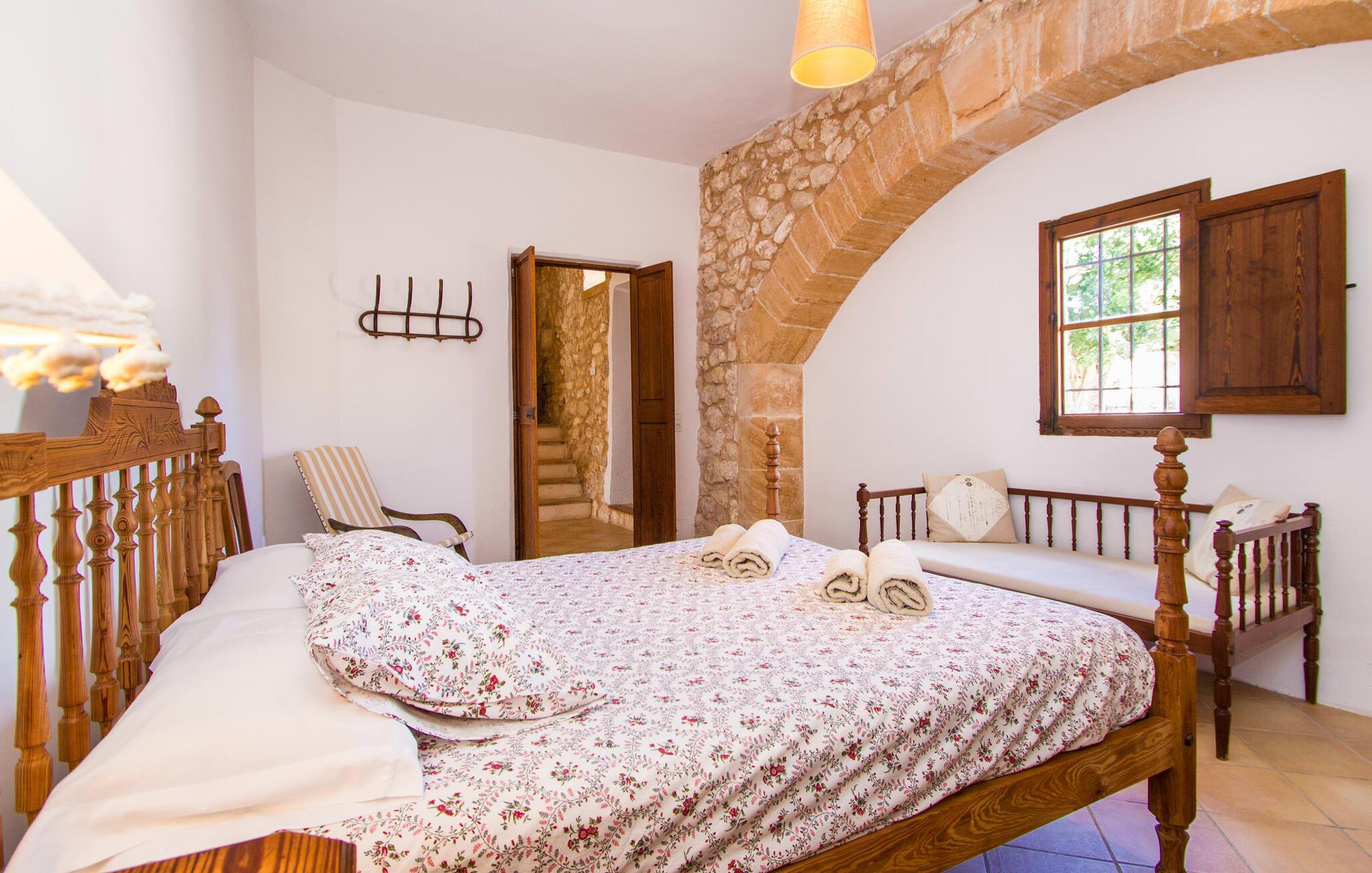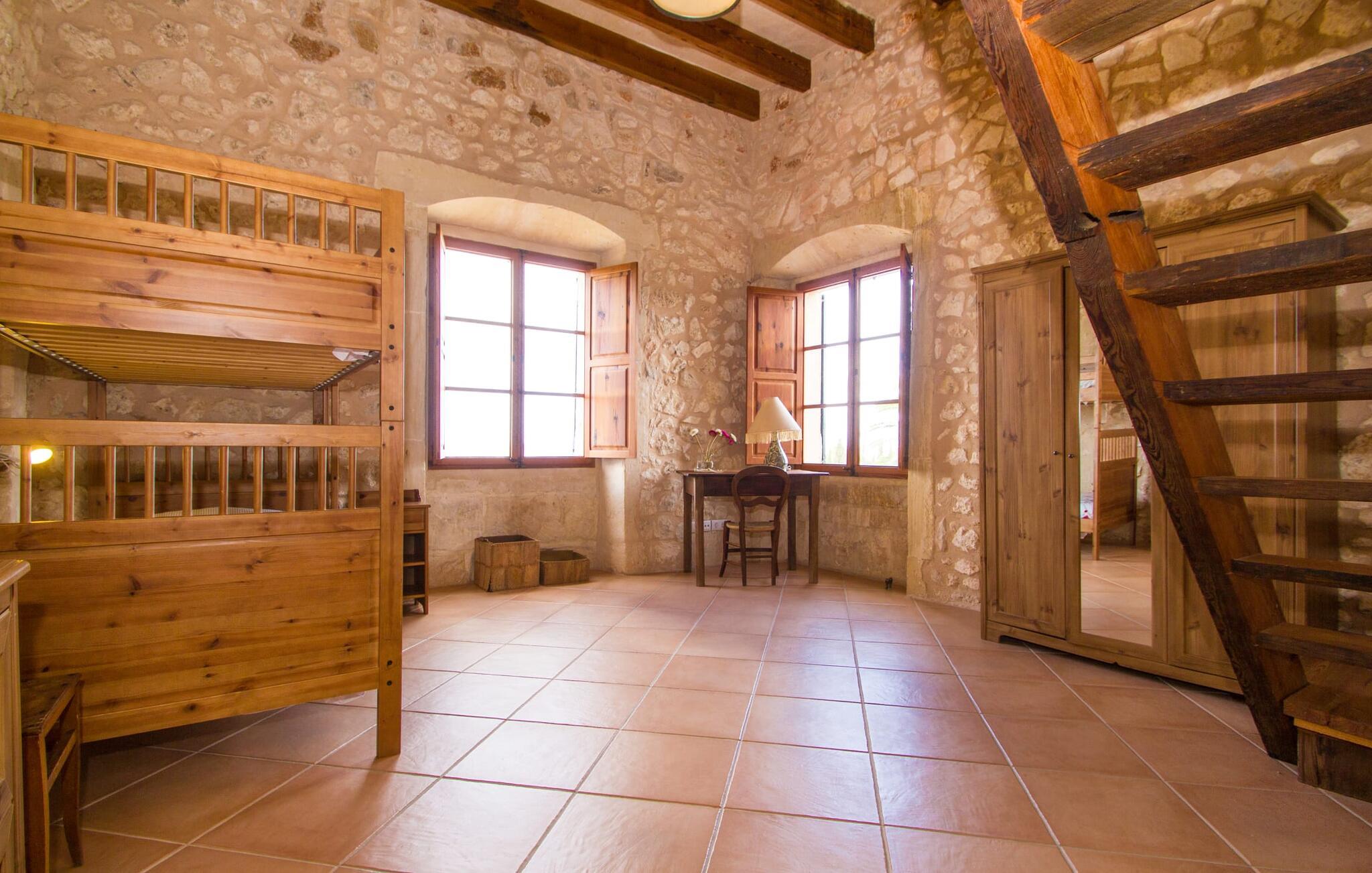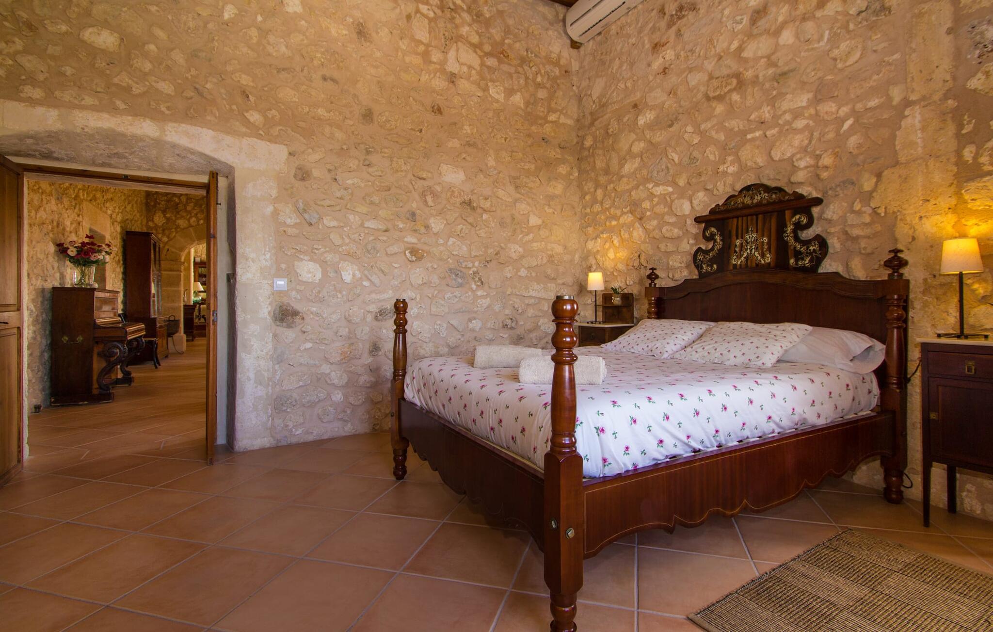 Die Eigentümer von „Son Mas Vell“ haben einige Jahre damit verbracht, es authentisch zu renovieren und liebevoll zu restaurieren: das rustikalere Erdgeschoss, zweigeteilt mit Türen zum Pool und Garten, und das offenere, elegante Obergeschoss mit Balkonterrasse. Wenn diese Wände sprechen könnten ... Vielleicht würden sie in Ihren Träumen zu Ihnen sprechen, wenn Sie sich in eines der sechs königlichen Doppelzimmer zurückziehen (vier im Obergeschoss, zusammen mit zwei Badezimmern, zwei im Erdgeschoss, jedes mit eigenem Bad). Badezimmer). Kleine Fenster, hohe Decken, Massivholzrahmen, eingravierte Wappen, eingelassene Nischen und kunstvolle Schränke; Sie alle haben ihre eigene Geschichte zu erzählen. Für fantasievolle Kinder ist das ganze Haus ein Abenteuerspielplatz.