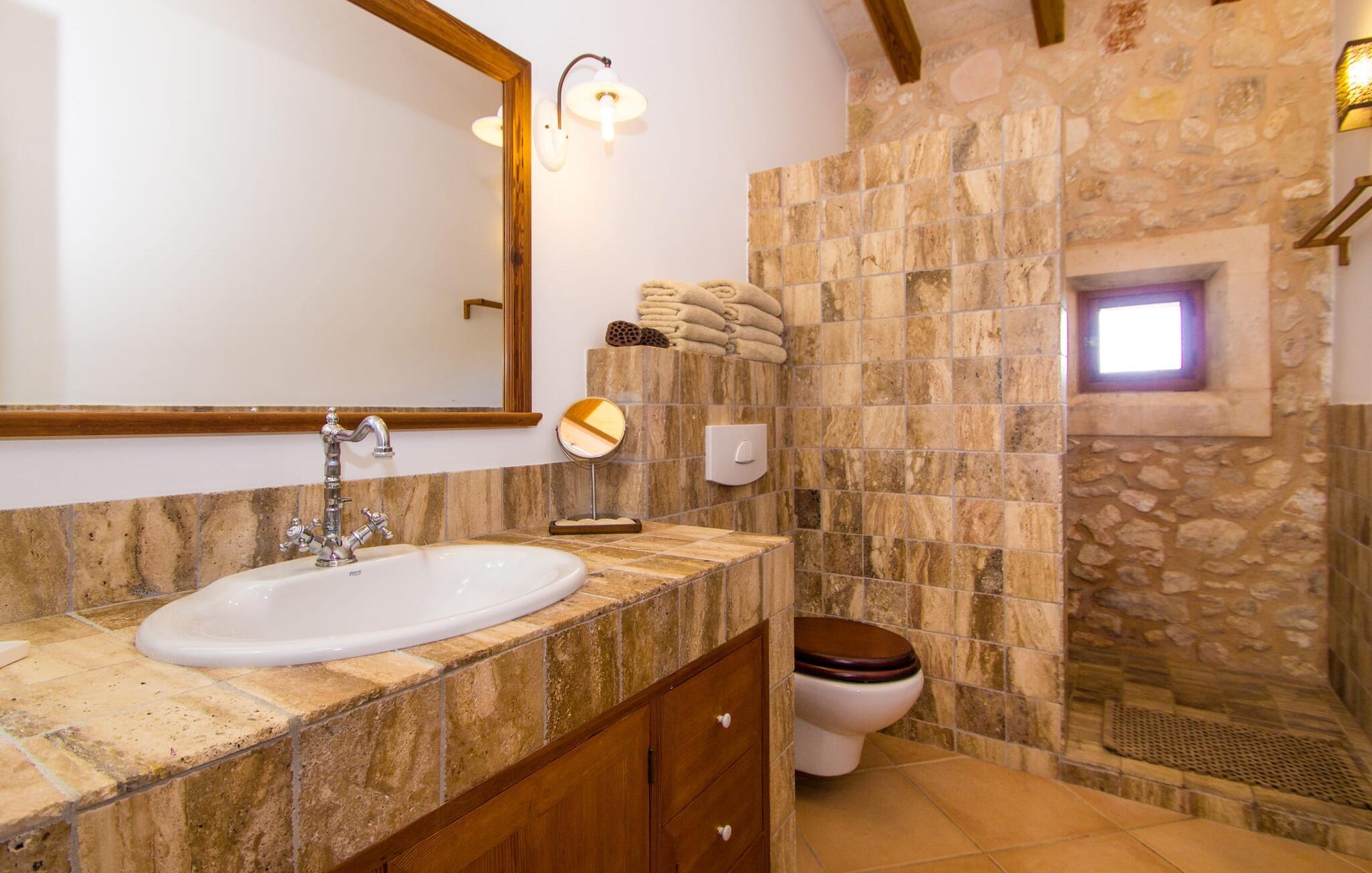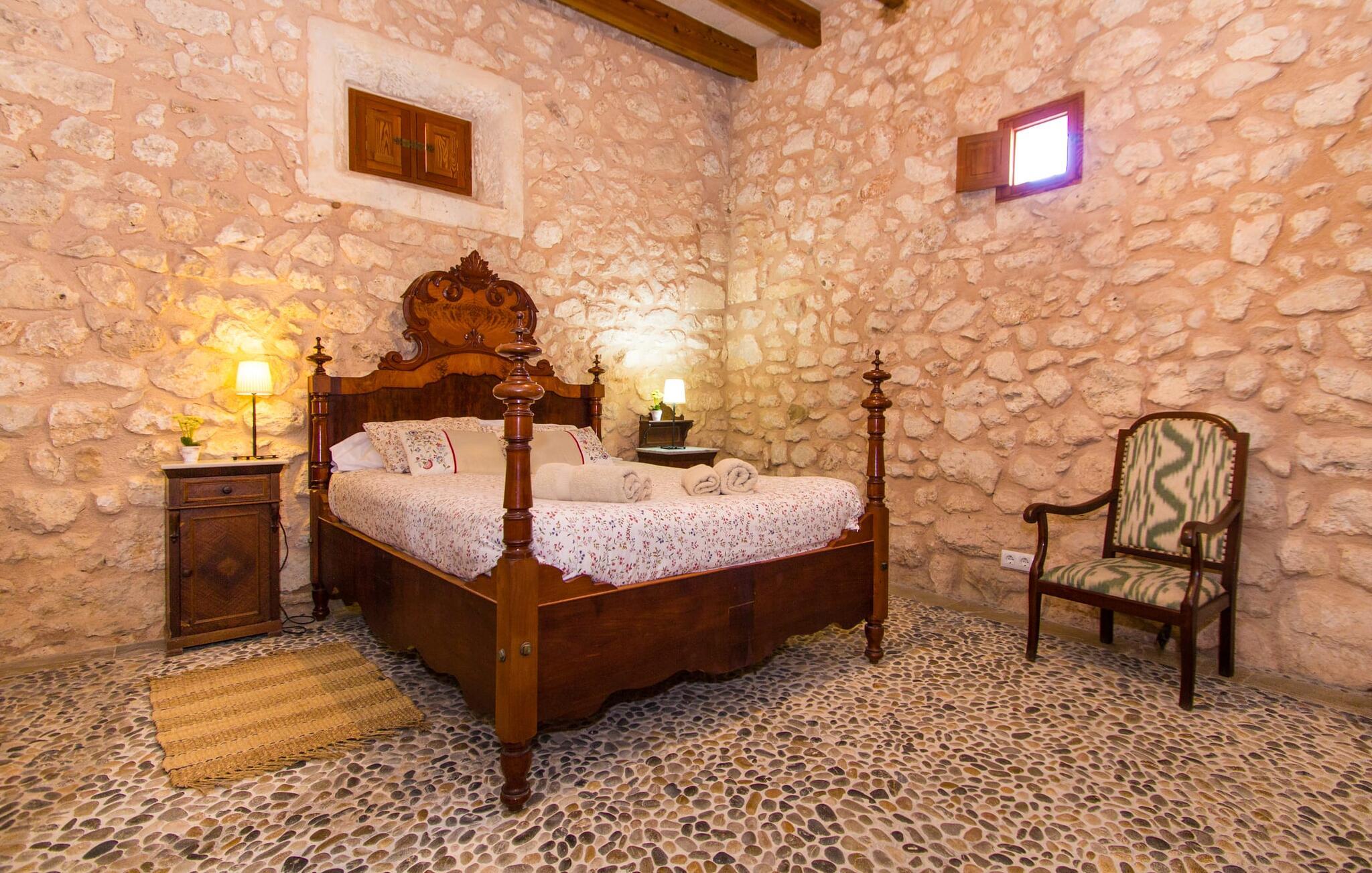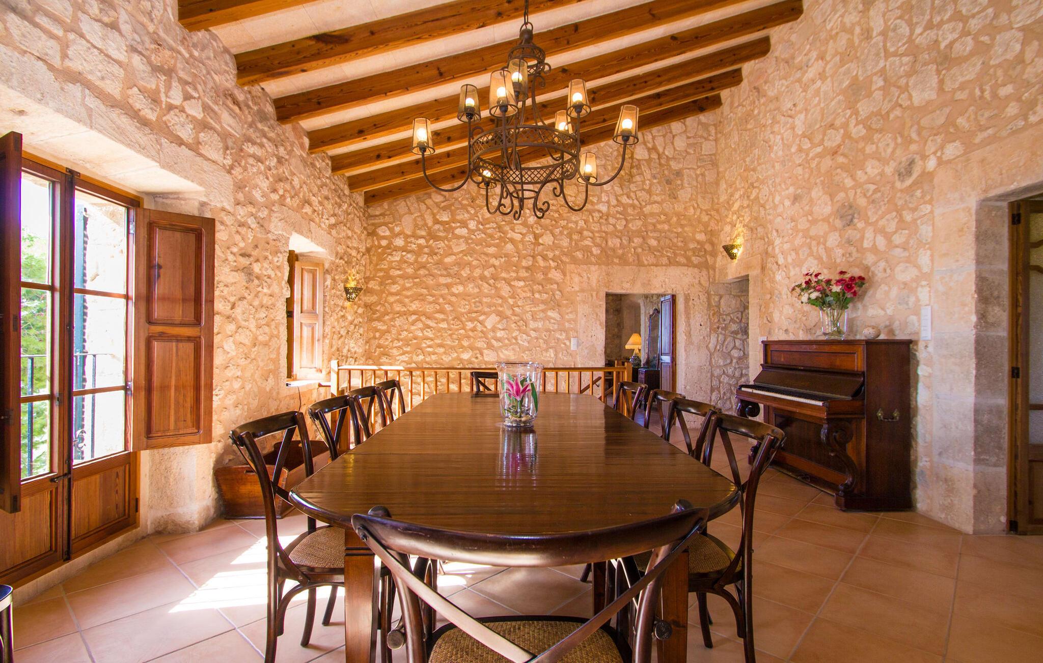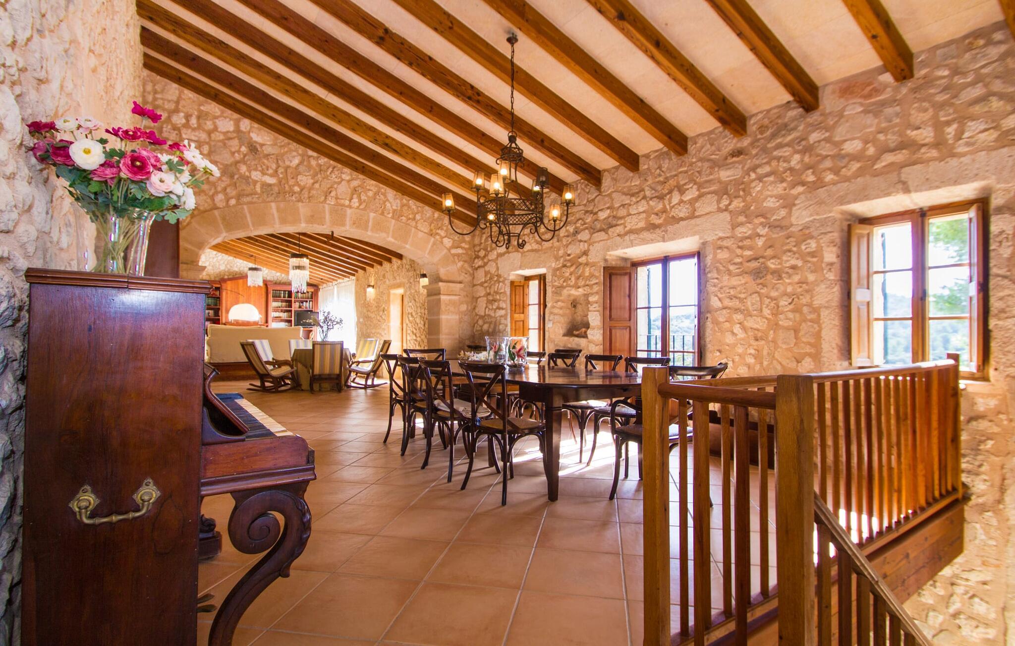 Die Eigentümer von „Son Mas Vell“ haben einige Jahre damit verbracht, es authentisch zu renovieren und liebevoll zu restaurieren: das rustikalere Erdgeschoss, zweigeteilt mit Türen zum Pool und Garten, und das offenere, elegante Obergeschoss mit Balkonterrasse. Wenn diese Wände sprechen könnten ... Vielleicht würden sie in Ihren Träumen zu Ihnen sprechen, wenn Sie sich in eines der sechs königlichen Doppelzimmer zurückziehen (vier im Obergeschoss, zusammen mit zwei Badezimmern, zwei im Erdgeschoss, jedes mit eigenem Bad). Badezimmer). Kleine Fenster, hohe Decken, Massivholzrahmen, eingravierte Wappen, eingelassene Nischen und kunstvolle Schränke; Sie alle haben ihre eigene Geschichte zu erzählen. Für fantasievolle Kinder ist das ganze Haus ein Abenteuerspielplatz.