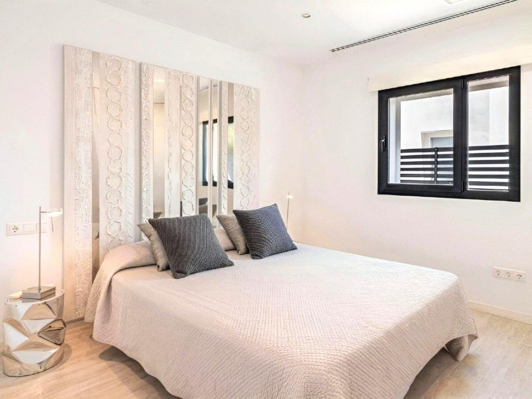 Das Haus bietet mit 300 m² Wohnfläche auf drei Etagen verteilt drei edle Schlafzimmer, alle mit Doppelbett und Klimaanlage und insgesamt vier Badezimmer. Zwei der Zimmer und zwei der Badezimmer befinden sich oben. Eins der Schlafzimmer oben ist die Suite mit eigenem offenen Badezimmer und einer riesigen lichtdurchfluteten Glasfront von der man einen atemberaubenden Blick auf das Meer hat.