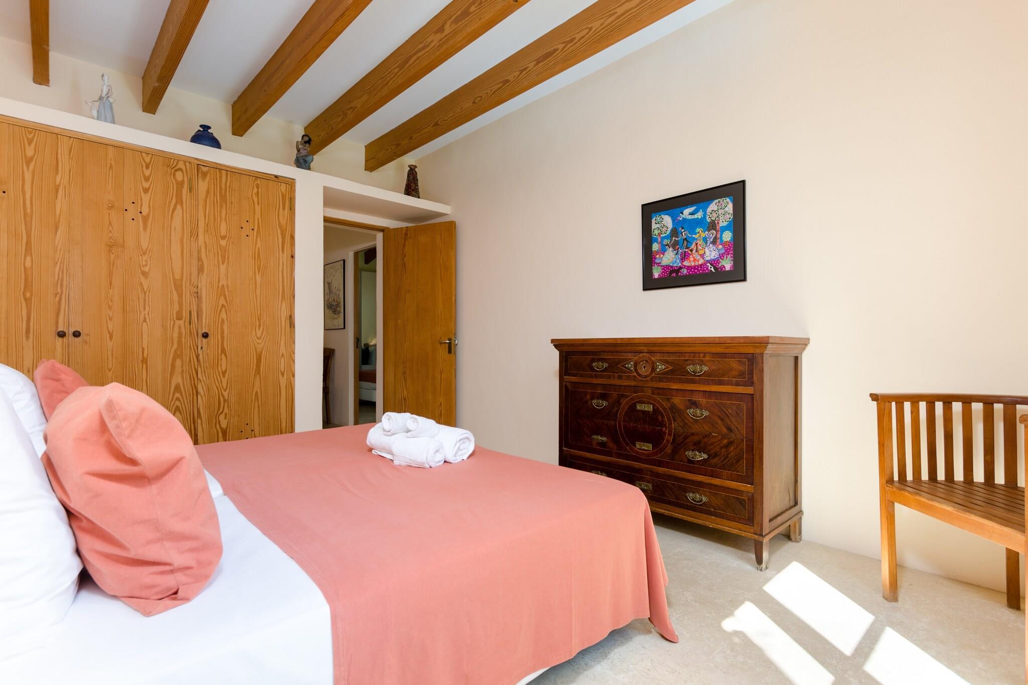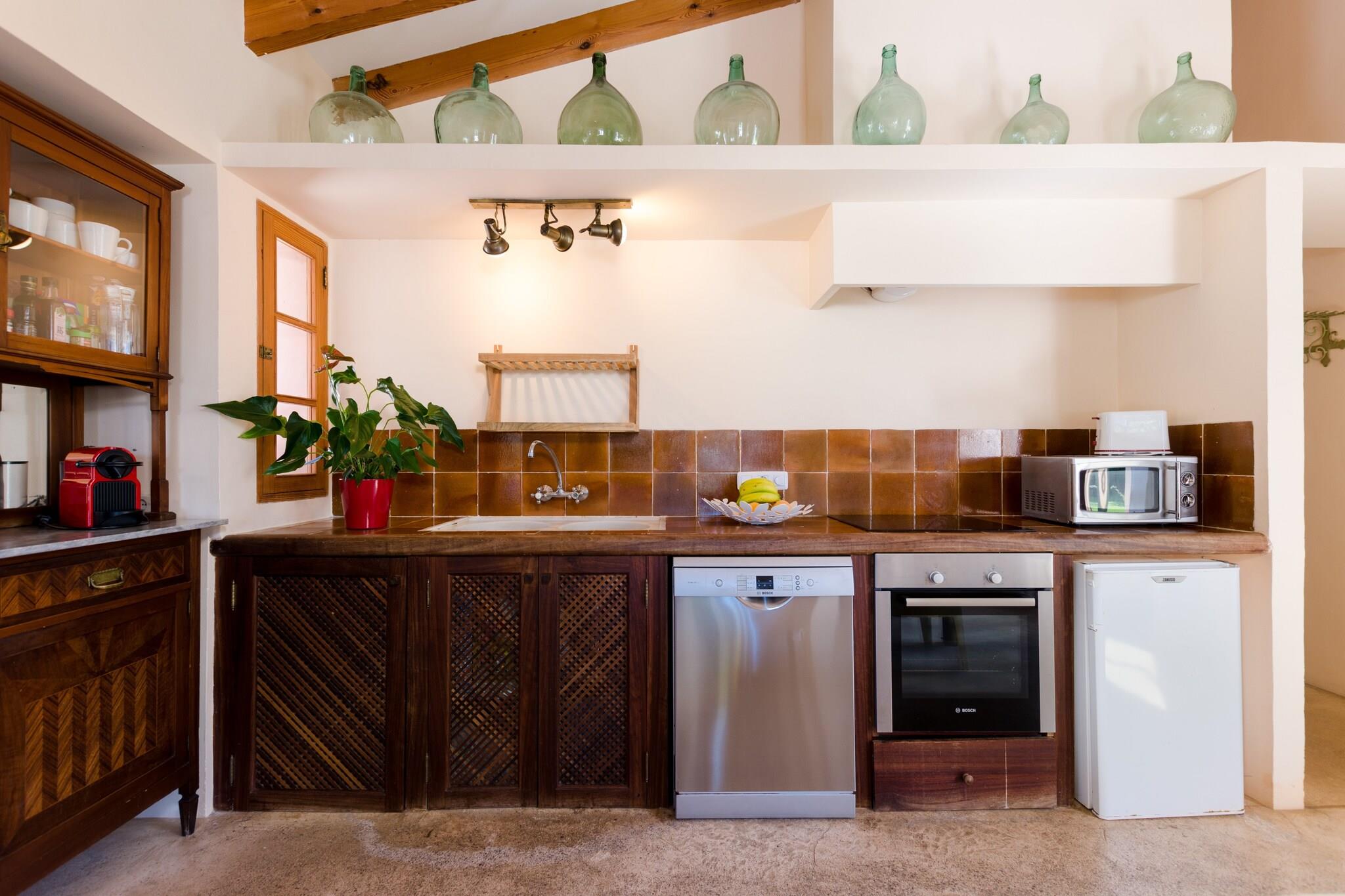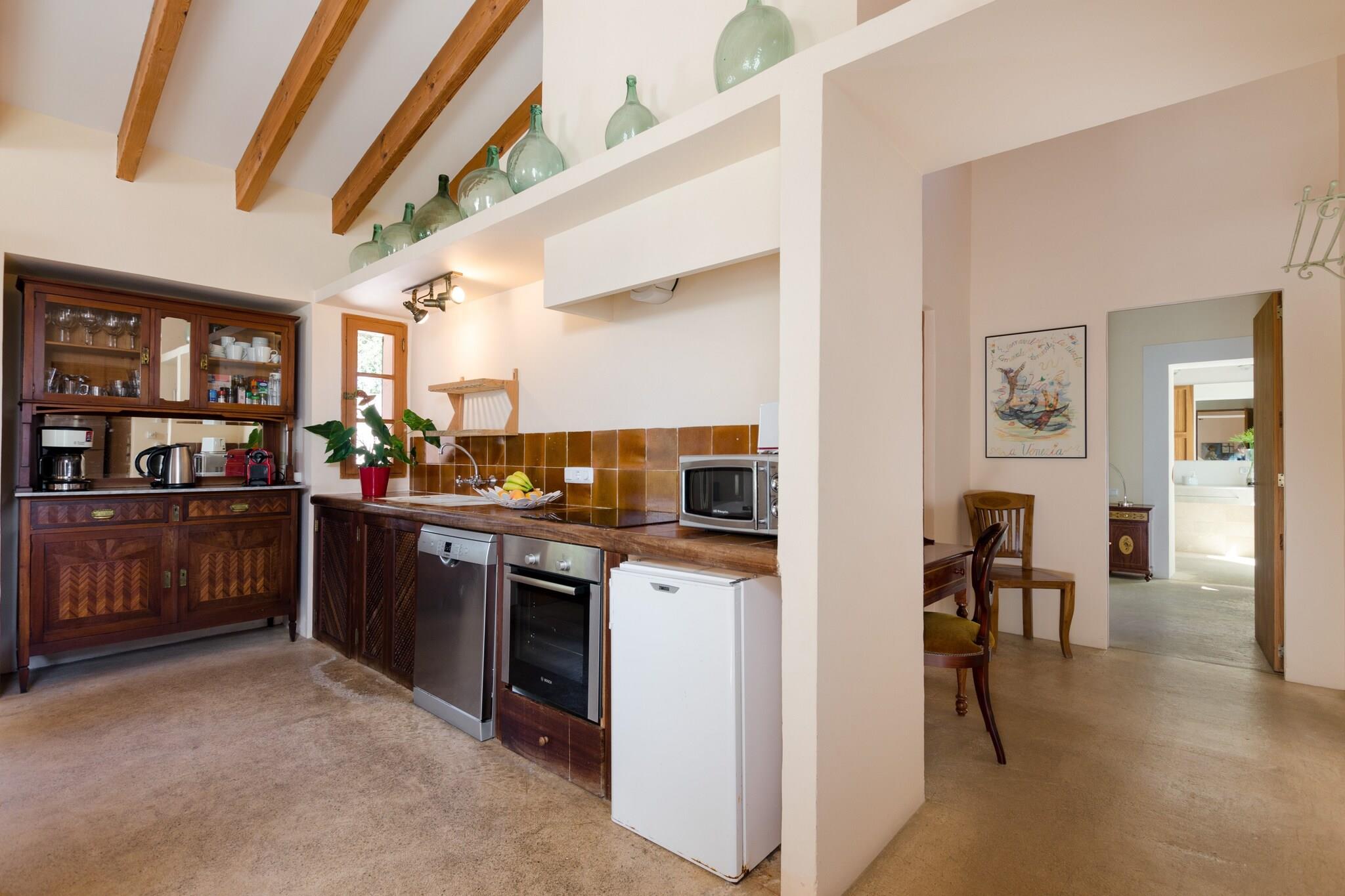 Umgeben von nichts als reiner Natur, ist diese Finca ein wahr gewordener Traum für all diejenigen, welche die Ruhe abseits des Stadtlebens suchen. Eingebettet in einer Kulisse aus Bäumen, Wiesen und Grünpflanzen aller Art, liegt der schöne in Stein eingefasste Süßwasserpool von 8 x 4 Meter Länge und 0.8 bis 1.6 Meter Tiefe. 4 Sonnenliegen sorgen für entspannte Stunden mit Ihrer Lieblingslektüre unter der mallorquinischen Sonne, während Sie danach auf der Veranda ein herrlich schmeckendes Barbecue zubereiten können. Die Liegenschaft liegt abgeschirmt und garantiert damit komplette Privatsphäre. Das Innere des Hauses besticht mit einer perfekten Kombination aus rustikalem Dekor und einem großzügig angelegten Wohnraum. Das Wohnzimmer lädt mit Satelliten TV zu einem gemütlichen Entspannen ein. Nur einige wenige Stufen trennen Sie vom praktischen Ess- und Küchenbereich, der alle gastronomischen Bedürfnisse mit Cerankochfeld und nahem Esstisch in einem Raum vereint. Die Waschküche ist mit einer Waschmaschine, Bügelbrett und Bügeleisen ausgestattet. Schlafmöglichkeiten bieten sich in einem der zwei Schlafzimmer, welche jeweils mit einem Kleiderschrank, sowie einen Ausgang nach draußen ausgestattet sind. In einem der Zimmer befinden sich zwei separate Betten, während das zweite Schlafzimmer mit einem Doppelbett und Badezimmer en-suite mit Dusche ausgestattet ist. Ein weiteres Badezimmer mit Badezimmer befindet sich ebenfalls in der Villa. Eine Fußbodenheizung, sowie zwei Ventilatoren komplettieren die Ausstattung. Die Villa befindet sich 4.7 km von dem schönen Dorf Son Severa entfernt, welches trotz der Abgeschiedenheit über alle Serviceleistungen verfügt, welche Sie für einen unbeschwerten Aufenthalt benötigen. Zum nächsten Strand nach Port Vella sind es nur 1.3 km, auch der Golfplatz von Son Servera ist mit 2.1 km nicht in allzu großer Ferne. Für Unterhaltung ist hier an der Küste definitiv gesorgt. Eventuelle Nebenkosten müssen beim Anbieter nachgefragt werden. Haustiere sind verboten. Partys oder ähnliche Veranstaltungen sind nicht gestattet. Es gibt Freiluftparkplätze für 3 Autos. Entfernungen Strand: 1.3 km - Platja des Port Vella Flughafen: 66.2 km - Son Sant Joan Golfplatz: 2.1 km - Club de Golf Son Servera Ortsmitte: 4.7 km - Son Servera Bahnhof: 20 km - Manacor Bushaltestelle: 2 km - Cami Cala Bona - Port Fähre: 46.5 km - Puerto de Alcúdia Krankenhaus: 19.7 km - Hospital de Manacor Touristen Lizenz: ETV/178Einheitsregister: ESFCTU000007023000171429000000000000000000000ETV/1784Die Kaution ist bei Ankuuft direkt an den Eigentümer zu übergeben. Stromverbrauch (Jan - Dezember): 0.50 EUR/Kw (obligatorisch)
