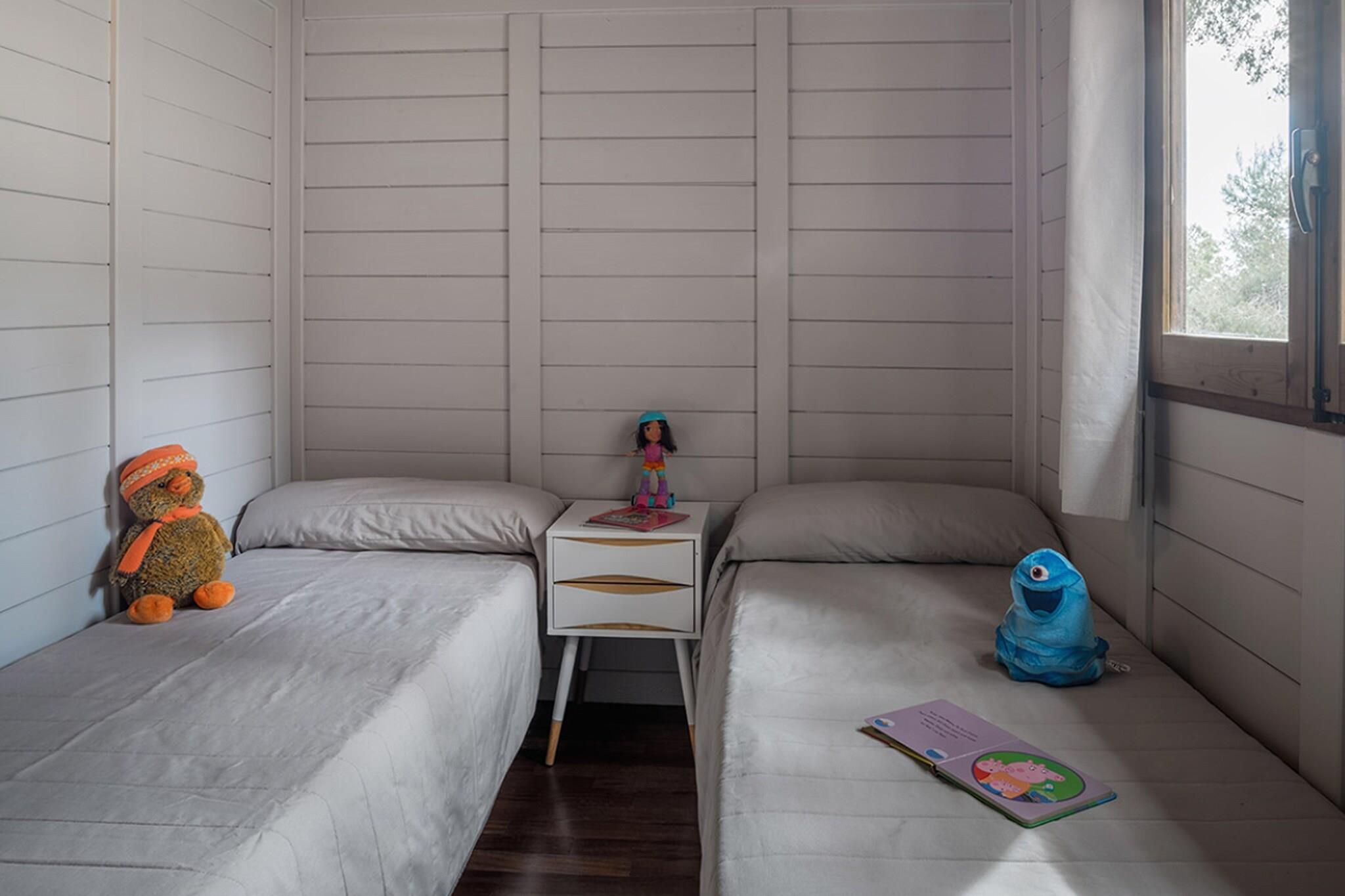 Das Hotel liegt in der Provinz Tarragona, mit einer unschlagbaren Lage direkt am Strand und in einem Naturschutzgebiet, das vom Marquesa-Wald bis Punta de la Mora reicht und über feine Sandstrände, wunderschöne Buchten und spektakuläre Klippen verfügt. Camping Torre de la Mora stellt Ihnen alles zur Verfügung, was Sie brauchen, damit Sie sich wie zu Hause fühlen und ein unvergessliches Erlebnis in der Natur haben. Dieser schöne 32 m2 große Bungalow mit Platz für bis zu 5 Personen verfügt über zwei Doppelzimmer, eines mit einem Doppelbett und das andere mit zwei Einzelbetten; ein Wohnzimmer mit einem Schlafsofa für eine Person, TV, Klimaanlage/Heizung; ein Badezimmer; eine Veranda mit einer Außenterrasse mit Sitzbereich. Voll ausgestattete Küche (Geschirr, elektrische Kaffeemaschine, Mikrowelle, Kühlschrank und Cerankochfeld). Die Bettwäsche wird einmal pro Woche und die Handtücher werden zweimal pro Woche gewechselt. Tiere sind in dieser Unterkunft nicht gestattet. Parkplatz für 1 Auto.
