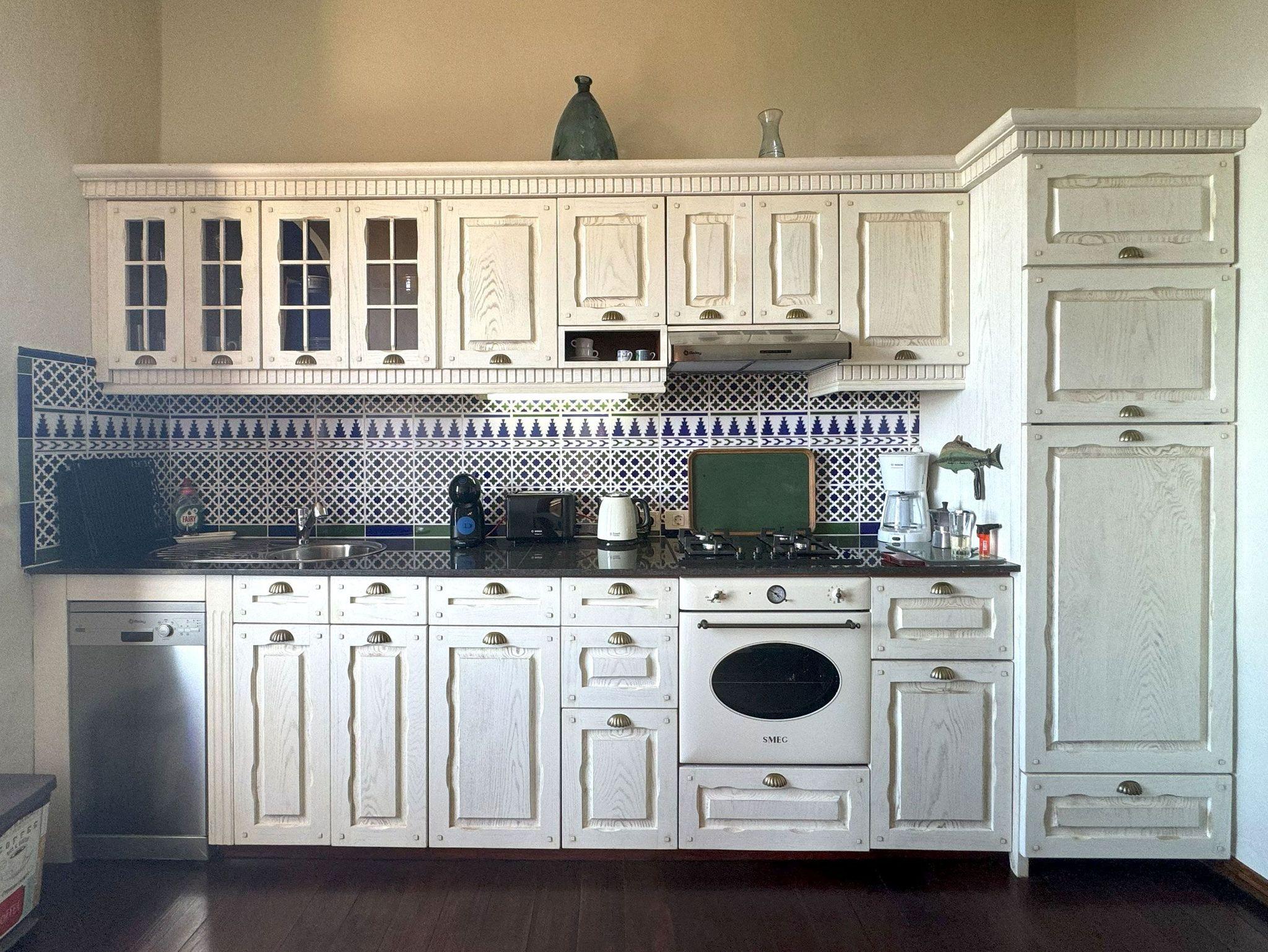 • Küche mit Gasherd (4 Platten), Backofen, Spülmaschine, Dunstabzug, Kaffeenschine, Cafetera, Toaster, Kühl-/Gefrierkombination, Wasserkocher
