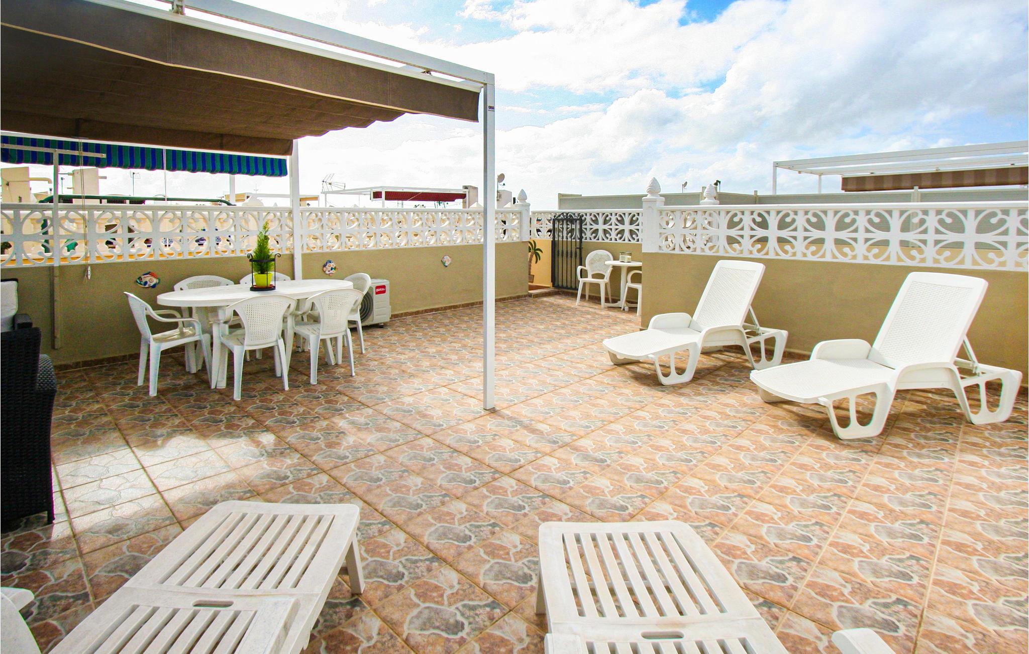Diese schöne, gemütliche Ferienwohnung mit Zugang zum Gemeinschaftspool liegt in Torrevieja, Alicante. Die Wohnung befindet sich im ersten Stock und besteht aus 3 Schlafzimmern, 1 Badezimmer, Küche, Wohnzimmer und Terrasse. Über eine Außentreppe gelangen Sie auf eine große Terrasse im Obergeschoss, die Sie privat nutzen können. Perfekt für angenehme Abende. Die Wohnung ist zu jeder Jahreszeit bewohnbar.