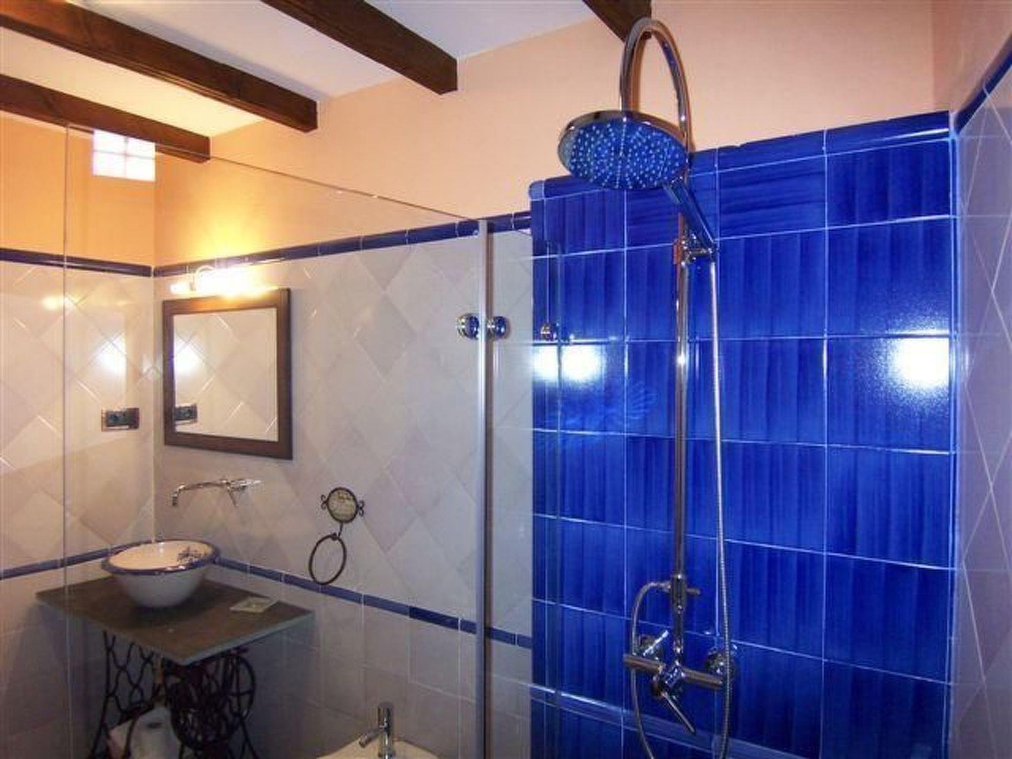 Nach dem Durchschreiten des traditionellen Holztors gelangt man durch eine einladende Eingangshalle in ein geräumiges Wohnzimmer mit Kamin, das sich hervorragend für Familienfeiern oder Treffen mit Freunden eignet. Die Küche, die durch eine alte Bar aus Ziegeln und Holz vom Wohnzimmer abgetrennt ist, ist komplett ausgestattet, um all Ihre kulinarischen Bedürfnisse zu befriedigen, und wird durch handbemalte Kacheln und rustikales Mobiliar akzentuiert. Im Erdgeschoss befinden sich außerdem ein großes Schlafzimmer mit Doppelbett und ein einzigartig gestaltetes Badezimmer, das Modernität und Tradition miteinander verbindet. Das Obergeschoss beherbergt drei weitere sorgfältig eingerichtete Schlafzimmer, ein luxuriöses Badezimmer mit handgefertigten Details und eine Terrasse mit fantastischer Aussicht, die Komfort und Stil in jeder Ecke garantiert.