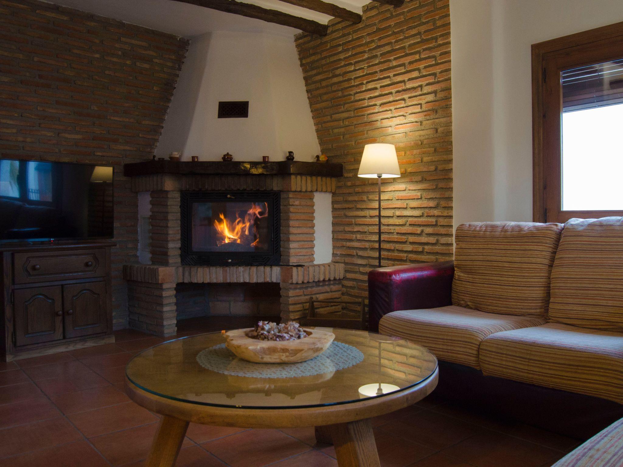Wenn Sie dieses fantastische Haus mit vier Betten betreten, das mit Zusatzbetten auf sechs Betten erweitert werden kann, werden Sie sofort von der warmen Atmosphäre empfangen. Das Haus ist auf zwei Etagen verteilt, mit einem schönen Wohnzimmer mit zwei Räumen, Kamin und Holzbalken, das zum Entspannen einlädt. Die Küche, die durch eine gemauerte Bar vom Wohnzimmer getrennt ist, hat alte Backsteinmöbel und Holztüren, die durch handbemalte Fliesen ergänzt werden. Außerdem gibt es auf dieser Etage ein komfortables Bad und eine Terrasse mit schöner Aussicht, die mit allem Komfort ausgestattet ist: vom Kamin bis zur komplettesten Küchenausstattung und einer Fußbodenklimaanlage mit aerothermischer Energie, die im Winter für Wärme und im Sommer für Kälte sorgt.