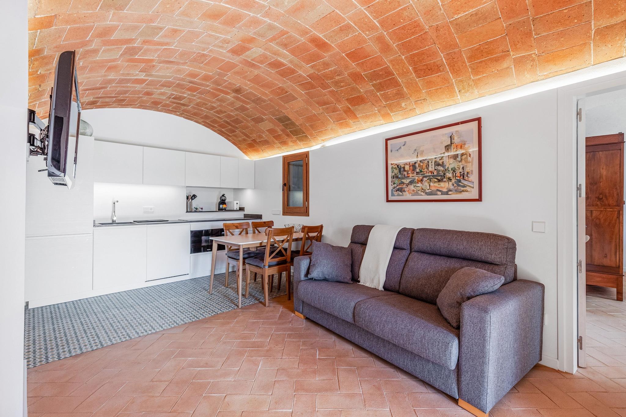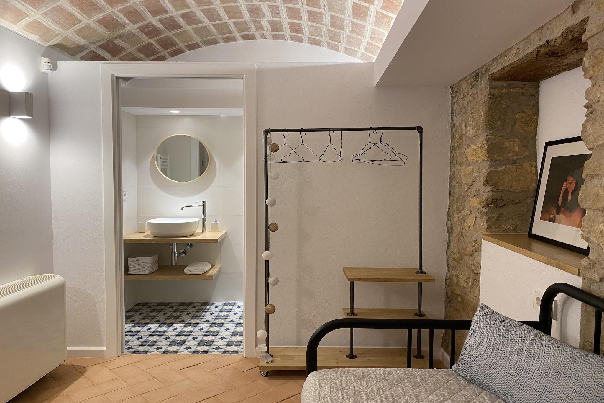 Suchen Sie einen exotischen Urlaub in wunderschöner Umgebung? Dieses charmante Ferienhaus in Vulpellac ist perfekt für eine vierköpfige Familie. Es bietet zwei gemütliche Schlafzimmer und einen Gemeinschaftspool mit den Eigentümern für erfrischende Schwimmeinheiten. Die Eigentümer wohnen im ersten Stock und sorgen für eine einladende und freundliche Atmosphäre. Die Zufahrt erfolgt über eine Privatstraße, was für Privatsphäre und Ruhe sorgt. Nur 1 km entfernt erwartet Wanderer und Radfahrer ein schöner Wald. Restaurants mit köstlichen regionalen Gerichten sind nur 300 Meter vom Haus entfernt. Entspannen Sie im gemütlichen Wohnzimmer mit TV, Heizung und Klimaanlage. In der gut ausgestatteten Küche können Sie hausgemachte Mahlzeiten zubereiten und gemeinsam am Esstisch genießen. Nahegelegene Städte wie Pals und Peratallada sorgen für zusätzlichen Charme. Der Flughafen Girona ist 45 km entfernt und öffentliche Verkehrsmittel sind nur 300 Meter vom Haus entfernt.