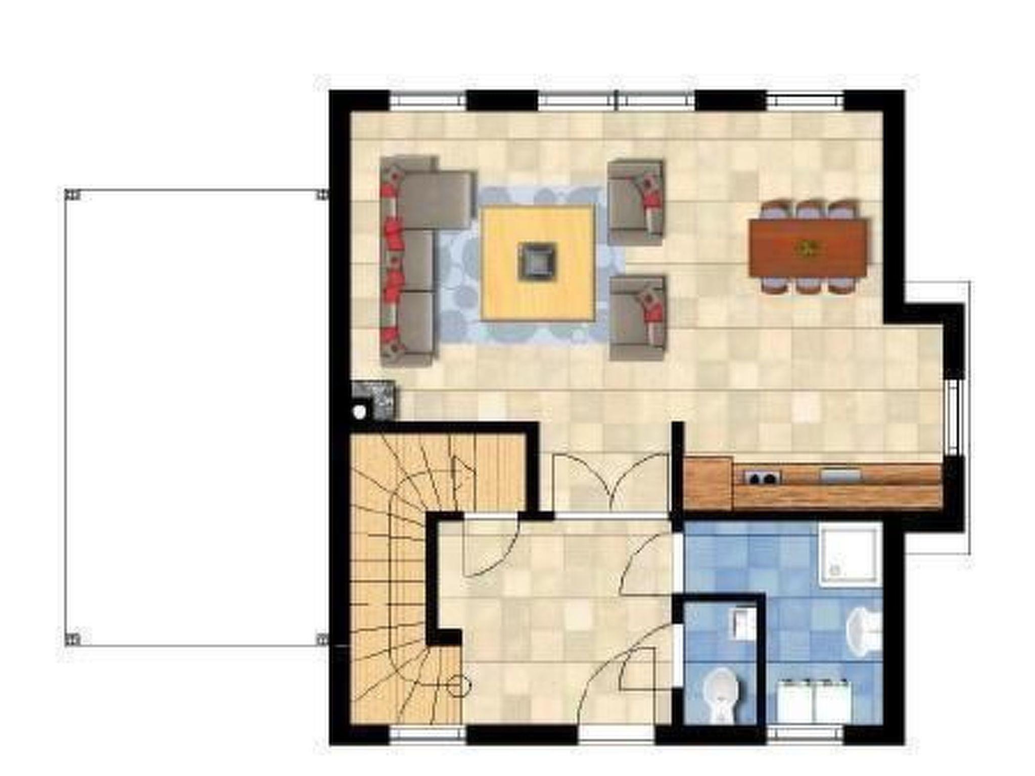 Das Ferienhaus Alfa hat im Erdgeschoss einen Flur, ein Wohnzimmer mit offener Küche und ein Badezimmer mit Dusche und Toilette. In der ersten Etage befinden sich drei Schlafzimmer und ein voll ausgestattetes Badezimmer. Neben dem Haus befindet sich ein geräumiger Carport für Ihr Auto. Die Wohnung hat eine Wohnfläche von ca. 120 m², ohne den Carport, und ist damit ein geräumiges Ferienhaus für maximal 6 Personen, mit zwei Personen pro Schlafzimmer.