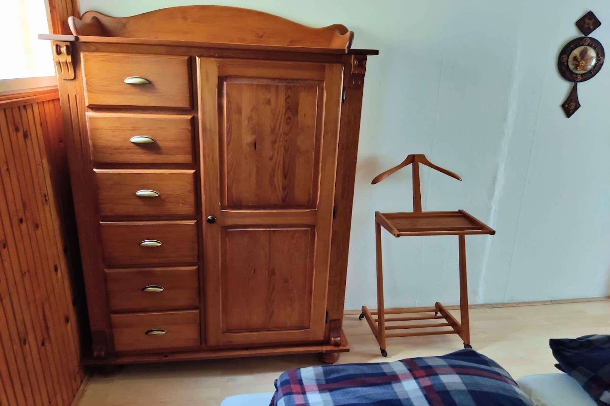 Parterre: (Wohnzimmer(TV, Esstisch, Sitzecke), Küche(Wasserkocher, Toaster, Dunstabzugshaube, Kaffeemaschine, Backofen, Mikrowelle, Spülmaschine, Kühl-/Gefrierkombination), Schlafzimmer(Doppelbett), Schlafzimmer mit Badezimmer(Doppelbett king size, Dusche, Waschbecken, Toilette), Badezimmer(Dusche, Waschbecken, Toilette), Terrasse, Föhn, Kinderbett (kostenpflichtig)) Dachgeschoss: (Schlafzimmer(Doppelbett king size)) Garten, Gartenmöbel, Liegen, Grill, Parkplatz, Gartenlounge, Sonnenschirm